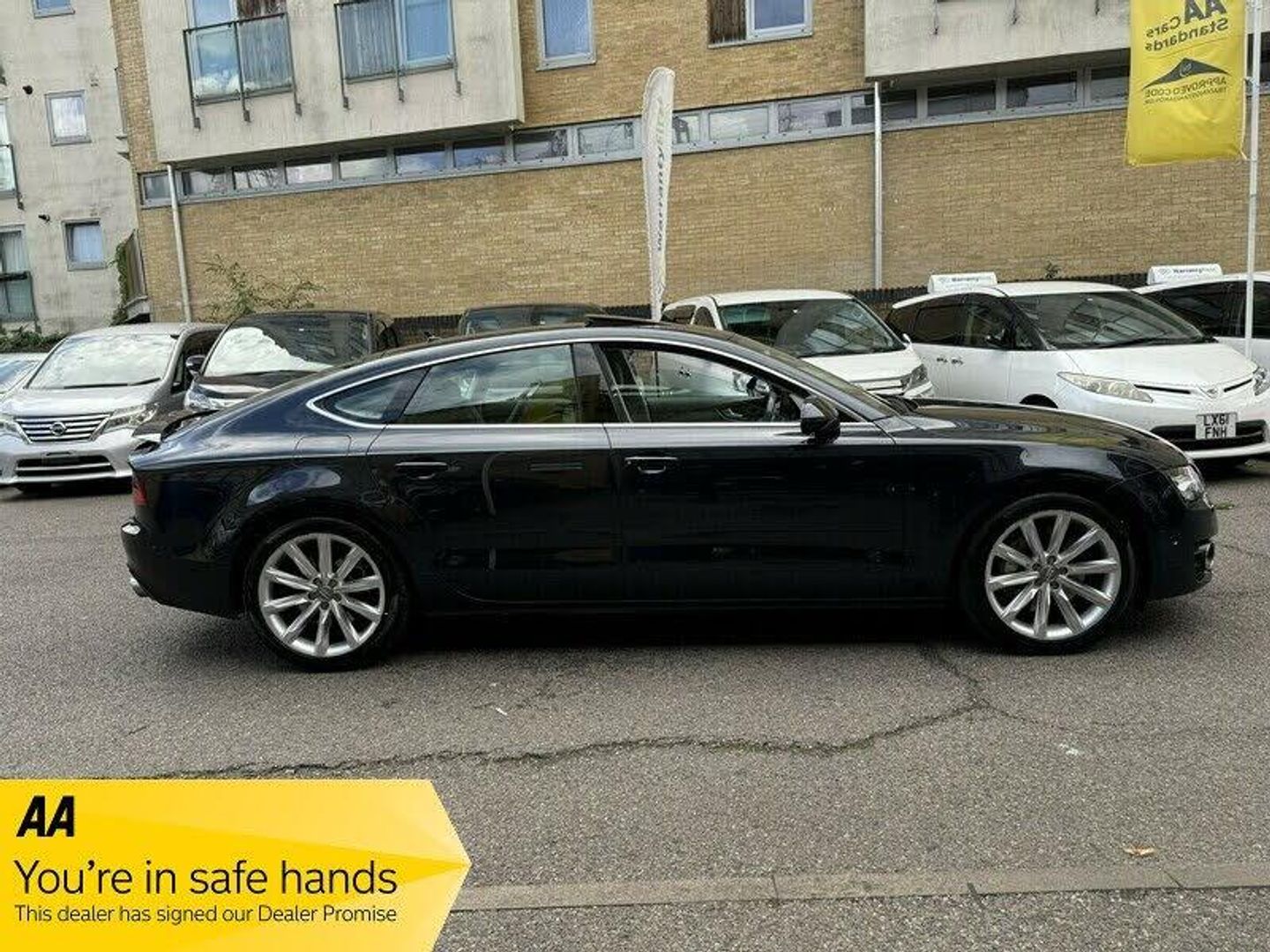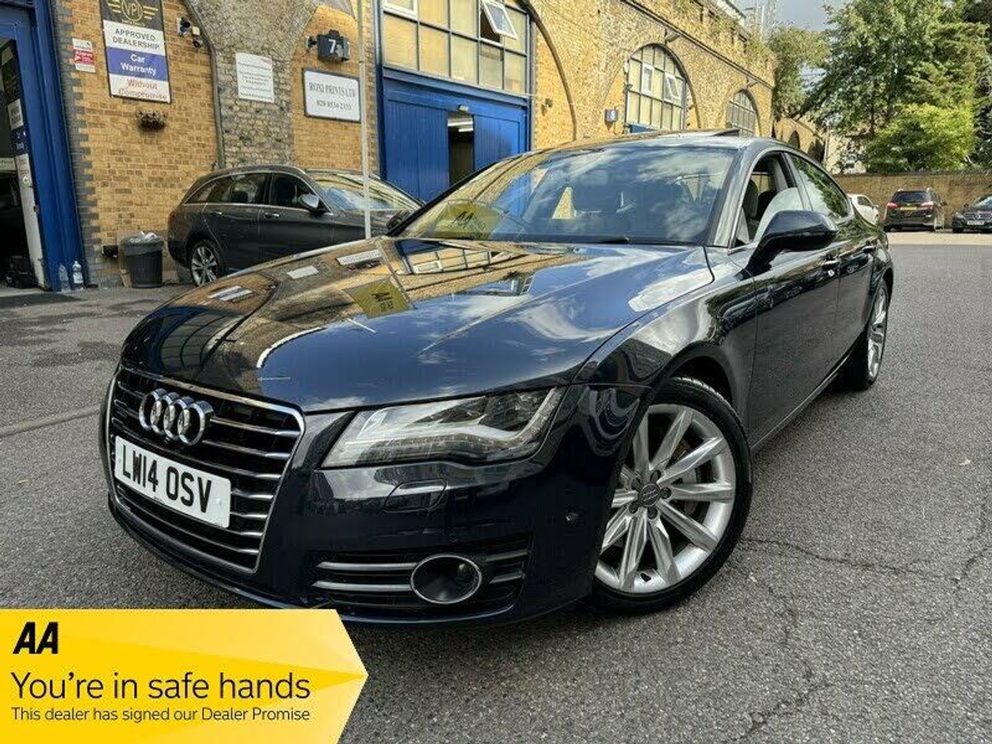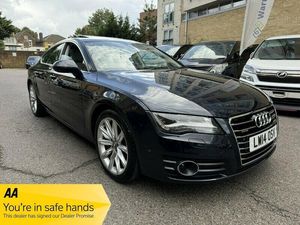 Audi A7 3.0 TFSI V6 SE Sportback S Tronic quattro Euro 5 (s/s) 5dr SUNROOF+LEATHER+360 CAMERA+AA+ Key facts Print summary Model year: 2014 (14) Fuel type: Petrol Mileage: 30,892 Transmission: Automatic Engine size: 3.0L Colour: Blue + FINANCE AVAILABLE+ ONLY COVERED 30000 MILES WARRANTED AND VERIFIED+3 SETS OF KEYS+1 YEAR COMPREHENSIVE WARRANTY INCLUDING PRICE FOR COMPLETE PEACE OF MIND,1 YEAR A A BREAK DOWN COVER+ MOT TILL 18/08/2026+1 YEAR A A BREAK DOWN COVER+FULL LEATHER TRIM+SUNROOF TILT AND SLIDE+KEY LESS ENTRY AND KEY LESS GO+MEMORY FRONT SEATS+XENON HEAD LIGHTS+360 CAMERA+ PARK ASSIST+FRONT AND REAR HEATED SEATS+KEY LESS ENTRY AND KEY LESS GO+4 ZONE CLIMATE CONTROL+This 2014 Audi A7 TFSI V6 SE boasts exceptionally low mileage for its age, having covered just 30,892 miles. Serviced recently on 2025-09-10 at 30,892 miles, this Four Wheel Drive model comes with an MOT valid until August 2026. The SE trim level includes a wealth of desirable features, such as the Advanced Key with Hands Free Boot Opening System for effortless access, and an Electric Sunroof for an open and airy cabin. For enhanced driving comfort and safety, it is equipped with Adaptive Cruise Control featuring Side Assist and Active Lane Assist, along with the Audi Parking System Advanced which incorporates a reversing camera and front sensors. Furthermore, the comfort seats are heated for both front and rear occupants, ensuring a pleasant journey in all conditions., , The performance of this Audi A7 is equally impressive, with a powerful 3.0 litre petrol engine enabling it to accelerate from 0 to 62mph in a swift 5.6 seconds. This acceleration figure highlights its dynamic capability, setting it apart from many other vehicles in its class. The generous boot space offers practicality for everyday use and longer trips, making it a versatile choice. The combination of its low mileage, comprehensive service history, and advanced features like the hands free boot opening and adaptive cruise control, demonstrate a level of care and specification that elevates this A7 above the ordinary