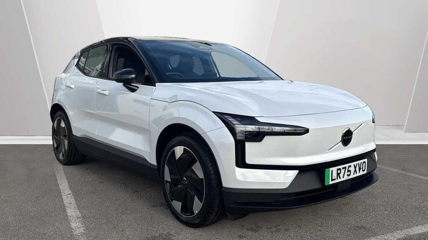 Alarm, Wireless Apple CarPlay, Air vent decor. blue, 12.3-inch centre display, Rear Collision Warning, Pilot Assist, Heat pump, Intelligent Speed Assist (ISA), Direct occupant sensing, Fog lamps. rear, Collision avoidance and mitigation, Manually adjustable passenger seat, Run-off Road Mitigation, First-aid kit, 5G capability, Denim decor, Post impact braking, Air quality measurement and remote cabin air pre-cleaning, Roof spoiler. high-gloss black, Front and rear USB-C ports, Alcohol lock software (not available in the UK), One pedal drive, Power tailgate, Ambience themes, Vanity mirrors, Humidity sensor, Lane Departure Warning, Power outlet. load compartment, Interior illumination. high level, 19? 5-spoke glossy black diamond cut, Hill Descent Control, Temporary mobility kit, Adaptive cruise control, Heated steering wheel, Speed limiter, Seat track position sensors. driver and passenger, Hill Start Assist, Sliding cupholders and storage, Textile & Nordico upholstery, Summer tyres, Dual-stage airbags. passenger, Heated front seats, 11kw On-Board Charger (OBC), LED illumination. load compartment, Auto-dimmed inner and door mirrors, Driver airbag, Door mirrors with ground lighting, Park assist. front and rear, Driver alert system, Side impact protection, Road Sign Information, Rear Cross Traffic Alert with Autobrake, ISOFIX child seat attachment, Double lock, Front Cross Traffic Alert, Digital key plus, Park assist camera. rear, LED headlights, Fixed lumbar support, Warning triangle, Child safety lock, Key tag, All-wheel Drive (AWD), Digital Audio Broadcasting (DAB+), Air quality system, Lane Keeping Aid, 5 seats, Roof top in contrast colour. high-gloss black, Passenger airbag cut-off switch, Traffic Jam Assist, Lane change assist, Two-zone climate system, Door mirror covers. high-gloss black, Harman Kardon Premium Sound, Rear LED lights, Shift-by-wire single speed transmission, Wireless phone charging, Door opening alert, Manually adjustable driver seat, LED headlights with active high beam, Rear phone storage, Large door pockets, Tailored sports steering wheel, Inflatable Curtain, Advanced sensing technology, Comfort chassis, Oncoming Lane Mitigation, Intersection autobrake, Pedestrian and cyclist steering avoidance, Rain sensor, Oncoming Mitigation by Braking, Blind Spot Information System (BLIS), Whiplash injury protection, Google Assistant. Google Maps and Google Play Store - included for 4 years, Volvo EX30 App, Over-the-air updates (OTA), Removable rear storage box, Front storage, NFC smart card key, Front load compartment, Textile interior cabin floor mats, Charging station cable. 5m (22kW), Flexible load floor