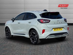 Touchscreen, Apple CarPlay/Android Auto, Sat Nav, Automatic Wipers, Automatic Headlights, Puddle Lights, Leather Interior, Advanced Safety;This fantastic value 2025 Ford Puma ST-Line X offers exceptional peace of mind with its MOT valid until February 2028. This stylish compact SUV is powered by an efficient 1.0L Petrol Hybrid engine, meeting Euro 6 emission standards. The ST-Line X trim level ensures a sporty and well equipped driving experience, making it a desirable choice for those seeking both performance and practicality. Features include large screen media with rear camera. Experience the responsive acceleration of this Ford Puma, achieving 0-62mph in just 8.7 seconds. This impressive figure demonstrates how the Puma ST-Line X offers a more dynamic drive compared to many other vehicles in its class. Its hybrid technology also contributes to its efficiency, providing a refined and economical journey for everyday use.