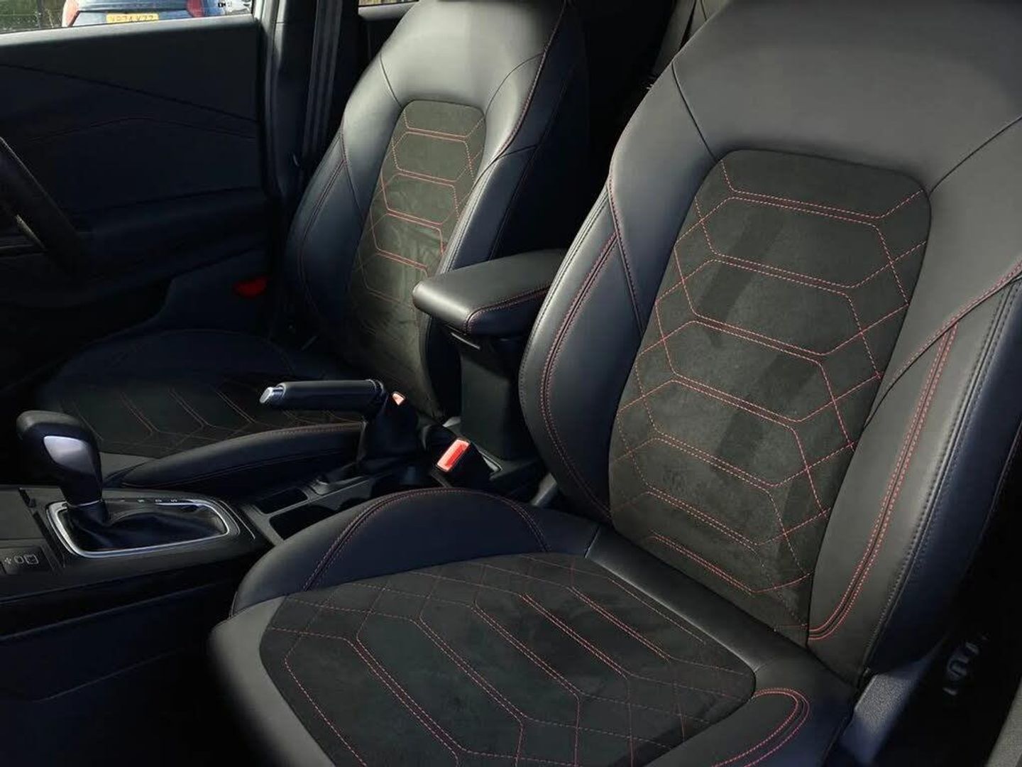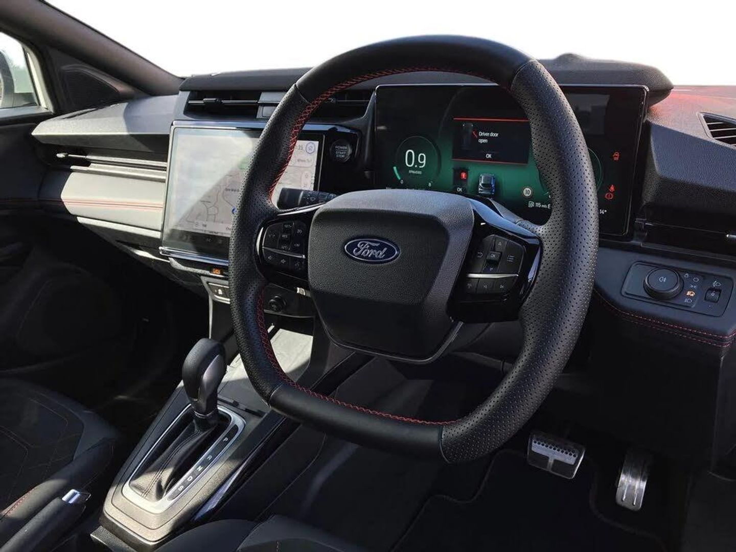 Driver impairment monitor,Emergency call service,Ford easy fuel,Full digital 12.8" instrument cluster,Lane keeping aid with lane departure warning,Power assist steering,Selectable drive modes(Normal, sport, Eco, trail, slippery),Speed sign recognition,Sport suspension,12" landscape touchscreen display with wireless apple car play and android auto premium B&O audio system with 10 speakers,Ford pass connect and emergency assistance,Ford SYNC4 with connected navigation,Automatic headlights with rain sensing wipers and auto high beam,Front fog lamps,LED daytime running lights,LED rear lamps,LED third brake light,Power foldable heated door mirrors with puddle lamps and puma logo protection,Quickclear heated windscreen,Rear privacy glass,Rear side wing doors,Rear wiper,ST-Line X body styling kit,3 seat bench in 2nd row,4 way lumbar support for passenger seat,Centre console with armrest and stowage,Electronic automatic temperature control (EATC),Ford megabox extended bootspace,Front and rear head restraints,Front floor mats,Manual 4 way driver seat adjust with lumbar adjustment,Single front passenger seat,ST-Line X Premium synthetic leather upholstery,Comfort pack with power lift tailgate - Puma,3 rear seatbelts,Child safety lock,Electronic stability control (ESC) and hill start assist,Pre-collision assist with autonomous emergency braking, pedestrian/cyclist detection & post-collision braking,Tyre pressure monitoring system (TPMS),Thatcham alarm,Premium Synthetic Leather - Synthetic Suede Inserts - Red Stitching - Black