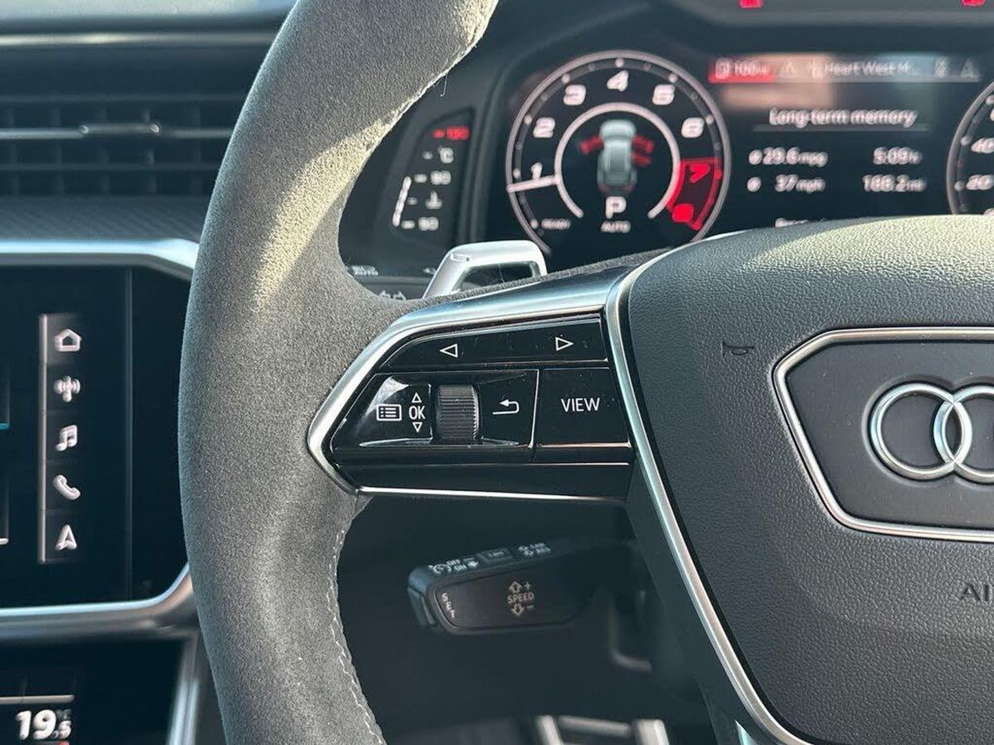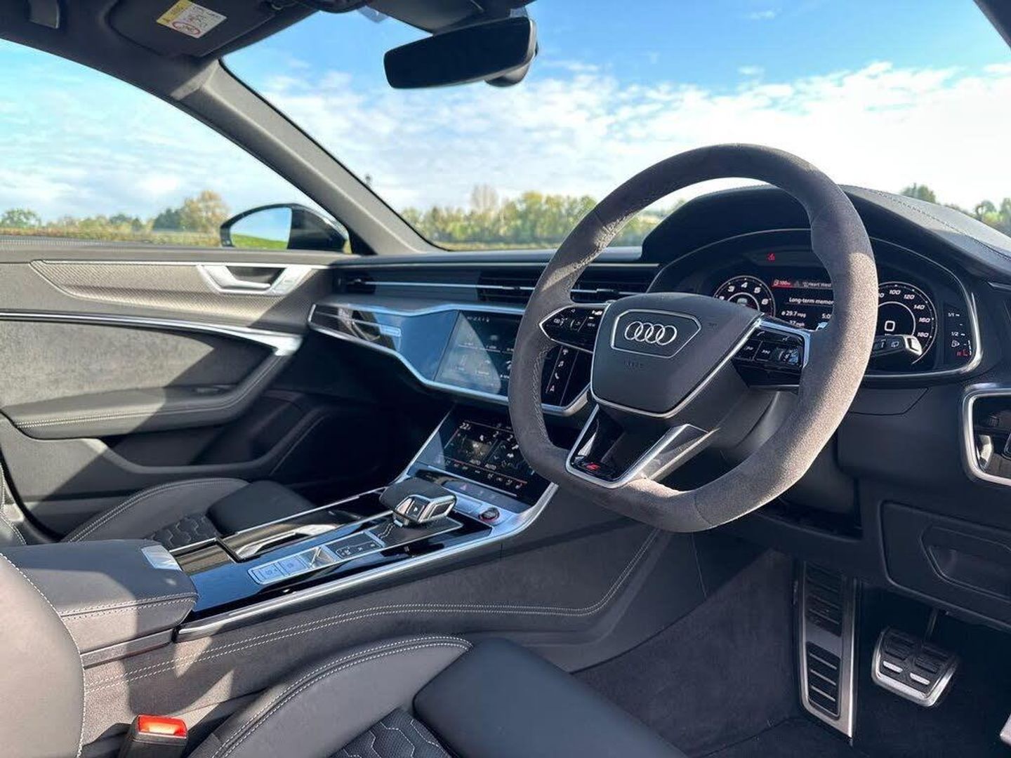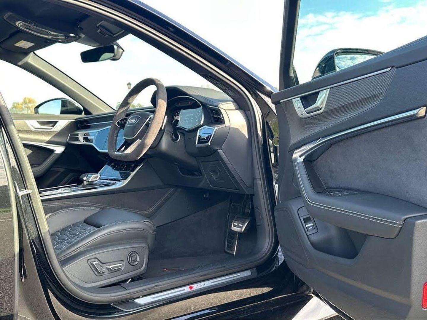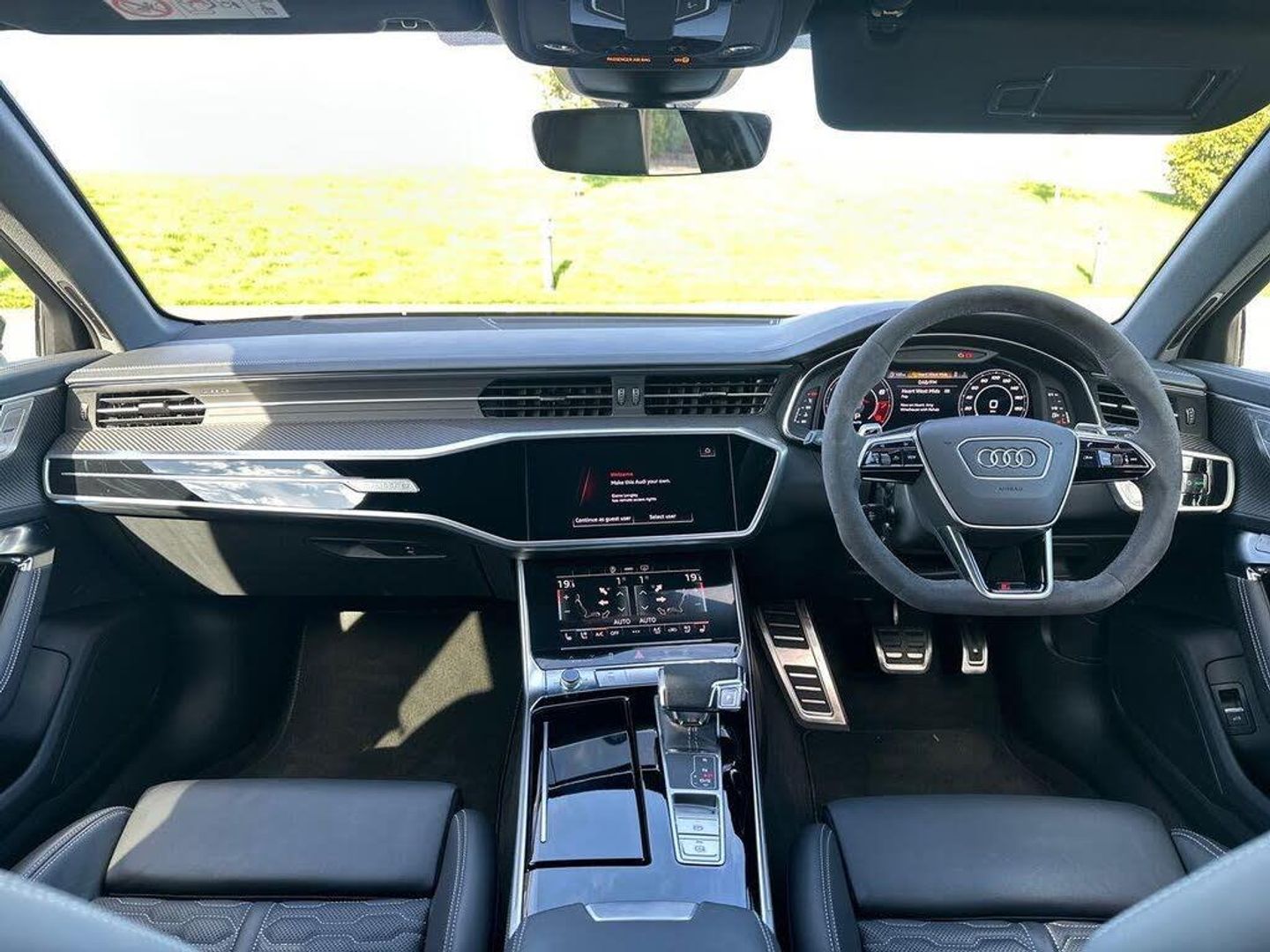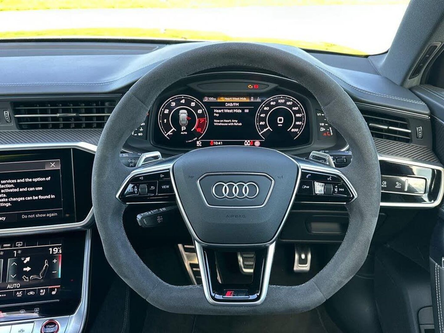 22in Alloy Wheels - Black Gloss Turned Finish, 4-Way Electric Lumbar Support, ABS - Anti-Lock Braking System, AMI - Audi Music Interface, Air Quality Pack, Airbags - Driver, Airbags - Front Passenger, Anti-Theft Alarm with Tow-Away Protection, Audi Beam, Audi Connect (3 Year Subscription From New), Audi Connect Safety and Service - e-call, Audi Connect with Amazon Alexa Integration, Audi Drive Select with Efficiency, Audi Pre-Sense Front, Audi Smartphone Interface, Audi Sound System, Audi Virtual Cockpit with RS Specific Design and 12.3in Display, Auto Dimming and Frameless Rear View Mirror, Black Mirror Housings, Bluetooth Interface, Camera Based Traffic Sign Recognition, Carbon Black Styling Pack, Cloth Headlining in Black, Cruise Control System with Speed Limiter, DAB Digital Radio, Deluxe 4-Zone Automatic Climate Control, Direct Tyre Pressure Monitoring System, Door Mirrors - Electrically Folding - Adjustable and Heated with Integrated LED Side Indicators and Kerb-view Function for Passenger Side, Dynamic All-Wheel Steering, Electric Steering Column Adjustment, Electric Windows - Front and Rear, Electrically Adjustable Front Seats with Memory Function for Drivers Side, Electromechanical Parking Brake, Extended LED Interior Lighting Package - Multi-Coloured, Extended Pedestrian Protection Measures, First Aid Kit and Warning Triangle, Front Centre Armrest, Front and Rear Side Airbags with Head Airbag System, HD Matrix LED Headlamps with Audi Laser Light with Dynamic Light Design and Dynamic Turn Signal, Headlight Washers, Heated Front Seats, ISOFIX Child Seat Mounting and Top Tether - Front Passenger Airbag Deactivation, Illuminated Door Sill Trims with RS Logo, Inlays - Carbon Twill, Keyless Go, LED Rear Combination Lamps with Dynamic Light Design and Dynamic Turn Signal, Lane Departure Warning, Leatherette Upper Instrument Panel and Door Shoulders, MMI Navigation with MMI Touch, Operating Buttons in Gloss Black, Pedals and Footrest - Stainless Steel, Power Operated Tailgate, Privacy Glass, RS Design Package - Grey, RS Rear Spoiler in Body Colour, RS Specific Bumpers - Front Bumper Air Inlets on Both Sides, RS Steel Brakes with Black Calipers, RS-Air Suspension - 4 Corner - with Electronic Shock Absorption Control - Sports Version, Radiator Protective Grille in Honeycomb Structure - Gloss Black with Large Front Air Inlets and Rear Diffuser in Gloss Black, Rear-View Camera, Seat Ventilation for Front Seats, Storage Package, Towbar Preparation, Voice Control System, Wheel Arch Extensions - Front and Rear, quattro with Sports Differential, RS Steel Brakes with Brake Calipers in Red Gloss