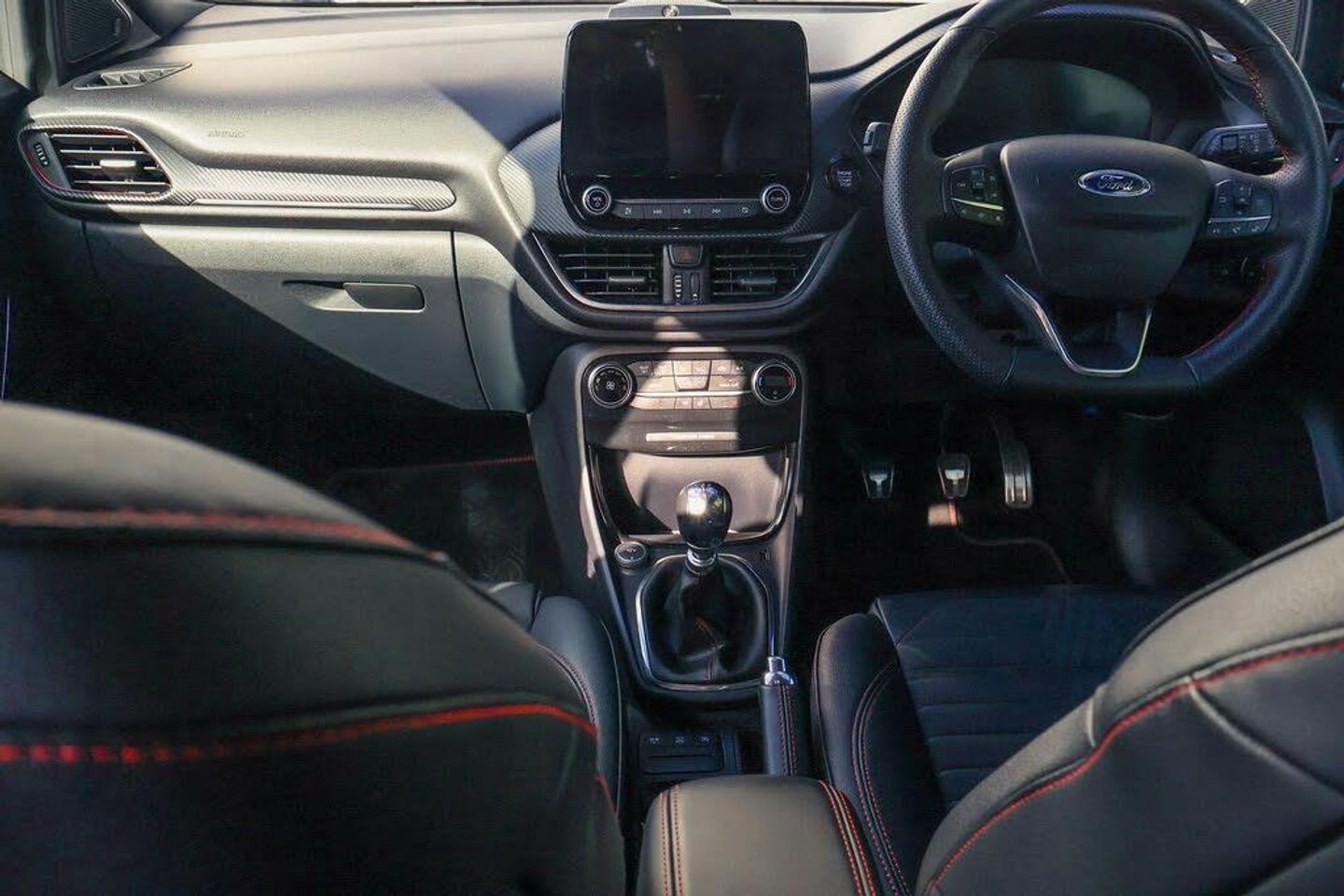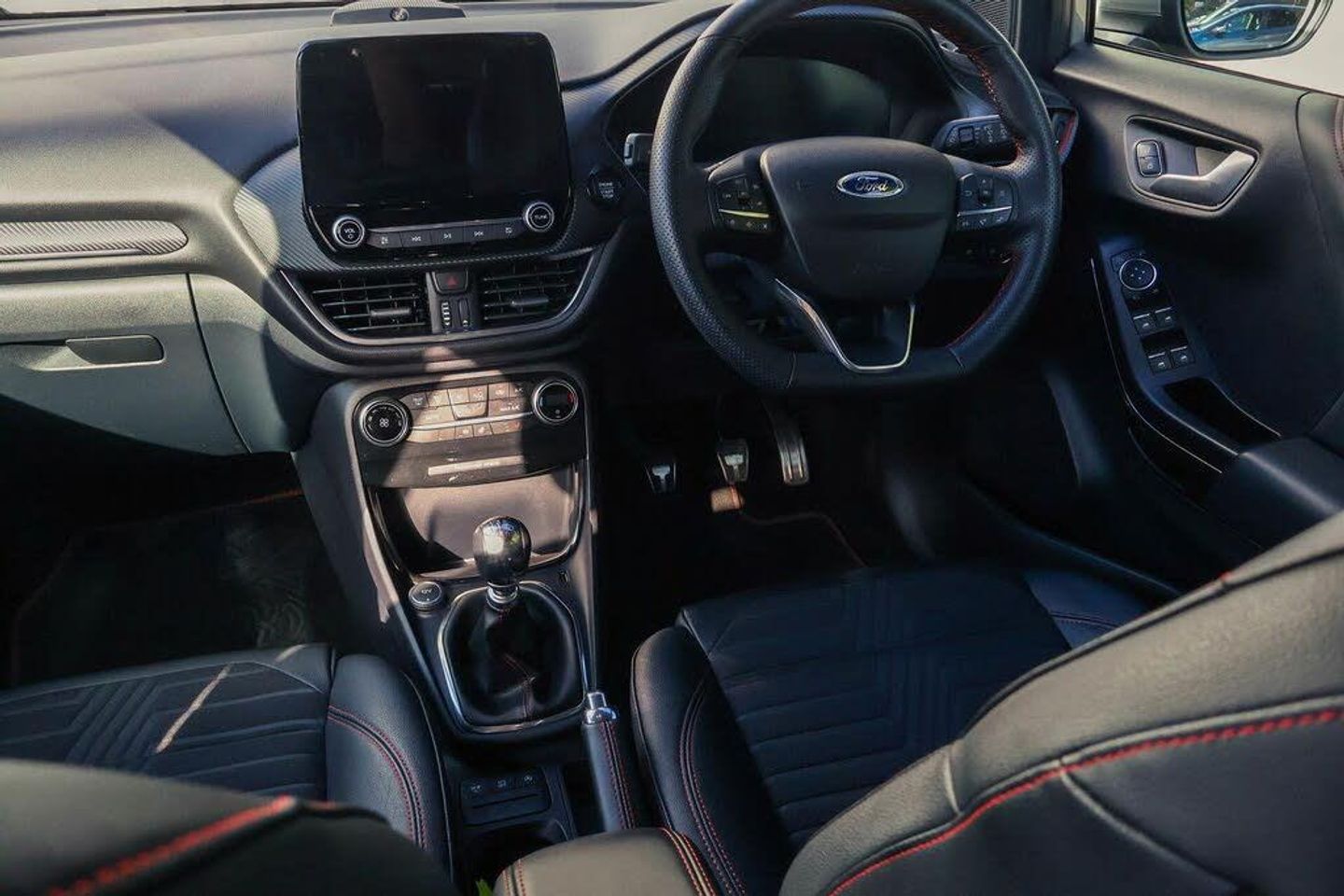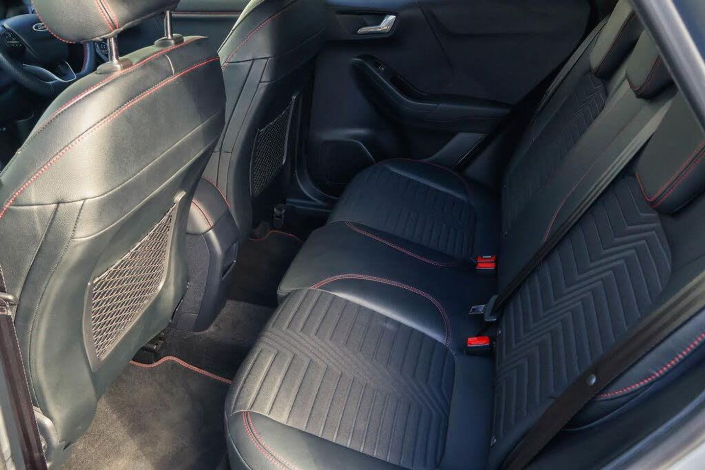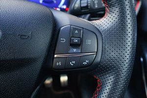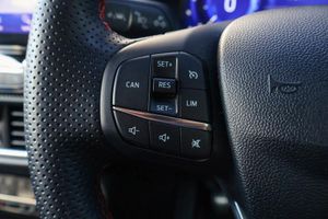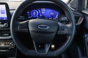 Driver impairment monitor, Emergency call service, Ford easy fuel, Full digital 12.3" instrument cluster, Lane keeping aid with lane departure warning, Power assist steering, Power start button, Rear parking sensor, Selectable drive modes(Normal, sport, Eco, trail, slippery), Speed sign recognition, Automatic headlights with auto high beam, Automatic rain sensing wipers, Front fog lamps, LED daytime running lights, LED rear lamps, Power foldable heated door mirrors with puddle lamps, Privacy glass to side rear windows and tailgate glass, Quickclear heated windscreen, Rear side wing doors, Rear wiper, ST-Line body styling kit with unique grille, Third brake light, 3 seat bench in 2nd row, Centre console with armrest and stowage, Ford megabox extended bootspace, Front and rear head restraints, Front floor mats, Manual 4 way driver seat adjust with lumbar adjustment, Manual 4 way passenger seat with lumbar seat adjustment, Sensico partial premium upholstery, Single front passenger seat, ST-Line flat bottomed sensico leather steering wheel with leather handbrake and aluminium gear knob, Wireless charging pad with electronic air temperature control (EATC), Thatcham alarm