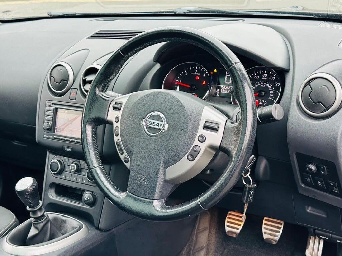 12V Socket - Front, 18in Alloy Wheels - Onyx, ABS - Anti Lock Brakes, AUX-In Socket, Active Front Headrests with Height Adjustment, Airbag - Driver, Airbag - Front Passenger, Airbags - Curtain, Airbags - Side, Alarm - Ultrasonic, Armrest - Rear, Around View Monitor - 360 Bird-View, Auto Rain Sensing Wipers, Automatic Lighting System, Brake Assist, CD Radio, Colour Front-Rear and Passenger Side Cameras, Cruise Control with Speed Limiter, Door Mirrors - Electric Adjustment and Heated, Drive Computer, Driver Seat Height Adjustment, Dual Zone Climate Control, EBD - Electronic Brakeforce Distribution, ESP - Electronic Stability Programme, Electric Folding Door Mirrors, Electric Speed-Sensitive Power Steering, Electric Windows - Front and Rear, Engine Immobiliser, Front Armrest, Front Cupholders x2, Front Fog Lights, Glovebox with Cooler Function, Head Restraints - 3 Rear, ISOFIX Child Seat Anchoring Points, Leather Steering Wheel, Nissan Connect 5in Touch-Screen Navigation System, Panoramic Glass Roof, Pollen Filter, Power Assisted Steering, Rear Cupholder, Rear Door Child Locks, Rear Parking Sensors, Rear Privacy Glass, Remote Central Locking with Superlocking, Reversing Camera, Roof Rails, Seats - 60-40 Split Foldable Rear Bench, Seats - Drivers Lumbar Support, Steering Wheel Mounted Audio Controls, Tilt and Telescopic Adjustable Steering Wheel, Traction Control, USB - iPod Connectivity