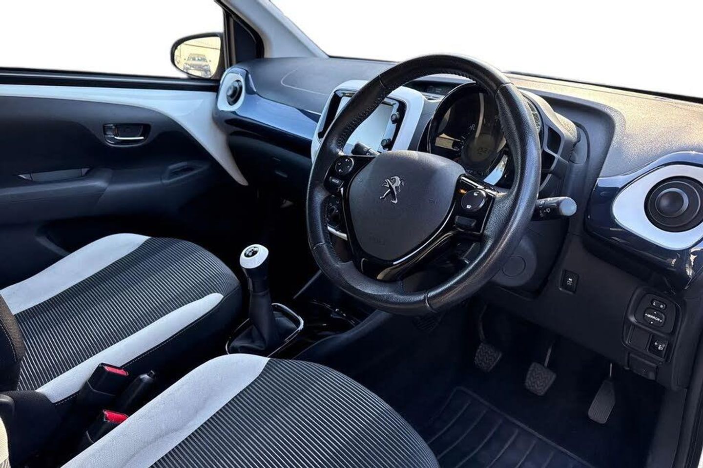 12V Power Socket,15in Alloy Wheels - Thorren,2 Front Speakers plus 2 Tweeters,2 x 3 Point Rear Seat Belts,3.5mm Jack for External Audio Device,7in Multifunction Colour Touch Screen,ABS with Electronic Brakeforce Distribution - EBD,Bluetooth,Chrome Door Handles,Chrome Door Mirrors,Collection Carpet Mats and Door Sills,Collection White Speed Decal - Side and Rear,DAB Digital Radio,Driver Seat Height Adjustment,Driver and Passenger Airbag with Passenger Airbag Deactivation Switch,ESP - Electronic Stability Program - with Hill Assist,Electric Front Windows,Electrically Assisted Power Steering,Electrically Operated and Heated Door Mirrors,Front Side Airbags,Front and Rear Curtain Airbags,Gear Knob - Leather,Head Restraints - Rear x2,Headlights - Automatic,LED Daytime Running Lights,Laser Red Ambience - Laser Red Dash Insert and Gloss Black Surround on Centre Console,Leather Trimmed Steering Wheel,Manual Air Conditioning,PEUGEOT Open and Go System,Rear Seat 3 Point ISOFIX Location Mounts x2,Rear Wash Wipe,Remote Control Central Locking,Rev Counter,Reversing Camera,Seatbelt Alarm,Seats - 50-50 Split Folding Rear,Space Saver Spare Wheel,Speed Limiter,Static Fog Lights,Steering Wheel - Height Adjustable,Steering Wheel Mounted Controls,Thatcham Approved Cat 2 Immobiliser,Tinted Rear and Side Windows,Tyre Pressure Sensors,USB Socket,Window - Chrome Trim,Rayura Cloth - Grey