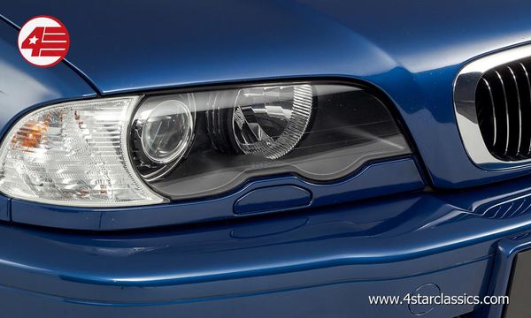 Topaz Blue over grey, an attractive colour combo well suited to the E46 M3. This low mileage example has just been treated to a full machine polish by our in-house detailer so the paintwork looks fantastic. The body is generally excellent with no major wear or bubbling on the arches, the only negatives to report being a dusting of light frontal stone chips and one or two discreetly touched-in marks. The lights are all clear and undamaged, and the electric hood also looks to be in first-rate condition with no marks or discolouration. Filling the arches are 18-inch M double-spoke alloys shod in Pirelli tyres all round.