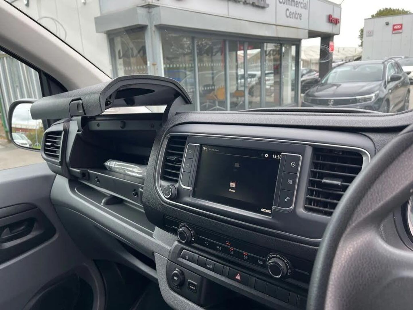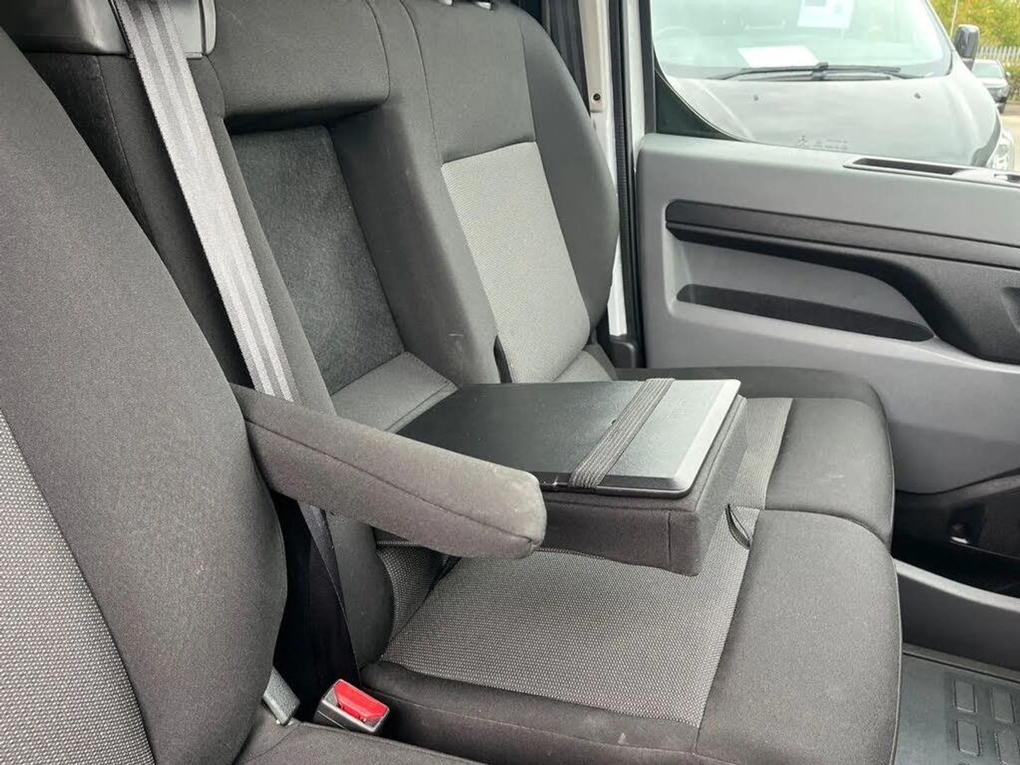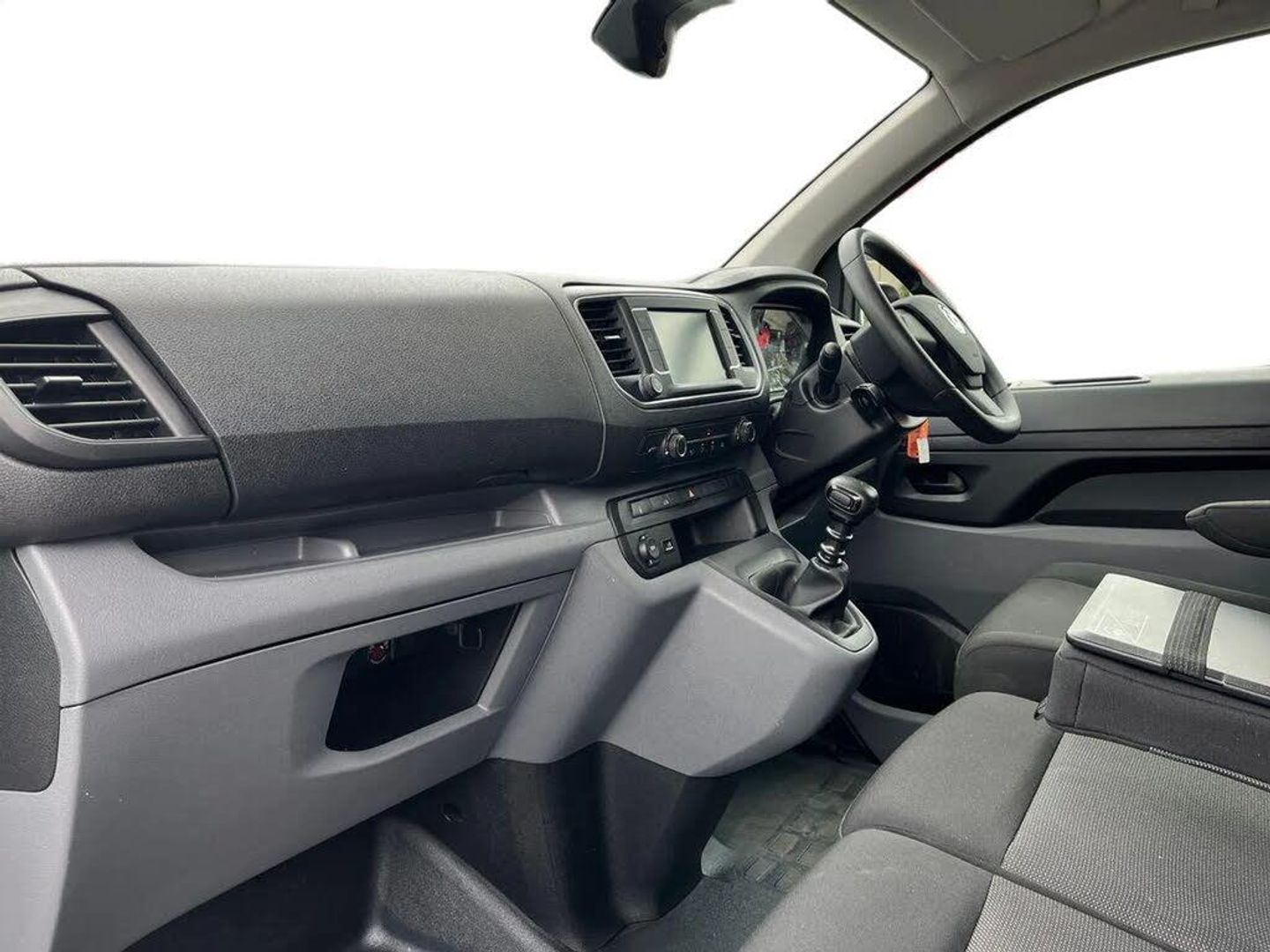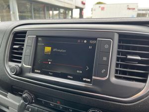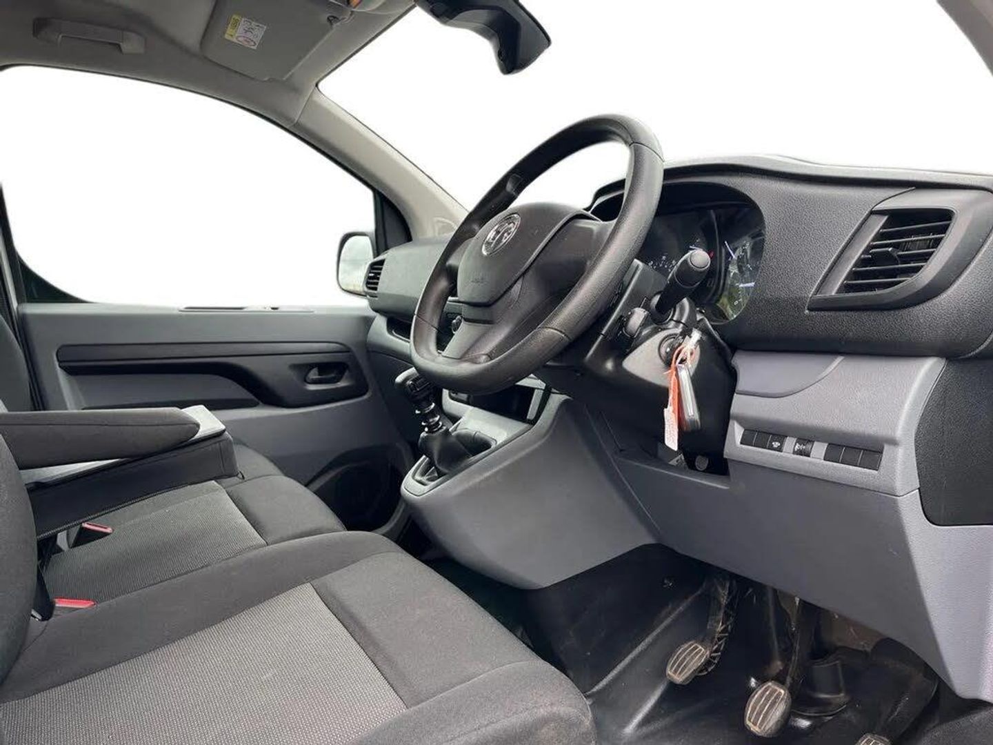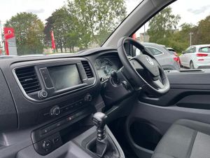 Driver drowsiness system,e-Call and b-Call,Hydraulic power assisted rack and pinion system,Instrumentation - Speedometer, rev counter, fuel gauge with low fuel warning light and coolant temperature warning light,Multi function trip computer, trip odometer, vehicle range, average speed, driving time, average and instantaneous fuel economy,Multimedia 7"colour touch,AM/FM stereo,DAB,RDS traffic prog,4 speakers,USB,Bluetooth A2DP audio stream,mircrophone,Applecarplay/Androidauto,phone book,PAS,Rear parking distance sensor,Steering wheel mounted audio and phone controls,Body coloured door handles,Electric front windows with one touch up/down facility,Electrically adjustable + heated door mirrors,Flexible roof mounted aerial,Front cornering lights,Front fog lights,Halogen headlights,High beam assist,Lights on audible warning, reversing light, hazard warning, rear fog light, high level brake light and side repeat indicator,Side protection mouldings,Air conditioning with air recirculation facility, pollen filter, illuminated controls and chilled glovebox facility,Cab soundproofing,Curitiba cloth upholstery with vinyl side bolsters,Driver seat - Height, reach, backrest recline,lumbar adjustment, driver's seat armrest and padded head restraint, 6 way adjustable drivers seat,Facia storage-upper glovebox, open lower glovebox with 12v socket and aux-in ,lower shelf, A4 storage on top, two drink holders, pocket in gear lever,Fixed dual front passenger bench seat and backrest with underseat storage and height adjustable front padded head restraints,Fixed floor mounted load restraint lashing eyes x6,FlexCargo load through bulkhead,Fold flat centre seat backrest,Front door pockets - three separate compartments in each door,Full height steel bulkhead without window,Mistral Black/Grey facia and door trim,Reach and rake adjustable steering wheel and facia mounted gear lever,Three spoke steering wheel with satin chrome effect bezel,Appearance pack - Vivaro L1,Visibility Pack - Vivaro,3 point seat belts,Height adjustable outer front seatbelts,Inertia reel lap and diagonal seatbelts for all seats,Seatbelt remainder for driver and passenger,Electronic engine deadlock immobiliser, steering column lock, lockable fuel filler cap and anti theft spare wheel cradle,Remote control door locking, selective door locking, two keys with integral remote and door deadlocks,Security alarm system with monitors doors, tailgate, bonnet and the passenger compartment,22.5 litres AdBlue tank,70 litre fuel tank,Electronic brake force distribution,Emergency brake assist,Engine start/stop system,ESP plus + traction control,Floor mounted handbrake lever,Four channel Anti lock braking system,Front ventilated and rear disc brakes,Hill start assist,Six speed manual gearbox,Speed limiter,16" steel wheels with full diameter wheel trims