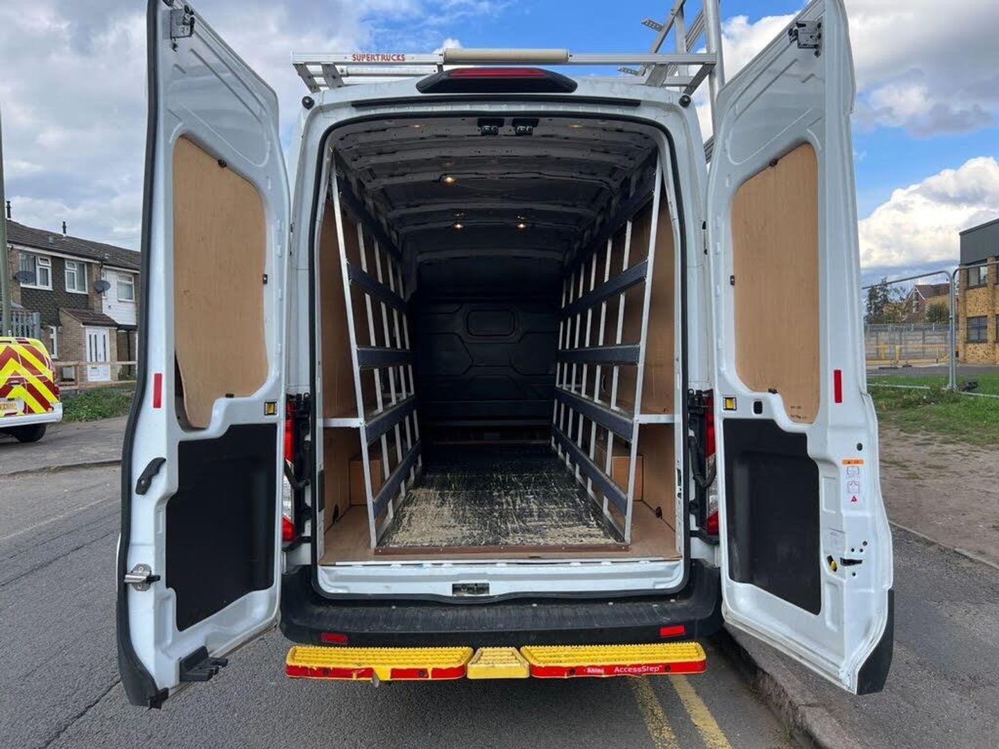 16in Steel Wheels, 236 Degree Opening Rear Cargo Doors, Airbags - Driver, Alternator - Standard Duty 165Amp, Anti-Lock Braking System - ABS with Electronic Brake Force Distribution - EBD, Assist Handle - Located on B-pillar, Auxiliary Connection Point - 1x12V - 60A Connection Located Under Driver Seat Pedestal, Battery - Cold Start -20 Degree C, Bodyside Mouldings - Wide - Self Colour, Bottle Holder - Twin 2 litre Bottle Capacity - Facia-Mounted, Bulkhead - Full Steel, Courtesy Lights - Header-Mounted Front with Theatre Dimming, Curve Control, Daytime Running Lamps, Door Handles - Self Coloured, Door Mirrors - Blind Spot Eliminator and Integrated Side Indicator, Door Mirrors - Manual, Doors - Unglazed Rear, Doors - Unglazed Rear Doors - Hinged for Widest Opening with Magnetic Door Retentioners, Dual-Circuit Front and Rear Discs with Self-Adjusting Servo-Assistance and ABS, EBA - Emergency Brake Assist, ESC - Electronic Stability Control, Easy Clean Floor - Cab, Electric Windows - Front, Emergency Brake Warning, Fold Out Front Passenger Seat Table, Ford Easy-Fuel Capless Refuelling System, Ford Eco Mode - Driver Information System, Ford SYNC with 4.2in TFT Screen, Front - Independent MacPherson Struts - Coil Springs - Stabiliser Bar and Gas-Pressurised Shock Absorbers - Rear - Leaf Springs and Gas-Pressurised Shock Absorbers, Front Bumper - Self Colour, Front Grille - Sterling Grey, Gearshift Indicator Light, Glovebox - With Lid and A4 File Storage Capability, Headlights - Halogen Projector with Black Backgroud, Headlights Courtesy Delay - 30 Seconds Duration, Headlining - Cab - Moulded, Heated Front Windscreen, Heater - Positive Thermal Coefficient - PTC, Heavy Duty Alternator, Hill Start Assist, ICE Pack 17, Immobiliser - Safeguard Passive Anti-Theft System - PATS - Insurance-Approved Category 2 Immobiliser, LAC - Load Adaptive Control, Less Easy Clean Floor, Less Steel Spare Wheel, Liftgate - Cargo Door Handle - Self Colour, Load Compartment - DIN 75410 Compliant Tie-down Loops, Loadspace Compartment Light, Locks - Audio Mislock Feedback - Audible Signal if a Door is Ajar When Locking Activated, Locks - Auto Locking on Drive-Away - Doors Automatically Lock at 8 kmh or 5 mph, Locks - Auto Relocking - Doors Relock after 45 Seconds if no Door is Opened, Locks - Configurable Unlocking, Locks - Key Operated Bonnet Release, Locks - Power Door Deadlocks - Shielded with Strengthened Mountings, Mudflaps - Rear, Passenger Side Sliding Load Door - Solid, Power Assisted Steering, Power Point Socket - 2x 12V, RSC - Roll Stability Control, Radio with Remote Stalks, Rear Bumper - Self Colour with Integrated Step, Remote Central Door Locking with Deadlocks, Remote Central Locking with One Key Fob, Seatbelts - 3 Point Diagonal Inertia Reel - All Seats, Seats - Drivers 4-Way Adjustment with Armrest, Seats - Dual Passenger, Selectable Drive Mode, Side Marker Lights, Side Wind Mitigation, Single AGM Battery, Steering Column - Rake and Reach Adjustment, Steering Wheel - 4 Spoke Polyurethane, Storage - Drivers Side - Storage Compartment on Facia Top with Lift Up Lid, Storage - Front Door Map Pockets, Storage - Underseat Stowage Compartment Under Dual Passenger Seat, Trip Computer, Tyre Inflator Kit, Vehicle Identification Number - VIN - Visible, Vehicle Maintenance Monitor, Water in Fuel Filter with Sensor, Wheel Covers - Half Caps, Wipers - Front Variable-Intermittent with Electric Wash