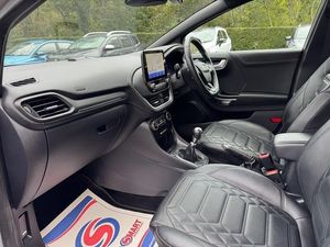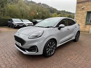 RESERVE ON LINE...ONE OWNER FROM NEW FULL FORD HISTORY, 18" ALLOYS, NAVIGATION, B&O SOUND, APPLE ANDROID PLAY, HEATED LEATHER SEATS, PRIVACY GLASS AND F&R PARK ASSISTThis 2022 Ford Puma ST-Line X Vignale offers excellent peace of mind with its MOT valid until August 2026. This stylish compact SUV is equipped with a responsive 1.0L petrol engine and meets Euro 6 emissions standards. The ST-Line X Vignale trim level ensures a premium experience, enhanced by features like front parking sensors with parking assistance, and convenient keyless entry. Inside, you'll find luxurious heated front seats and a heated steering wheel for ultimate comfort, complemented by the B&O Premium Audio System and Ford SYNC 3 Navigation, which includes Android Auto, Apple CarPlay, and Bluetooth connectivity for seamless entertainment and communication.The Ford Puma ST-Line X Vignale stands out with its sophisticated blend of sporty design and advanced technology. The inclusion of the B&O Premium Audio System and Ford SYNC 3 Navigation, offering both Android Auto and Apple CarPlay, elevates your driving experience beyond that of many similar vehicles. Furthermore, the practical benefits of front parking sensors and keyless entry, alongside the comfort features of heated front seats and a heated steering wheel, demonstrate a superior level of specification designed for everyday enjoyment and ease of use.