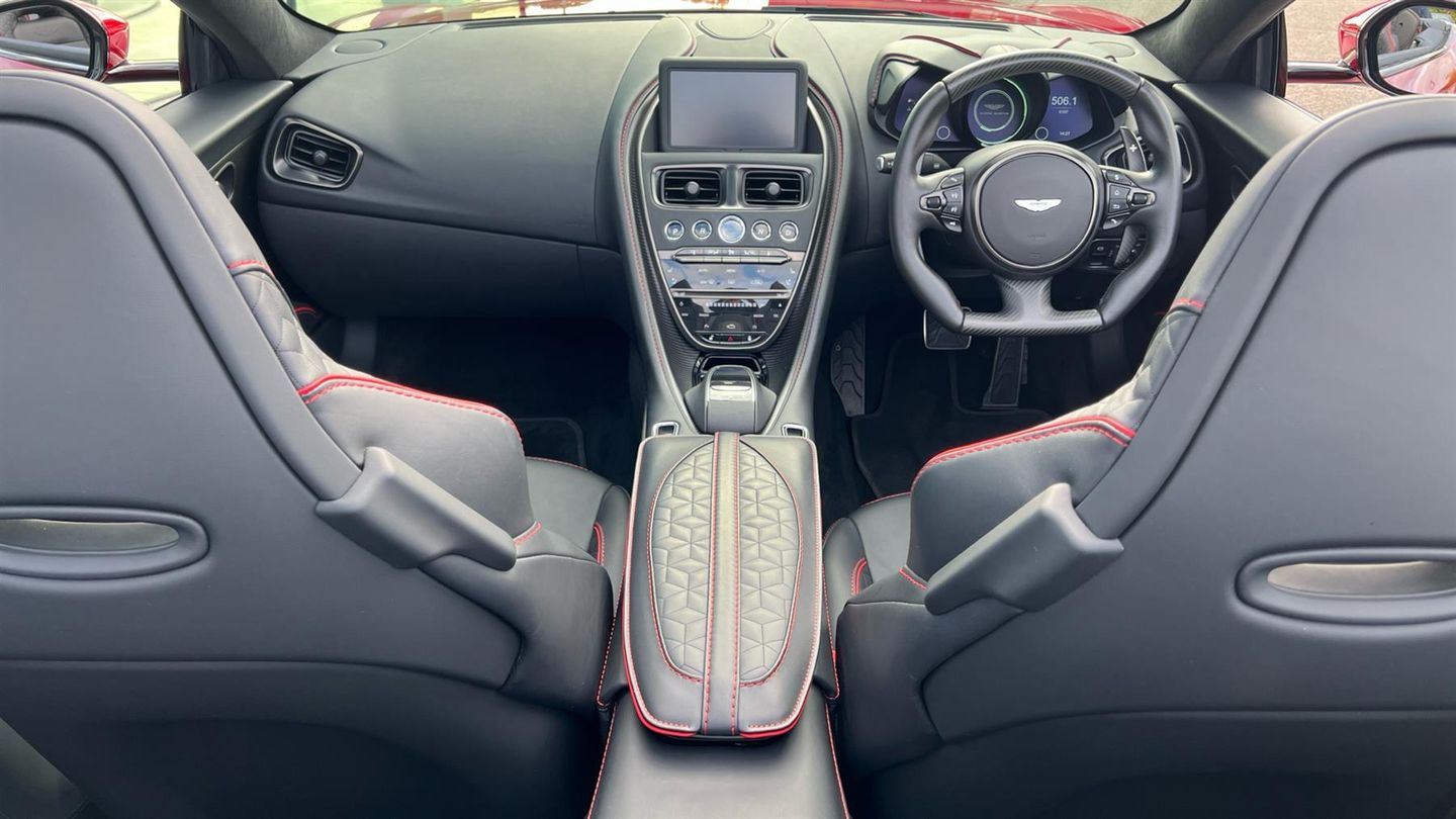 Finished in Supernova Red paint , this brute in a suit offer both sophistication and a raucous edge. Experience the sublime elegance of the Aston Martin DBS V12 Volante in Q Special Supernova Red, available from Aston Martin Birmingham. This exceptional masterpiece, with low mileage and over 30K in coveted factory options, is the epitome of luxury and performance. Revel in the seamless precision of the Touchtronic automatic transmission, offering an unrivalled driving experience. Enriched with three complimentary annual services, this rare find promises not only exhilarating drives but also peace of mind. Immerse yourself in the spirit of Aston Martin, where every journey is a symphony of craftsmanship and power. Indulge your senses today..