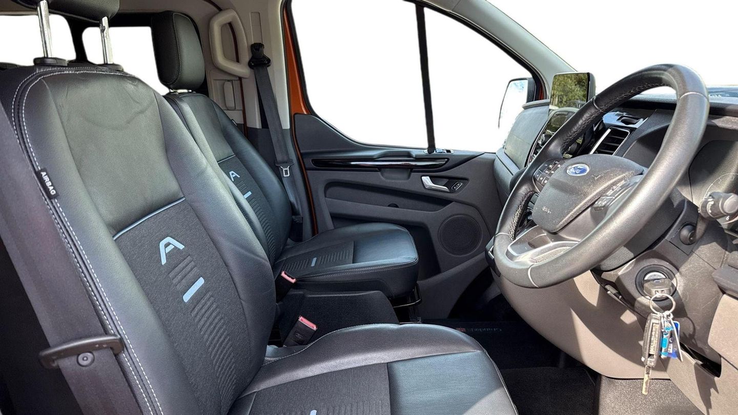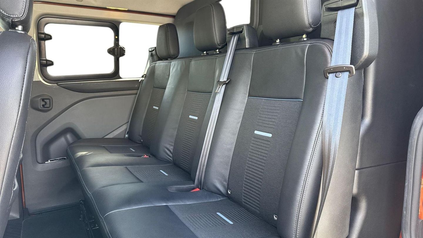 Reserve Online,VAT Qualifying Vehicle,Commercial vehicle: the price of this vehicle is subject to VAT,Ford Eco mode,Easy fuel capless refuelling system,Accent colour exterior mirror finish,Rear mudflaps,Silver roof rails,Roll stability control,ABS,Selectable drive mode,Extended length running board dual side,Front seat pack 8A - Transit Custom,2nd row three seat wide bench,Assist handle,Unique active style front grille,Intermittent front wash/wipe,Headlamp levelling