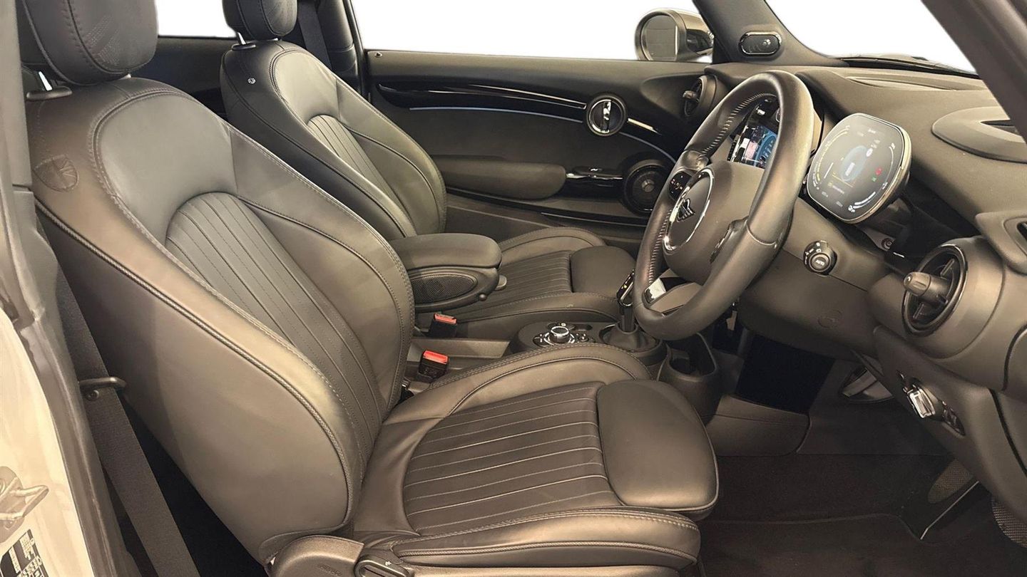 Reserve Online,Level 3,MINI Navigation System,Comfort Access,Panoramic Glass Sunroof,Harman/Kardon Surround Sound,Sun Protection Glass,Front Heated Seats,Reversing Camera,Cruise Control,MINI Head-Up Display,Body coloured roof and mirror caps,Piano black exterior trim on headlight and rear light frames,MINI Yours leather upholstery with sports seats,Special Metallic - Nanuq White,17" Tentacle spoke alloy wheels,Electric Folding Door Mirrors,Ambient Lighting,MINI Driving Modes,Velour Floor Mats,ISOFIX Child Seat System,Front Armrest,Front Sport Seats,Extended Storage,Driving Assistant,LED Headlights,Parking Assistant,Automatic Air Conditioning,Smartphone Integration,Visual Bost Radio,MINI Connected,MINI Connected XL,Digital Cockpit,DAB Radio