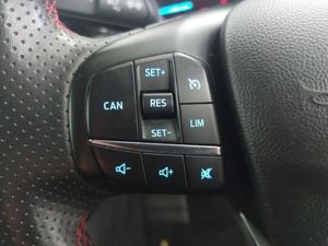 Full Service History, Dual zone electronic air temperature control, 17" 5 spoke Rock mettalic finish alloy wheels with mini spare wheel, Ford SYNC 4 Navigation with 13.2'' touchscreen, DAB radio, Emergency Assistance, Apple Carplay & Android Auto, 6 speakers & FordPass Connect, Bluetooth system, Quickclear heated windscreen, Keyless entry and keyless start, Lane keeping system - lane keeping alert and lane keeping aid, 4.2" Colour TFT Ice blue illumination analogue cluster with trip computer, Eco mode, Selectable drive mode, Sports tuned suspension, 2 USB ports, Electrically operated heated power fold door mirrors with puddle lamp with side indicators, Electrically operated front and rear windows with one touch opening and closing, Full fixed LED headlamps, LED daytime running lamp, Unique ST-Line grille, full bodystyling kit, and large body coloured rear roof spoiler, Privacy glass, Isofix child seat preparation, ABS+Electronic Brake force Distribution, Passenger airbag deactivate switch, Remote central locking & engine immobiliser, MyKey system
