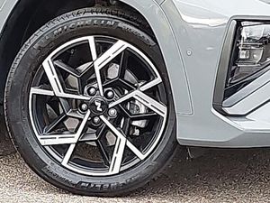 Wireless Apple CarPlay/Android Auto, Wireless phone charging pad, Krell premium audio system with 8 speakers and subwoofer, Heated front seats, Heated rear seats, Heated steering wheel, Electric sunroof, Head Up Display, 12.3" LCD display with driver's supervision instrument cluster, 12.3" widescreen navigation with bluelink and mapcare, Lane follow assist, Lane keep assist, Smart power tailgate, DAB Digital radio, Dual zone climate control, TUCSON branded metal door scuff plate, N Line Leather/faux textile suede upholstery, N Line design package - Tucson, N Line interior design package - Tucson, Smart key with keyless entry and engine start/stop button, 19" Alloy wheels