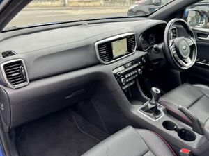 Blue Flame, Leather - Black with Red Piping and Stitching, 12V Power Sockets - Front and Rear Consoles, 19in Alloy Wheels B-Type, 3 x Passenger Assist Grips, 4.2in Supervision Colour Cluster Display, 6-Speaker System, 60-40 Split Folding Rear Seats, 7in Touchscreen Satellite Navigation with European Mapping with Traffic Message Channel - TMC, Advanced Anti-Theft System including Immobiliser and Alarm, All-Round 3-Point Seatbelts, All-Round Electric Windows with Drivers Auto Up-Down Function, All-Round Height Adjustable Headrests, Anti-Lock Braking System - ABS with Electronic Brakeforce Distribution - EBD, Apple CarPlay and Android Auto, Auto Dimming Rear-View Mirror, Automatic Headlight Control, Black Wheel Arch Body Mouldings and Side Sills with Dark Chrome Insert, Bluetooth with Voice Recognition and Music Streaming, Body Coloured Door Mirrors, Body Coloured Exterior Door Handles with Chrome Insert, Centre Cabin Light, Centre Console Storage Box, Centre Fascia - Black High Gloss, Child Safety Rear Door Locks, Chrome Boot Sill Guard, Chrome Window Surrounds, Coat Hooks - Rear, Cruise Control with Speed Limiter, Cupholders in Rear Armrest, DAB Radio with MP3 Compatibility, Dark Chrome Front Grille Surround, Door Deadlocks, Driver and Passenger Sunvisors with Vanity Mirror and Illumination, Drivers Seat Power Lumbar Support, Drivers Wide View Door Mirror, Dual Automatic Air Conditioning, Electrically Folding-Adjustable and Heated Door Mirrors with LED Indicators, Electronic Stability Control - ESC - with Downhill Brake Control - DBC, Emergency Stop Signalling - ESS, Engine Start-Stop Button with Smart Entry System, Exhaust - Dual, Front Cabin LED Map Light with Sunglasses Case, Front Door Courtesy Reflectors, Front Parking Sensors, Front Passenger Airbag Cut Off Switch, Front Seatback Pockets, Front Seatbelt Height Adjusters, Front Wiper De-Icer, Front and Rear Centre Armrests, Front and Rear Door Storage, Gear Shift Indicator, Glovebox with Illumination, Head Rests - Front Active, Headlights - High Beam Assist - HBA, Headlining - Black, Heated Front and Outer Rear Seats, Hill-Start Assist Control - HAC, ISOFIX Child Seat Top Tethers and Anchor Fixings, Impact Sensing Auto Door Unlocking, Interior Door Lock-Unlock Function, Kia Connected Services Featuring TomTom - Traffic - Speed Cameras - Local Search and Weather Updates, LED Bi-Function Headlights with Auto Levelling and Adaptive Lighting System, LED Daytime Running Lights, LED Ice-Cube Front Fog Lights, LED Rear Tail Lights, Lane Keep Assist System - LKAS, Leather Trimmed Door Armrests, Leather Trimmed Gearshift, Locking Wheel Nuts, Luggage Area Light, Luggage Area Load Cover, Luggage Net Hooks, Power Steering, Privacy Glass - Rear Windows and Tailgate, Radiator Grille - Gloss Black Blade Mesh, Rain Sensing Front Wipers, Rear Parking Sensors, Rear Spoiler, Rear Ventilation Duct, Reversing Camera System, Roof Rails, Satin Chrome Interior Door Handles, Shark Fin Antenna, Silver Painted Front and Rear Skid Plates, Speed Limit Information Function - SLIF, Speed Sensing Auto Door Locking, Stainless Steel Door Scuff Plates, Stainless Steel Pedals, Steering Wheel - D-Shaped Sports Leather with Perforated Inserts and GT-Line Logo, Steering Wheel Mounted Audio Controls, TMK - Tyre Mobility Kit, TSA - Trailer Stability Assist, Tilt and Telescopic Steering Wheel Adjustment, Tinted Glass, Trip Computer - Distance - Fuel Consumption - Average Speed, Twin Curtain Airbags with Roll-Over Sensor, Twin Front Airbags, Twin Side Airbags - Front, Tyre Pressure Monitoring System - TPMS, USB and AUX Ports for Connection of an Audio Media Device - iPod - Memory Stick, Visible Vehicle Identification Number - VIN, Welcome and Follow-Me-Home Light Functionality, Windscreen Washer Level Warning