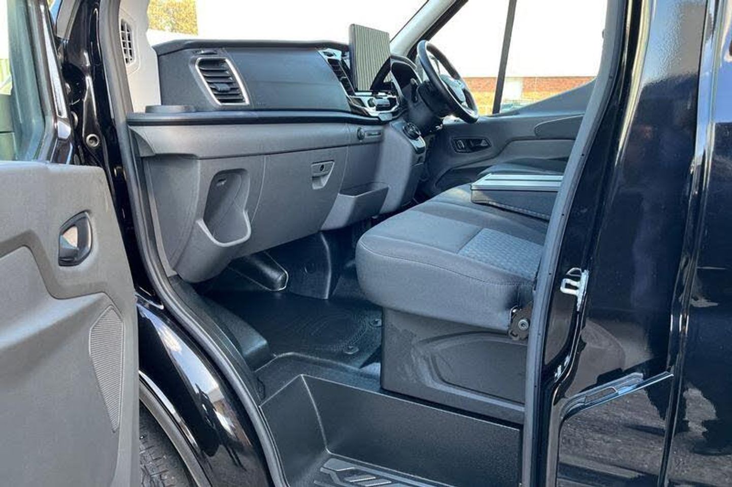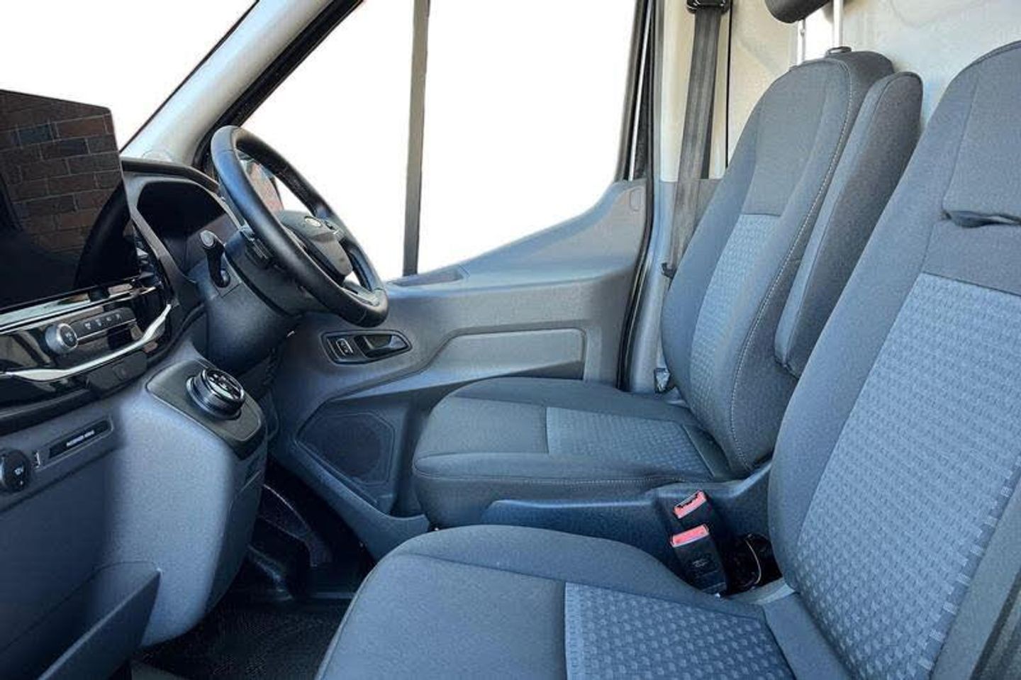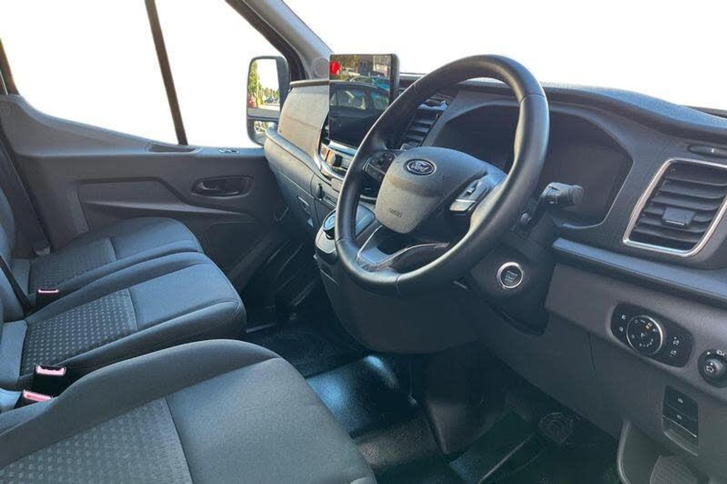 CRUISE CONTROL provides extra comfort on longer journeys allowing you take your foot off the acceleration whilst just focusing on steering the vehicle, DIGITAL REAR VIEW MIRROR is an intelligent rear vision system that uses a rearward facing digital camera to capture video and stream it to the mirror-integrated LCD display, BLUETOOTH HANDS FREE WITH VOICE CONTROL allows you to operate both your mobile phone and Ford audio system - controlling several functions using a set list of simple voice commands, FRONT AND REAR PARKING SENSORS are designed to help you park more confidently helping you judge the distance between your vehicle and obstacles both in front and behind you, QUICKCLEAR HEATED WINDSCREEN uses ultra thin filaments that superheat to de-ice and de-mist your windscreen as well as help de-freeze the wipers and works in seconds, 12 Touchscreen with SYNC4 navigation, Bi-Xenon headlights with LED daytime running lights, Single rear wheels, Automatic air conditioner with 12 inch multi function display, Automatic windshield wiper, Rain sensing windscreen wipers, Driver one touch up/down power windows, Quickclear heated windscreen, Rear mudflaps, Leather steering wheel, Warning lights, Reach and rake adjustable steering column, High mounted stop lamp, Front passenger airbag deactivation, Audio controls mounted on steering wheel, 2 x 12V power outlets, Configurable Unlocking, PAS, Cold start (-20), Partial rubber inside floor cover, Header mounted courtesy lights - 2 map lights, Partial molded headliner, Storage box under dual passenger seat, Visible Vehicle Identification Number (VIN), Load compartment tie down loops, Non limited slip differential front axle, Roof mounted radio antenna, High intensity discharge headlamp with static cornering lights, Water in fuel filter with sensor, Gearshift indicator light, Easy fuel capless refuelling system, Auto start/stop system, Electric windshield defroster, Two step door unlock system, Electronic dynamic cornering control, Tyre pressure sensors, Paddle shift, Side wind mitigation, DAB Radio, Intelligent Speed Assist, Emergency assistance, Electric parking brake, Rear fog lights, Overhead console, Vehicle maintenance monitor, Selectable drive mode, Lockable glove box lid, ABS + ESP + Hill start assist, Curvature Control, Emergency brake warning, Radio with remote stalks, Rear axle Alt A - Narrow track, Integrated indicators on door mirrors, Leather gear shift knob, Driver and passenger seatbelt reminder, Digital rear view mirror, Speed dependent power lock group, Locking wheel lug nut, Rear splash guards, Driver sunglasses roof storage, Door entry remote control unit 2 Fobs key, Driver large head/short arm mirror, Static bending headlights, Auto high headlamp, Self coloured door handles, Plastic rear bumper, Wrong way alert, Delete wheel covers, Driver front seatbelt buckle pretensioner, 4 radio speakers, Shielded power door deadlocks, 8 Part digital instrument cluster, Wireless beltminders, Rotary gear shifter, Model badge, 2 litre twin facia mounted bottle holder, Body coloured upper front bumper, Body coloured lower front bumper, Self coloured rear bumper with integral step, Self coloured front grille with chrome surround, Wide bodyside self coloured mouldings, Self coloured cargo door handle, 4 spoke premium feel Sensico wrapped steering wheel, Front independent MacPherson struts, linear rate coil springs, stabiliser bar, gas pressurised shock absorbers and rear leaf springs, 16 5 spoke alloy wheels x 6.5, P235/65 R16C BSW tyre size, Driver assistance pack 6 - Transit Auto, LONG WHEEL BASE, MEDIUM ROOF , ULEZ COMPLIANT, ULEZ, NATIONWIDE DELIVERY AVAILABLE, EURO 6, CAMERA