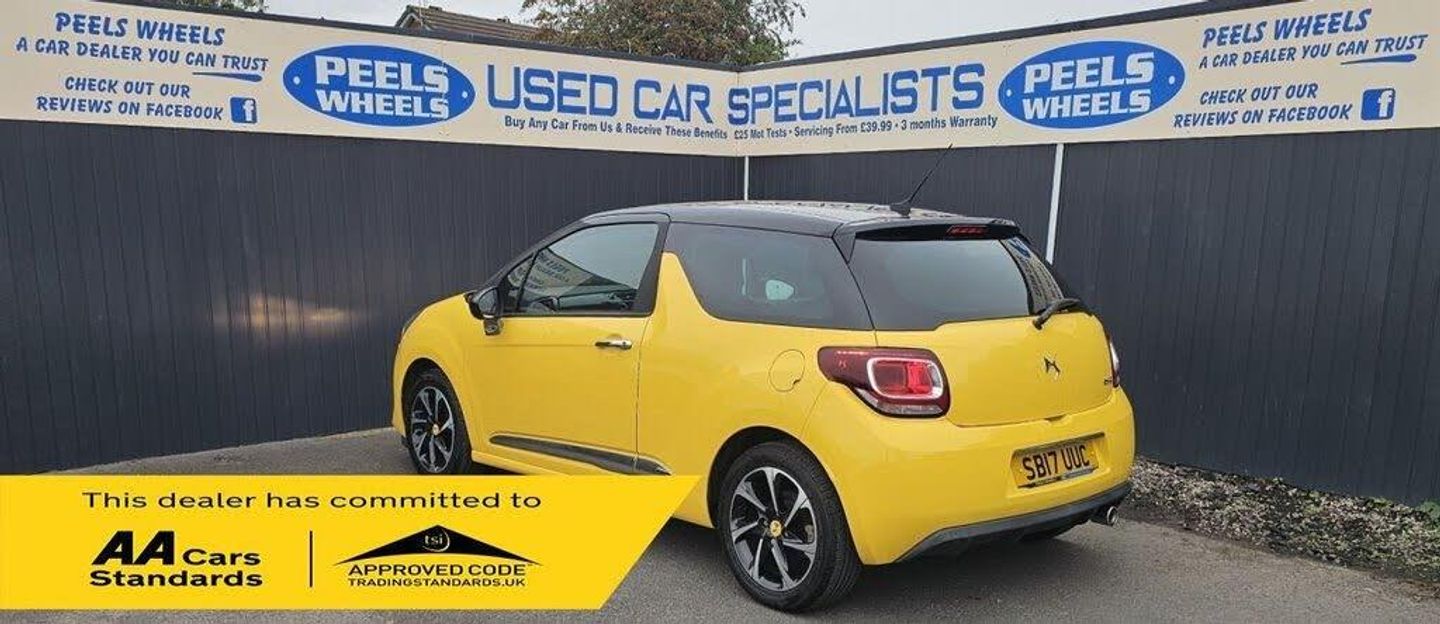 2017 (17) Citroen DS3 * Yellow, 1.2 PureTech Elegance Hatchback, 3 Door, Petrol, 5 Speed Manual, 2x Keys, Euro 6 (s/s) (110 ps) 3 Months Warranty, Finance Available. See Our Links Below To Apply, M.o.t September 2026, Test Drives Welcome, Complete Full Service History From New, New Front Tyres Fitted, Just Been Serviced, Recent New Exhaust Fitted, Fully Cleaned, Great Spec, Great Condition, Come And View, Air Conditioning, Climate Control, CD Player, Electric Folding Mirrors, Electric Windows, Alloy Wheels, Part Exchange Is Also Welcome, Credit And Debit Cards are All Welcome, ** WE ALSO OFFER DELIVERY ALL OVER THE U.K ON ALL CARS ** CHECK OUT ALL OUR REVIEWS ON FACEBOOK AND GOOGLE, SEARCH:- PEELS WHEELS MORECAMBE READY TO DRIVE AWAY SAME DAY, CHECK OUT OUR REVIEWS ONLINE, GREAT PRICES OFFERED ON PART EXCHANGE, Apply Here For Finance:- https://choosemycar.com/dealer-form/1614272833 OR HERE https://www.firstresponsefinance.co.uk/get-a-quote To view our full stock list please visit our website MORE CARS ARE ON THERE. www.peelswheelsusedcarspecialists.co.uk, Call us today - 07933719171, Come see us - PEELS WHEELS, MORECAMBE, LA33AY PEELS WHEELS A CAR DEALER YOU CAN TRUST, PLEASE FEEL FREE TO CHECK OUT ALL OUR REVIEWS ONLINE AND ON FACEBOOK FOR CONFIDENCE ALSO IF YOU ARE LOOKING AT CARS ELSEWHERE PLEASE CHECK THERE REVIEWS BEFORE BUYING, BE SAFE!