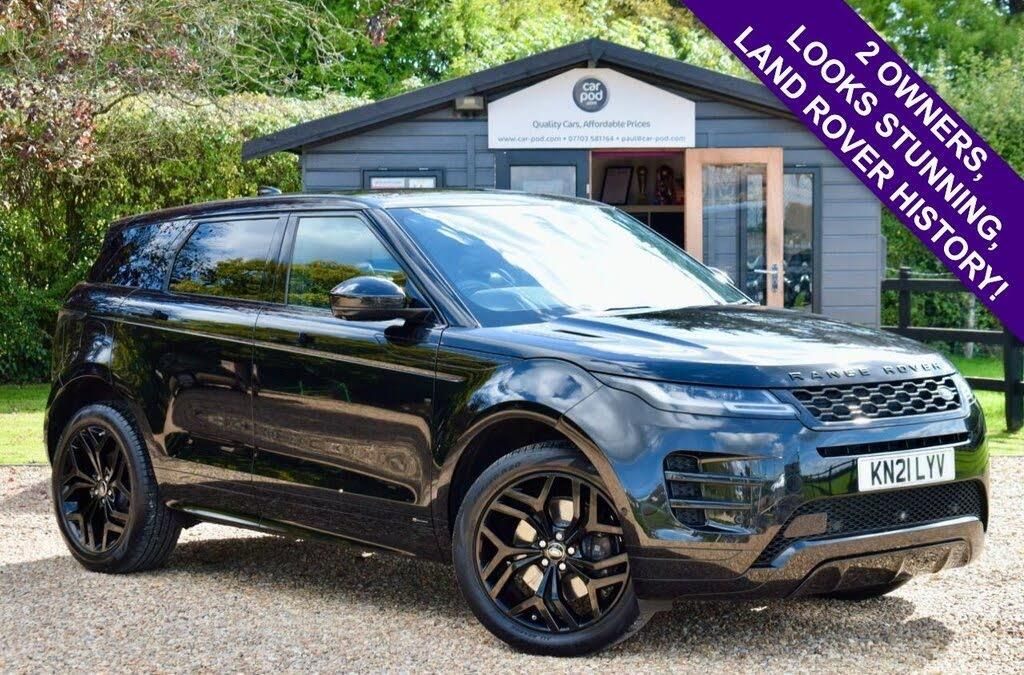 Welcome to Car-Pod and our advert for this stunning Santorini Black Range Rover Evoque 2.0 P200 MHEV R-Dynamic SE which joins us with 2 Owners from New, Land Rover Service History (services at 14k and 30k miles) and an MOT showing No Advisories until 1st March 2026, although we will put a new MOT on once sold! Features include 360 Camera, Front and Rear Parking Sensors, Heated Leather Seats, Panoramic Roof, Sat Nav, Apple CarPlay, DAB Radio, Bluetooth, Cruise Control, Lane Assist, 20in Alloys and 2 Remote Keys. First to see will buy, so call now to book your personal viewing! Highly competitive finance available with £0 deposit, call us for an instant quote. Credit & Debit Cards Accepted. Maximum £250 Credit Card Payment accepted. We deliver nationwide upon request. For more info, photos, video's or to arrange a viewing, please call us on 07703 581764 or visit www.car-pod.com. We are proud winners of the 'Highly Commended' Award for 'Car Retailer Customer Service Excellence', presented to us at the Auto Industry Excellence Awards 2020.