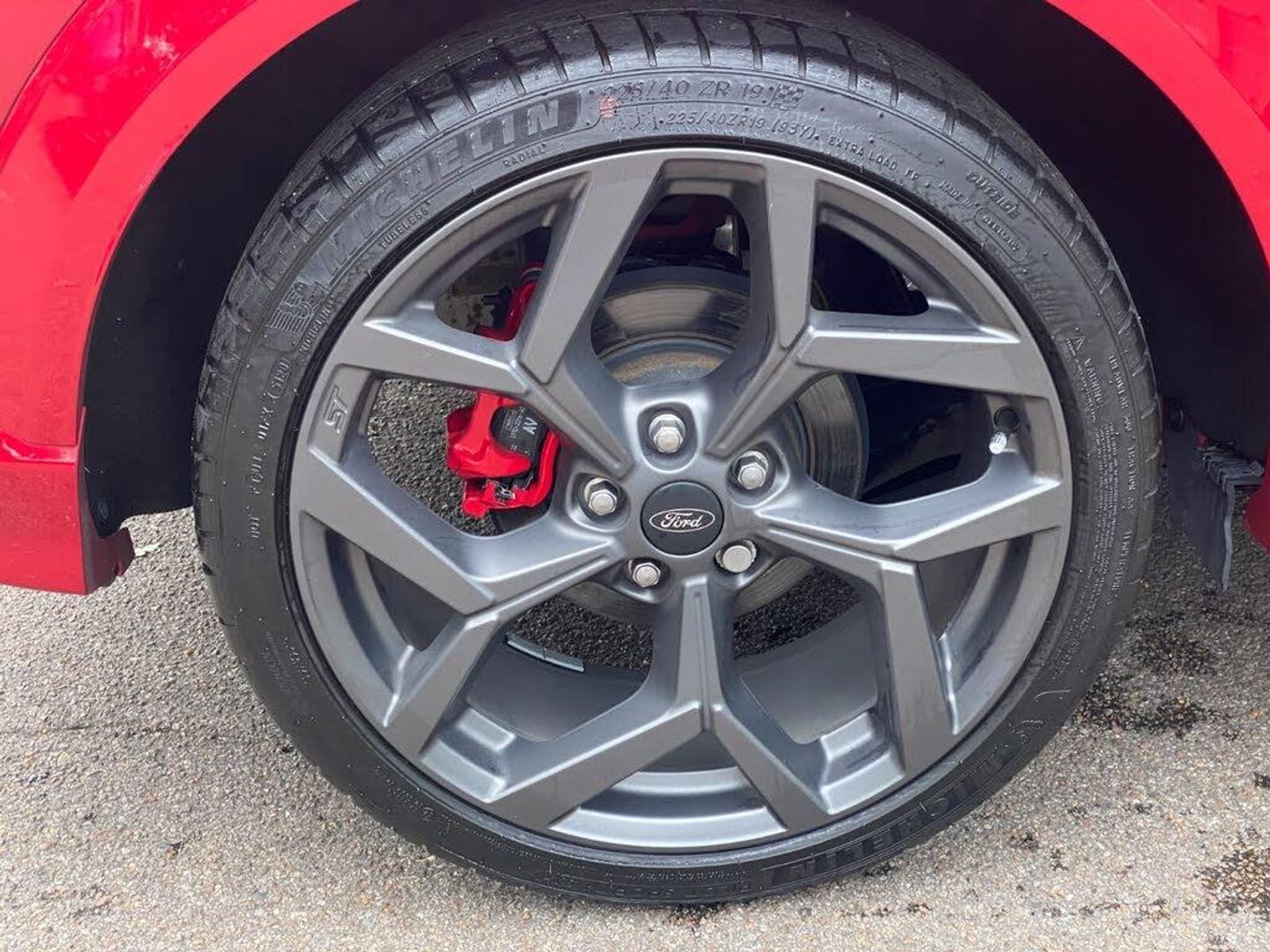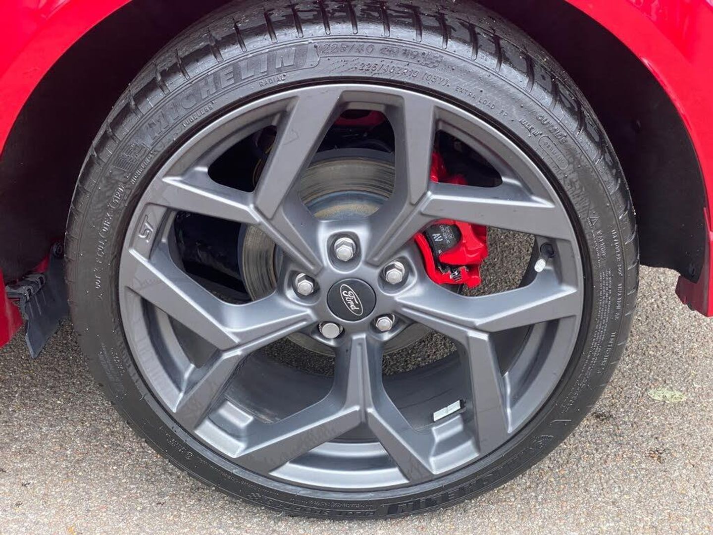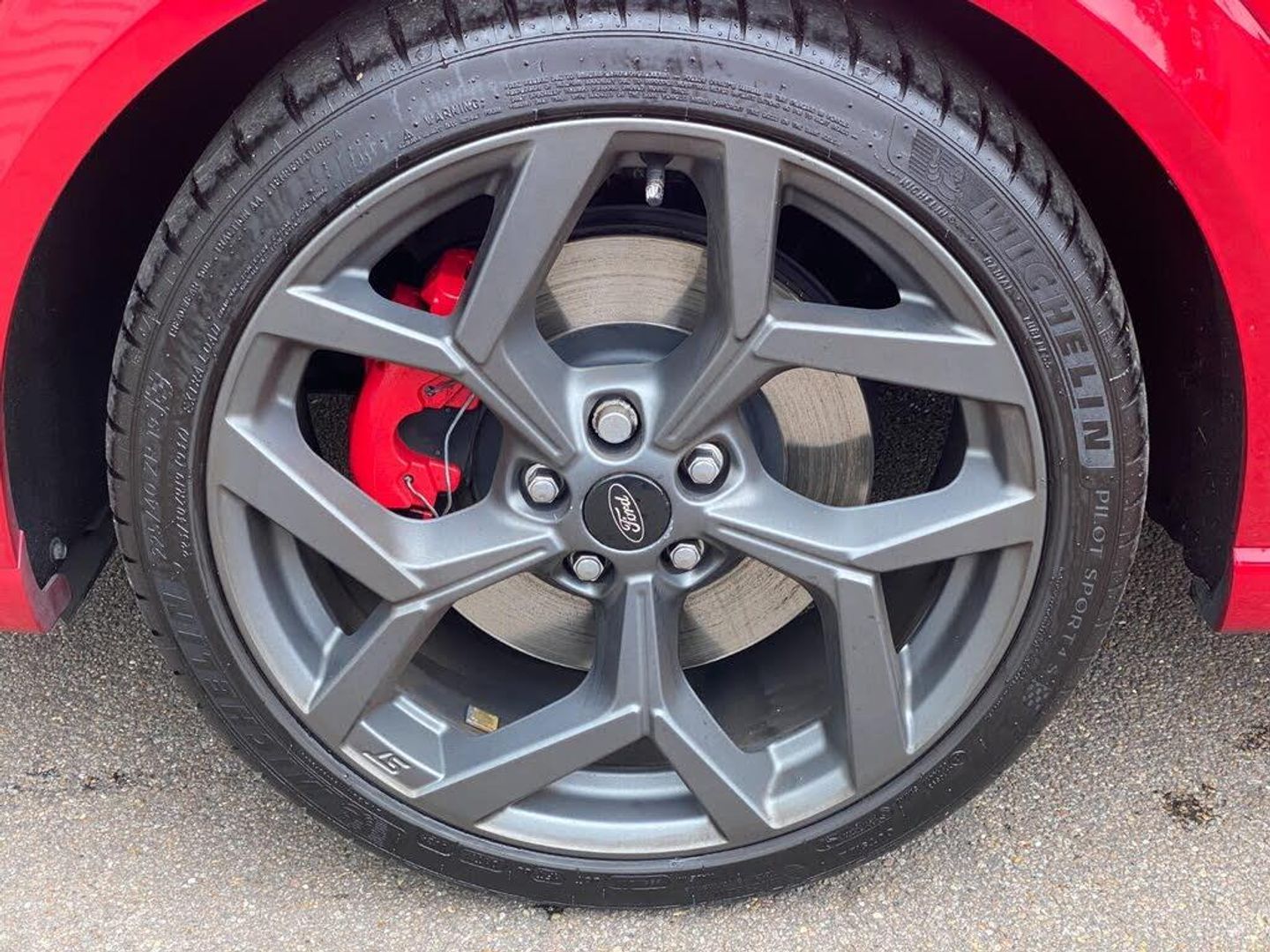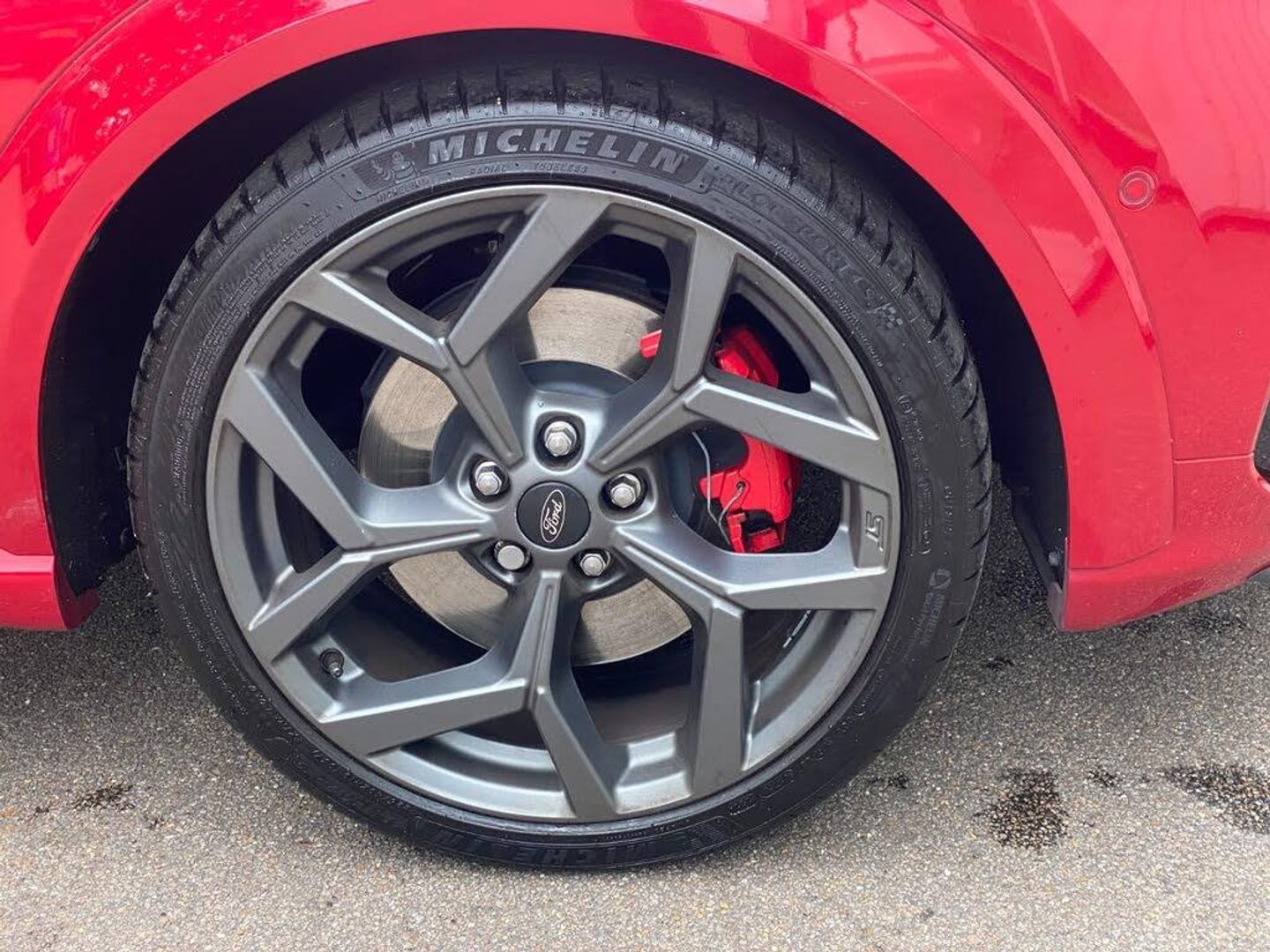 Cruise control with Intelligent speed assist, Driver impairment monitor, Emergency call service, Ford easy fuel, Front and rear parking sensors, Full digital 12.3" instrument cluster, Lane keeping aid with lane departure warning, Power assist steering, Selectable drive modes (normal, sport, eco, track), Speed sign recognition, Wireless charging pad, Engine sound enhancer, ST suspension, Automatic headlights with auto high beam, Automatic rain sensing wipers, Dual chrome exhaust, Fixed LED signature headlamps, Front fog lamps, LED daytime running lights, LED rear lamps, Power foldable heated door mirrors with puddle lamps and puma logo protection, Privacy glass to side rear windows and tailgate glass, Quickclear heated windscreen, Rear side wing doors, Rear wiper, ST scuff plates, Third brake light, Unique ST body styling kit including contrast black roof, large rear spoiler and wing mirrors, plus Ford Performance embossed splitter, 3 seat bench in 2nd row, Alloy sports pedals, Centre console with armrest and stowage, Electronic automatic temperature control (EATC), Ford megabox extended bootspace, Ford Performance sensico partial premium leather upholstery with metal grey stitching, Front and rear floor mats, Front and rear head restraints, Heated front seats, Heated steering wheel, Manual 6 way driver seat adjust with lumbar adjustment, Manual 6 way passenger seat with lumbar seat adjustment, Single front passenger seat, ST flat bottomed steering wheel with metal grey stitching, ST logo projection, Unique ST gear shift knob, B&O Premium Audio system + Ford SYNC 3 navigation pack - Puma, 3 rear seatbelts, Child safety lock, Electronic stability control (ESC) and hill start assist, Pre-collision assist with autonomous emergency braking, pedestrian/cyclist detection and post-collision braking, Red brake calipers, Tyre pressure monitoring system (TPMS), Keyless entry and power start button, Thatcham alarm, Carbon look interior deco spears, Tyre inflation kit