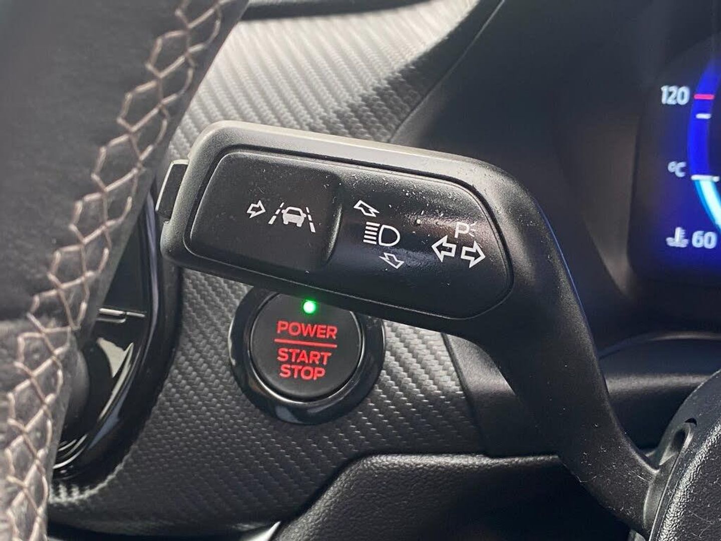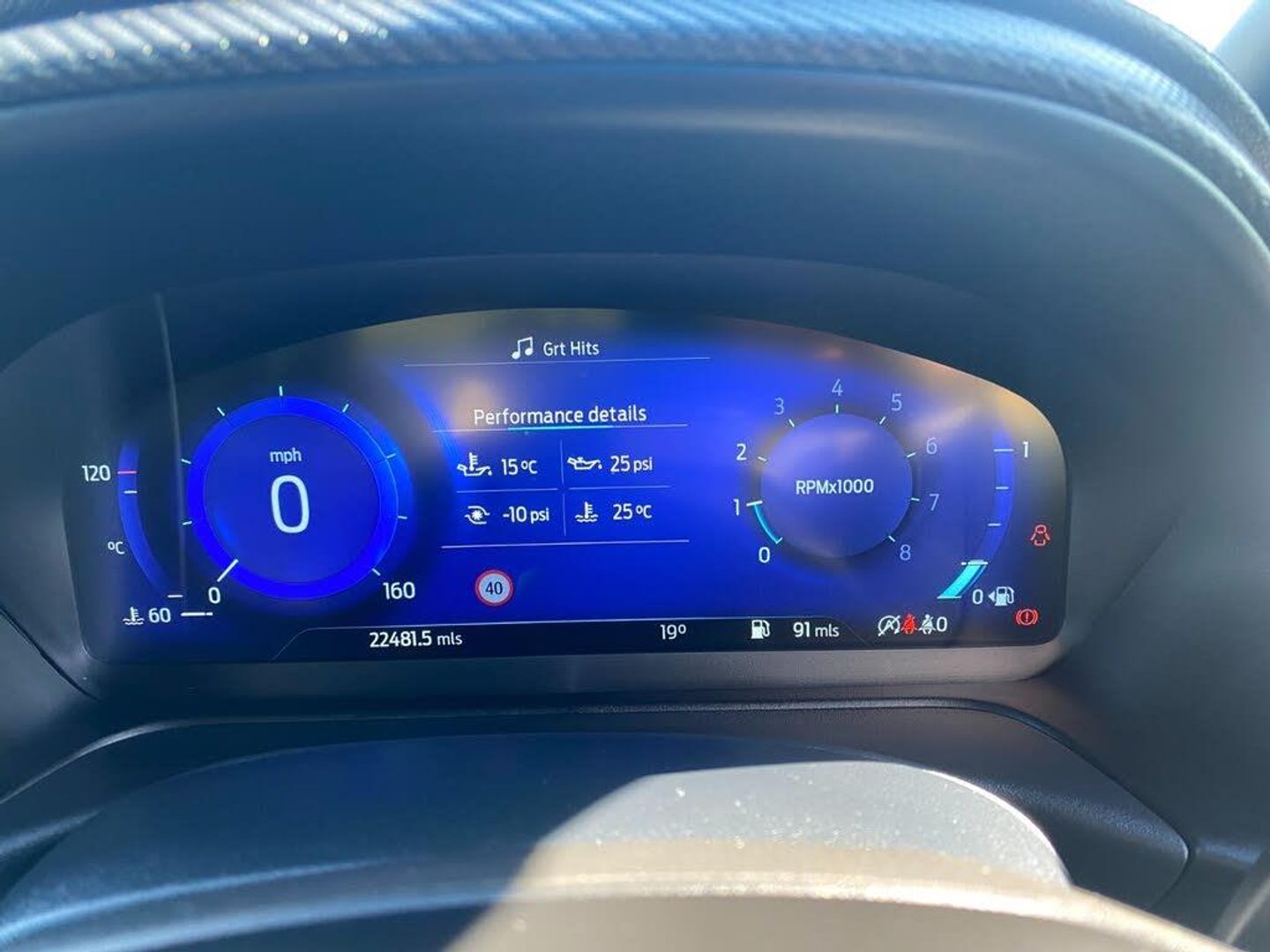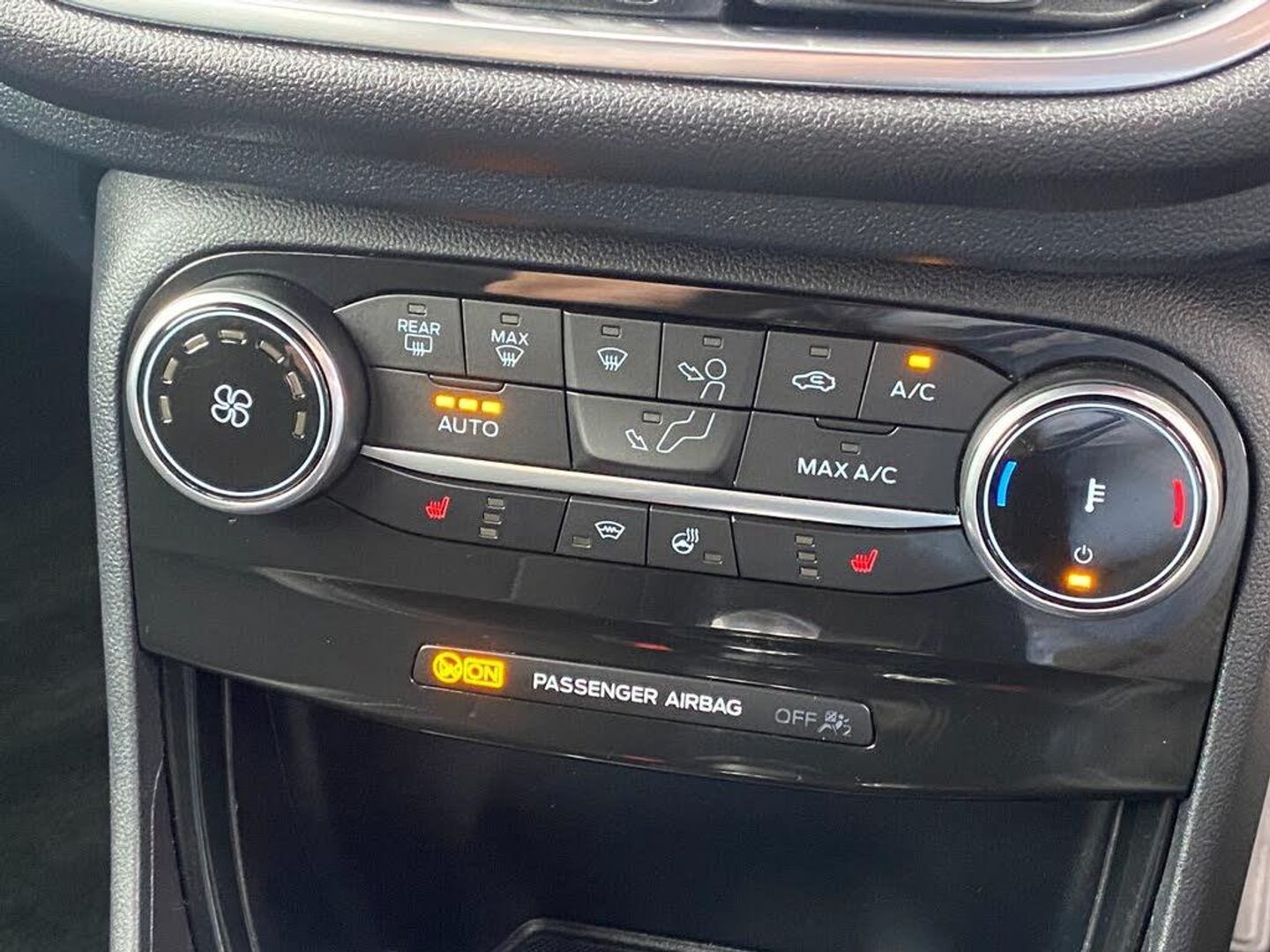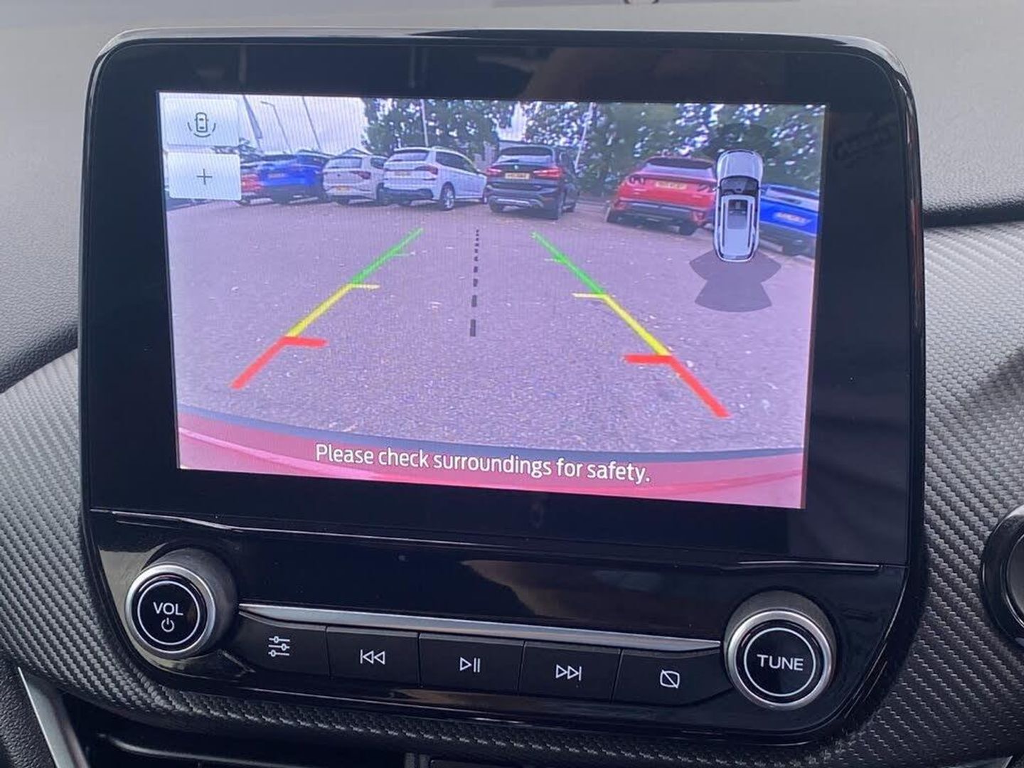 Cruise control with Intelligent speed assist, Driver impairment monitor, Emergency call service, Ford easy fuel, Front and rear parking sensors, Full digital 12.3" instrument cluster, Lane keeping aid with lane departure warning, Power assist steering, Selectable drive modes (normal, sport, eco, track), Speed sign recognition, Wireless charging pad, Engine sound enhancer, ST suspension, Automatic headlights with auto high beam, Automatic rain sensing wipers, Dual chrome exhaust, Fixed LED signature headlamps, Front fog lamps, LED daytime running lights, LED rear lamps, Power foldable heated door mirrors with puddle lamps and puma logo protection, Privacy glass to side rear windows and tailgate glass, Quickclear heated windscreen, Rear side wing doors, Rear wiper, ST scuff plates, Third brake light, Unique ST body styling kit including contrast black roof, large rear spoiler and wing mirrors, plus Ford Performance embossed splitter, 3 seat bench in 2nd row, Alloy sports pedals, Centre console with armrest and stowage, Electronic automatic temperature control (EATC), Ford megabox extended bootspace, Ford Performance sensico partial premium leather upholstery with metal grey stitching, Front and rear floor mats, Front and rear head restraints, Heated front seats, Heated steering wheel, Manual 6 way driver seat adjust with lumbar adjustment, Manual 6 way passenger seat with lumbar seat adjustment, Single front passenger seat, ST flat bottomed steering wheel with metal grey stitching, ST logo projection, Unique ST gear shift knob, B&O Premium Audio system + Ford SYNC 3 navigation pack - Puma, 3 rear seatbelts, Child safety lock, Electronic stability control (ESC) and hill start assist, Pre-collision assist with autonomous emergency braking, pedestrian/cyclist detection and post-collision braking, Red brake calipers, Tyre pressure monitoring system (TPMS), Keyless entry and power start button, Thatcham alarm, Carbon look interior deco spears, Tyre inflation kit