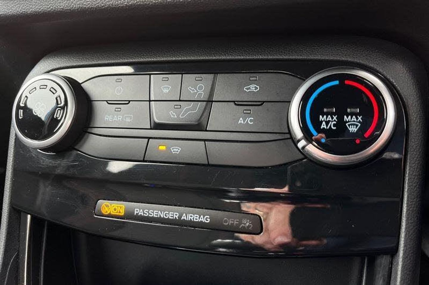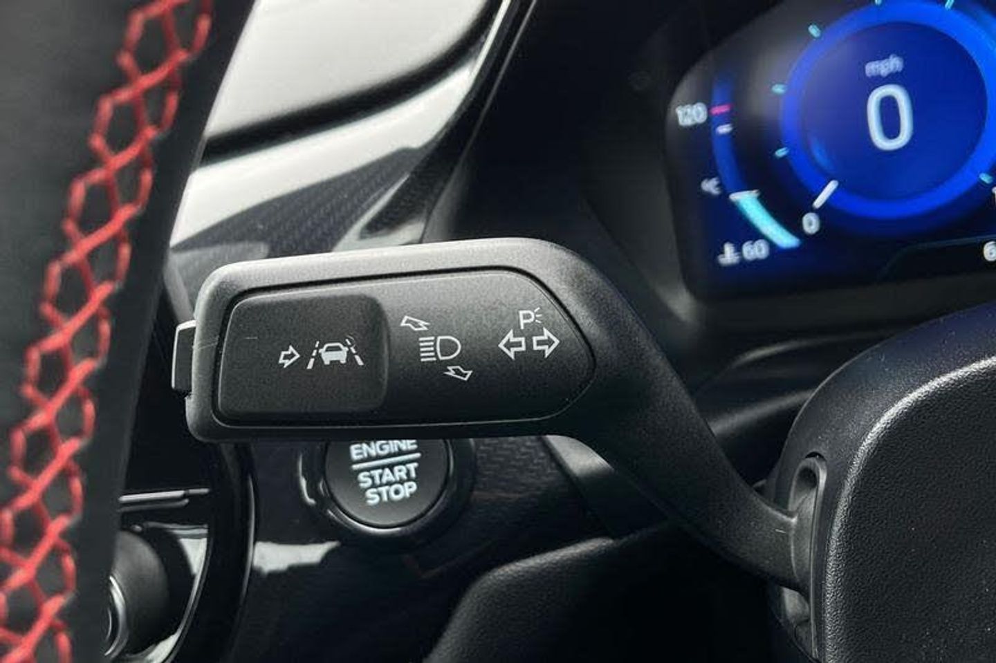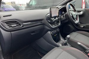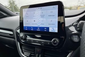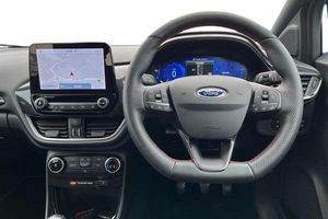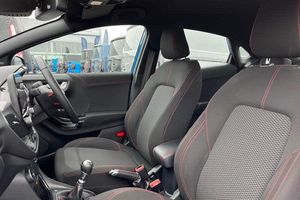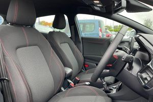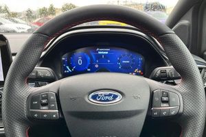Driver impairment monitor, Emergency call service, Ford easy fuel, Full digital 12.3 instrument cluster, Lane keeping aid with lane departure warning, Power assist steering, Power start button, Rear parking sensor, Selectable drive modes(Normal, sport, Eco, trail, slippery), Speed sign recognition, Automatic headlights with auto high beam, Automatic rain sensing wipers, LED rear lamps, Power foldable heated door mirrors with puddle lamps, Projector headlamps with LED day time running lights and front fog lamps, Quickclear heated windscreen, Rear side wing doors, Rear wiper, ST-Line body styling kit with unique grille, Third brake light, 3 seat bench in 2nd row, Centre console with armrest and stowage, Ford megabox extended bootspace, Front and rear head restraints, Front floor mats, Manual 2 way passenger seat adjustment, Manual 4 way driver seat adjust with lumbar adjustment, Single front passenger seat, ST- Line cloth trim with red stitching, ST-Line flat bottomed sensico leather steering wheel with leather handbrake and aluminium gear knob, 3 rear seatbelts, Child safety lock, Electronic stability control (ESC) and hill start assist, Pedestrian/cyclist detection & post-collision braking, Pre collision assist system, Tyre pressure monitoring system (TPMS)