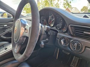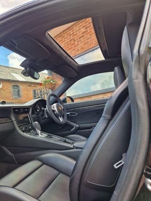 Specification: Exterior mirror adjustment 257 Manually retractable exterior mirrors, with automatic dimming and memory Left exterior mirror 264 Left exterior mirror glass, convex Right exterior mirror 285 Right exterior mirror glass, aspherical Park distance control 638 ParkAssist, front, rear and reversing camera Front mirror 340 Wheel rims painted in basic colour Vehicle tracking system 674 "Vehicle Tracking System" preparation Sound insulation measures for interior noises 170 Acoustic package RoW cruise control system 456 Automatic distance control (ACC) Molded headliner 594 Alcantara rooflining Main headlamps 602 LED headlights with dynamic cornering light Plus (PDLS Plus) Breakaway interior rearview mirror 276 Automatic anti-dazzle interior mirror Seat ventilation/massage seat 541 Active seat ventilation (incl. heated seats) Light assist systems 632 PDLS+ dynamic high beam Steering wheels 840 Sports steering wheel (for PDK with paddle) 1 / 3 Attribute Steering column systems 656 Description Steering column with electric reach/ height adjustment and Multi-function display/trip computer 631 memory Traffic sign recognition Model year period IY2 Model year period from week 45 to week 22 Engine cooling 153 Middle radiator Navigation system 672 -2008 PCM 2, 2009- PCM 3 Offroad navigation Wheels 435 911 Turbo S wheel, 20" central lock Tire inflation UX7 TPM valve, Black 022 Black-coloured instrument dials, instrument cluster 025 Black-coloured instrument dials, stopwatch 061 Version for Great Britain 070 Pedestrian protection 071 EU country version 092 Turbo S 099 Right-hand drive version 0JZ 0YZ 130 Control and indications in English lettering 140 Dynamic engine mounts (PADM) 200 95 Ah battery 211 Licence plate holder version 3 221 PTV Plus, el. controlled rear-diff. lock 247 250 PDK transmission (dual clutch) 268 Rain sensor 288 Headlamp washer 323 Sports seat Plus, left, electrical, 18-way 324 Sports seat Plus, right, electrical, 18-way 335 Automatic seat belt, 3-point, rear 352 Electronic damper control for PASM and PDCC 425 Rear window wiper 440 Antenna diversity 450 Ceramic brake (PCCB) 466 Rear fog light, right 470 Rear-axle steering 478 Central wheel lock 482 Tire Pressure Monitoring TPM, 433 MHz 492 Headlights for left-hand traffic 521 Tilt sensor 529 SportDesign exterior mirror 534 Theft security system, 433 MHz 536 -07 Alarm siren and tilt sensor 08- Alarm siren 538 Seat position control for comfort seat, right 555 Black seat belts 567 Windscreen tinted, upper part darker coloured 573 Air conditioner 585 2 / 3 Attribute Description 605 LED daytime driving lights 608 Garage door opener "Homelink" 433 MHz 610 DVD navigation, "Europe package" 621 12-V socket, passenger's side, footwell 625 "KESSY" Porsche Entry and Drive 630 Interior light package 640 Sport Chrono Plus package 651 Electric window opener 658 Servotronic 665 -2008 PCM 2, 2009- PCM 3 basic module incl. radio 666 -2008 PCM 2, 2009- PCM 3 telephone (GSM) 682 Top Premium sound system 685 Rear seat assembly 691 Digital radio reception DAB 785 7MM 810 foot mats 870 Universal multimedia interface 936 Seat covers, rear, leather 981 Leather equipment, without seat covers 983 Seat covers, front, leather 991 Steering wheel airbag module in leather SM4 UN1 XGB Decorative dashboard trim, carbon XHM Centre console trim, carbon XSC Porsche Crest embossed in headrest XYB Fuel tank cap in Aluminium Look seat heater 342 Seat heating, left/right seat Start-stop system/regenerative braking 642 Start/Stop function Carrier frequency for remote control 523 Immobiliser, 434 MHz Door and side trim panels XWC Door panel trim in carbon