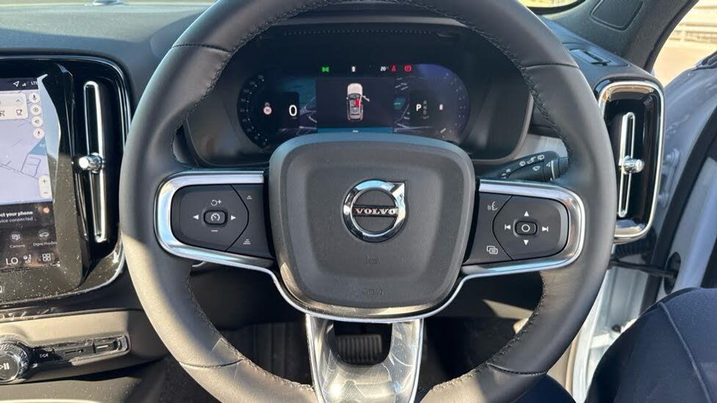 Sculpted gear shift, 12.3-inch driver display, 19″ 5-Y spoke matt graphite diamond cut, 5 seats, 7-speed Dual Clutch automatic, 9-inch centre display, Adaptive cruise control, Adaptive power steering, Adjustable passenger seat, Afterrun parking climate, Air purifier and remote cabin pre-cleaning, Alarm, Alcohol lock software (not available in the UK), Android Auto, Apple CarPlay, Auto-dimmed rear view mirrors, Automatic door locking, BLIS™ and Cross Traffic Alert, Bluetooth® connection, Body-coloured door handles with ground lighting, Charcoal headlining, Charcoal interior inserts, Chassis, Comfort front seats, Connect Suede textile/Microtech upholstery, Digital Audio Broadcasting (DAB+), Digital owners manual, Door mirror covers. high-gloss black, Double locking, Dual-stage airbags, Emergency brake light, First-aid kit, Fixed rear head restraints, Fog lamps, Foldable load floor with cargo divider and grocery bag, Folding bag hook, Front centre armrest, Front grille with high-gloss black insert, Glossy black tunnel console, Google Assistant. Google Maps and Google Play Store - included for 4 years, Heated front seats, Heated grill emblem, Heated rear seats, Heated steering wheel, Heated windscreen, Hidden tail pipes, High Performance audio system, High-gloss black side window trim, Hill Descent Control, Hill Start Assist, Humidity sensor, ISOFIX mounting points. rear seat, Illuminated vanity mirrors, Inflatable Curtain, Intelligent Speed Assist (ISA), Interior illumination. high level, Keyless entry with hands-free power tailgate, Knee airbag. driver side, LED headlights, Lane Keeping Aid and Lane Departure Warning, Lockable wheel bolts, Manual cushion extensions. driver and passenger, Mechanical release second seat row, Oncoming Lane Mitigation, Park assist camera. rear, Park assist. rear and front, Passenger airbag cut-off switch, Pilot Assist, Power 4-way lumbar support, Power child safety lock, Power driver seat with memory, Power outlet. load compartment, Power retractable door mirrors, Power tailgate, Protection net, Protective cap kit. Matt Tech Grey, Rain sensor, Rear Collision Warning, Rear centre armrest, Remote key, Road Sign Information, Roof rails. glossy black, Safety belts, Side impact protection, Slippery road alert, Steering wheel remote control, Tailored sport steering wheel. Charcoal, Tempered side windows, Temporary mobility kit, Textile interior cabin floor mats, Trailer lamp control, Two-zone climate system, Tyre pressure monitoring, Urban Grid aluminium decor, Volvo Cars App remote functions, Volvo tread plates. aluminium, Warning triangle, Whiplash injury protection, Wireless phone charging
