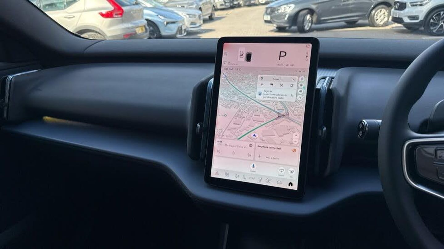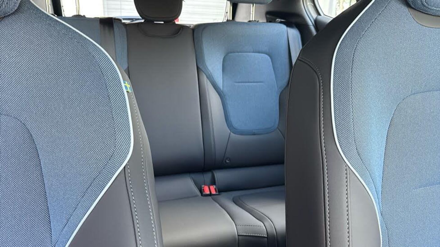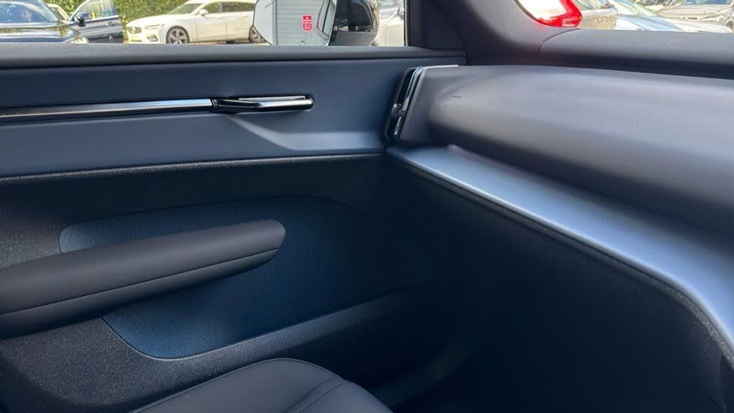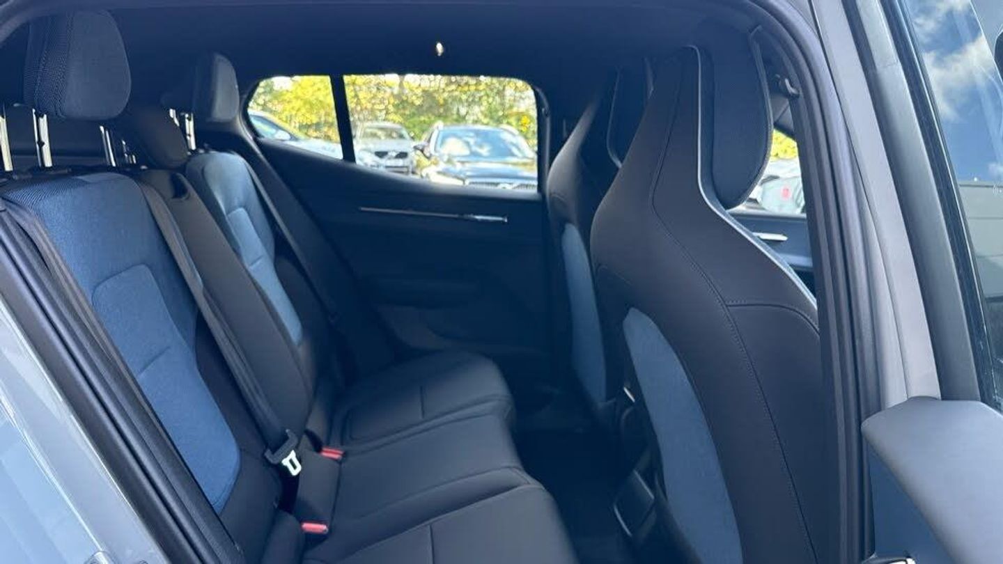 Rear Cross Traffic Alert with Autobrake, 11kw On-Board Charger (OBC), 12.3-inch centre display, 19″ 5-spoke glossy black diamond cut, 5 seats, 5G capability, Adaptive cruise control, Advanced sensing technology, Air quality measurement and remote cabin air pre-cleaning, Air quality system, Air vent decor. blue, Alarm, Alcohol lock software (not available in the UK), All-wheel Drive (AWD), Ambience themes, Auto-dimmed inner and door mirrors, Blind Spot Information System (BLIS), Charging station cable. 5m (22kW), Child safety lock, Collision avoidance and mitigation, Comfort chassis, Denim decor, Digital Audio Broadcasting (DAB+), Digital key plus, Direct occupant sensing, Door mirror covers. high-gloss black, Door mirrors with ground lighting, Door opening alert, Double lock, Driver airbag, Driver alert system, Dual-stage airbags. passenger, First-aid kit, Fixed lumbar support, Flexible load floor, Fog lamps. rear, Front Cross Traffic Alert, Front and rear USB-C ports, Front load compartment, Front storage, Google Assistant. Google Maps and Google Play Store - included for 4 years, Harman Kardon Premium Sound, Heat pump, Heated front seats, Heated steering wheel, Hill Descent Control, Hill Start Assist, Humidity sensor, ISOFIX child seat attachment, Inflatable Curtain, Intelligent Speed Assist (ISA), Interior illumination. high level, Intersection autobrake, Key tag, LED headlights, LED headlights with active high beam, LED illumination. load compartment, Lane Departure Warning, Lane Keeping Aid, Lane change assist, Large door pockets, Manually adjustable driver seat, Manually adjustable passenger seat, NFC smart card key, Oncoming Lane Mitigation, Oncoming Mitigation by Braking, One pedal drive, Over-the-air updates (OTA), Park assist camera. rear, Park assist. front and rear, Passenger airbag cut-off switch, Pedestrian and cyclist steering avoidance, Pilot Assist, Post impact braking, Power outlet. load compartment, Power tailgate, Rain sensor, Rear Collision Warning, Rear LED lights, Rear phone storage, Removable rear storage box, Road Sign Information, Roof spoiler. high-gloss black, Roof top in contrast colour. high-gloss black, Run-off Road Mitigation, Seat track position sensors. driver and passenger, Shift-by-wire single speed transmission, Side impact protection, Sliding cupholders and storage, Speed limiter, Summer tyres, Tailored sports steering wheel, Temporary mobility kit, Textile & Nordico upholstery, Textile interior cabin floor mats, Traffic Jam Assist, Two-zone climate system, Vanity mirrors, Volvo EX30 App, Warning triangle, Whiplash injury protection, Wireless Apple CarPlay, Wireless phone charging