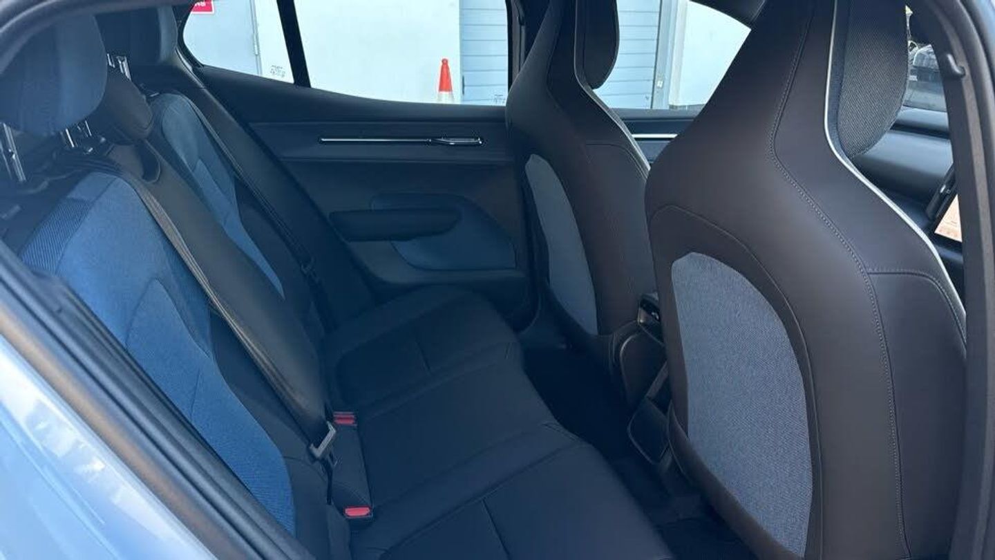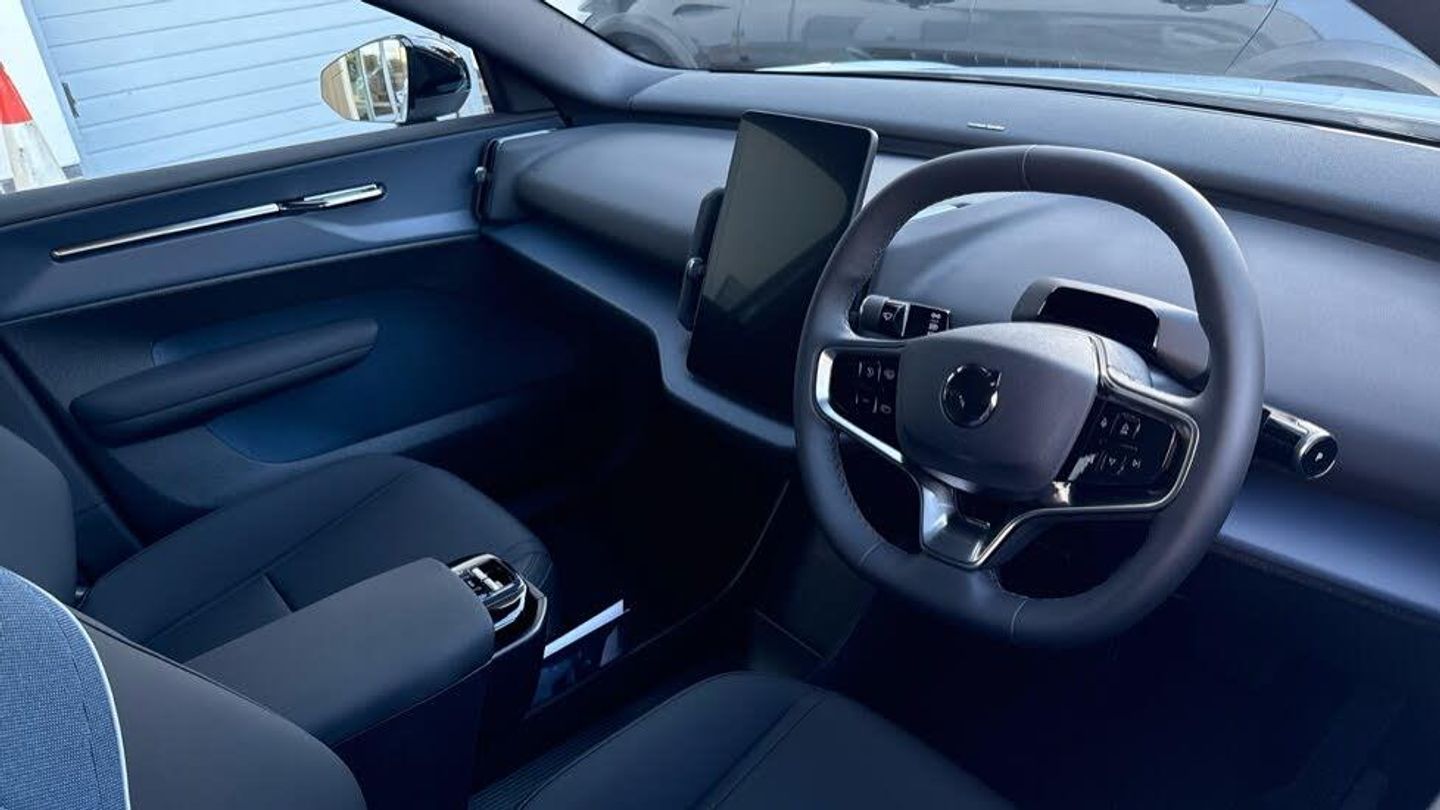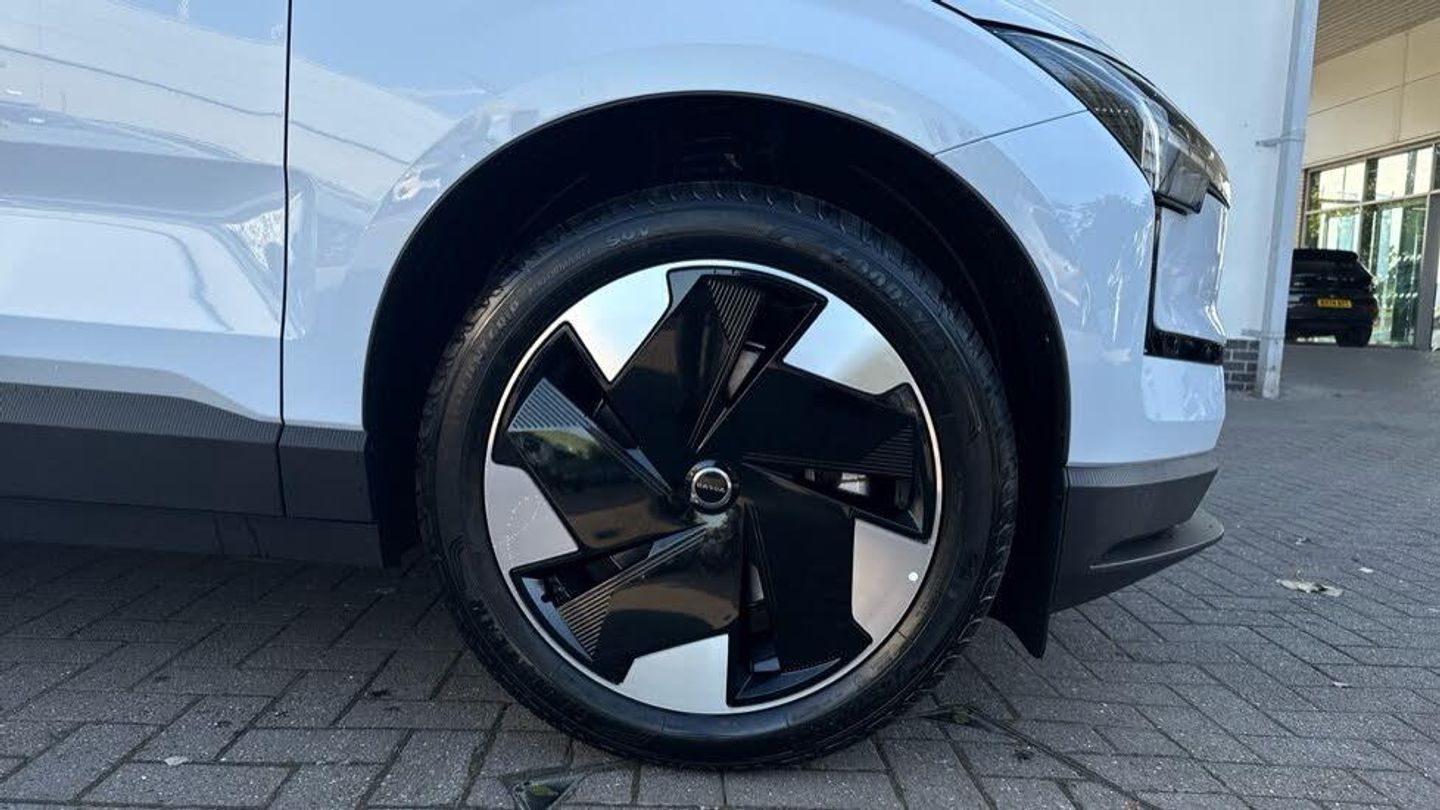Passenger airbag cut-off switch, 11kw On-Board Charger (OBC), 12.3-inch centre display, 19″ 5-spoke glossy black diamond cut, 5 seats, 5G capability, Adaptive cruise control, Advanced sensing technology, Air quality measurement and remote cabin air pre-cleaning, Air quality system, Air vent decor. blue, Alarm, Alcohol lock software (not available in the UK), Ambience themes, Auto-dimmed inner and door mirrors, Blind Spot Information System (BLIS), Charging station cable. 5m (22kW), Child safety lock, Collision avoidance and mitigation, Comfort chassis, Denim decor, Digital Audio Broadcasting (DAB+), Digital key plus, Direct occupant sensing, Door mirror covers. high-gloss black, Door mirrors with ground lighting, Door opening alert, Double lock, Driver airbag, Driver alert system, Dual-stage airbags. passenger, First-aid kit, Fixed lumbar support, Flexible load floor, Fog lamps. rear, Front Cross Traffic Alert, Front and rear USB-C ports, Front load compartment, Front storage, Google Assistant. Google Maps and Google Play Store - included for 4 years, Harman Kardon Premium Sound, Heat pump, Heated front seats, Heated steering wheel, Hill Descent Control, Hill Start Assist, Humidity sensor, ISOFIX child seat attachment, Inflatable Curtain, Intelligent Speed Assist (ISA), Interior illumination. high level, Intersection autobrake, Key tag, LED headlights, LED headlights with active high beam, LED illumination. load compartment, Lane Departure Warning, Lane Keeping Aid, Lane change assist, Large door pockets, Manually adjustable driver seat, Manually adjustable passenger seat, NFC smart card key, Oncoming Lane Mitigation, Oncoming Mitigation by Braking, One pedal drive, Over-the-air updates (OTA), Park assist camera. rear, Park assist. front and rear, Pedestrian and cyclist steering avoidance, Pilot Assist, Post impact braking, Power outlet. load compartment, Power tailgate, Rain sensor, Rear Collision Warning, Rear Cross Traffic Alert with Autobrake, Rear LED lights, Rear phone storage, Rear-wheel drive (RWD), Removable rear storage box, Road Sign Information, Roof spoiler. high-gloss black, Roof top in contrast colour. high-gloss black, Run-off Road Mitigation, Seat track position sensors. driver and passenger, Shift-by-wire single speed transmission, Side impact protection, Sliding cupholders and storage, Speed limiter, Summer tyres, Tailored sports steering wheel, Temporary mobility kit, Textile & Nordico upholstery, Textile interior cabin floor mats, Traffic Jam Assist, Two-zone climate system, Vanity mirrors, Volvo EX30 App, Warning triangle, Whiplash injury protection, Wireless Apple CarPlay, Wireless phone charging