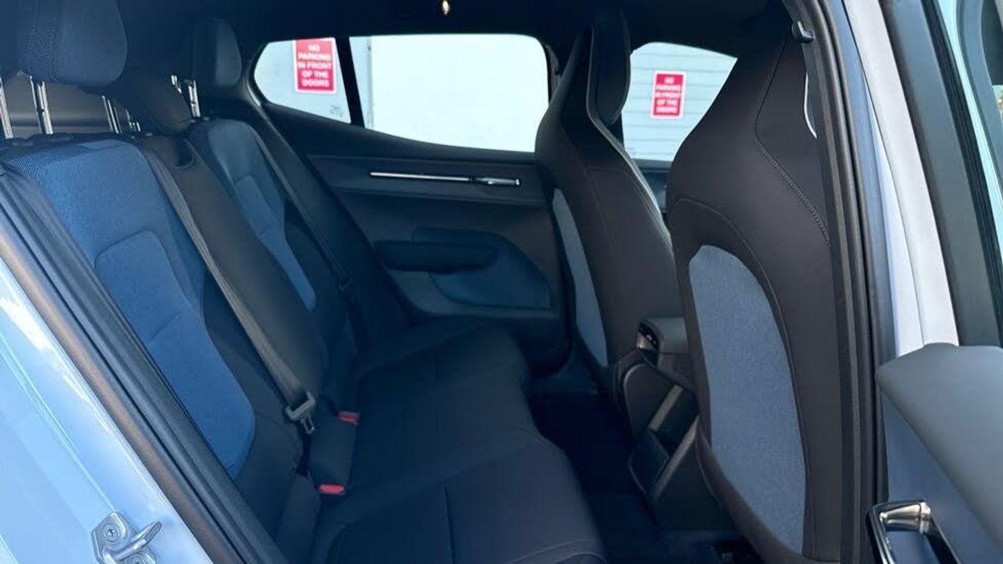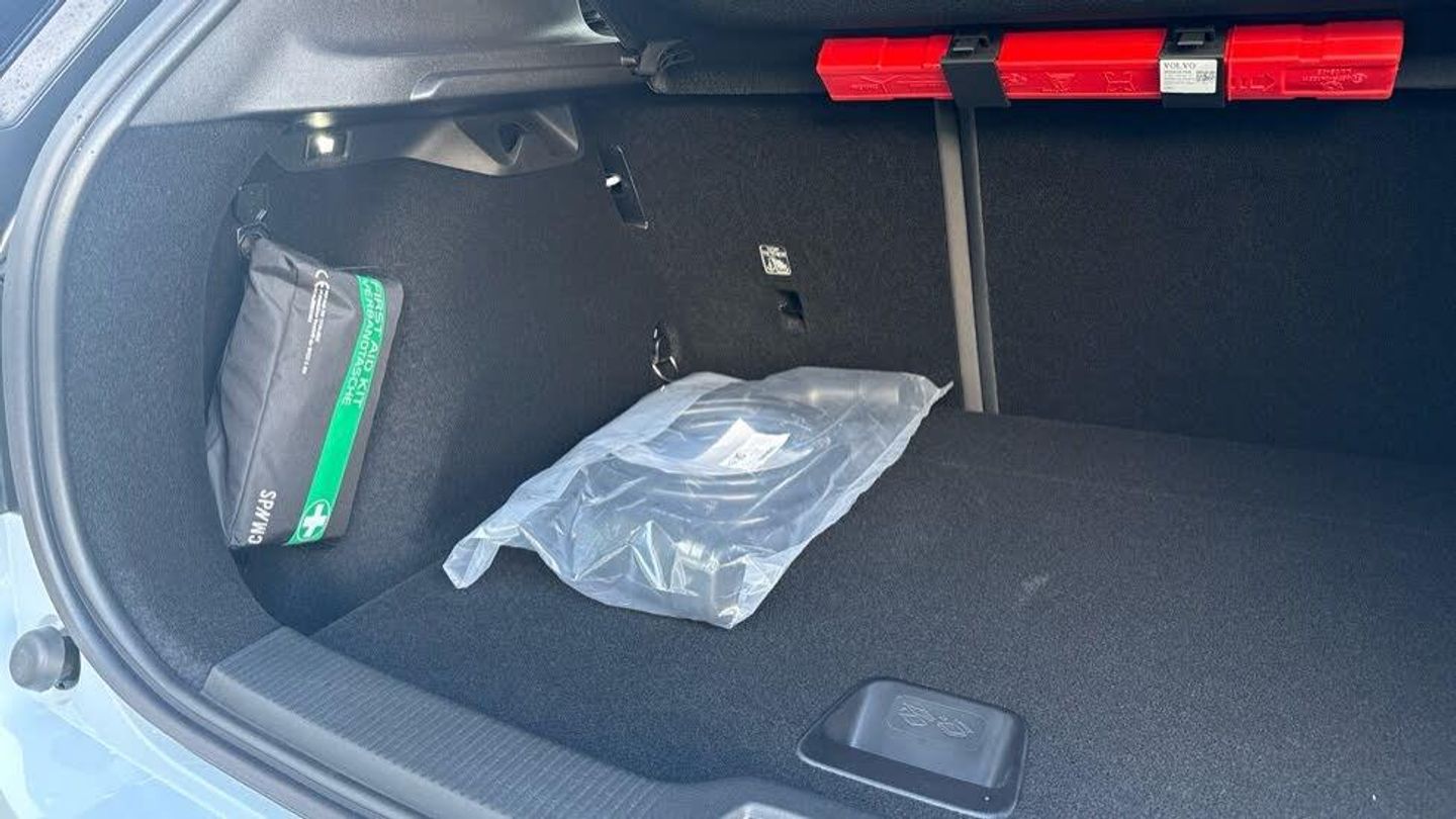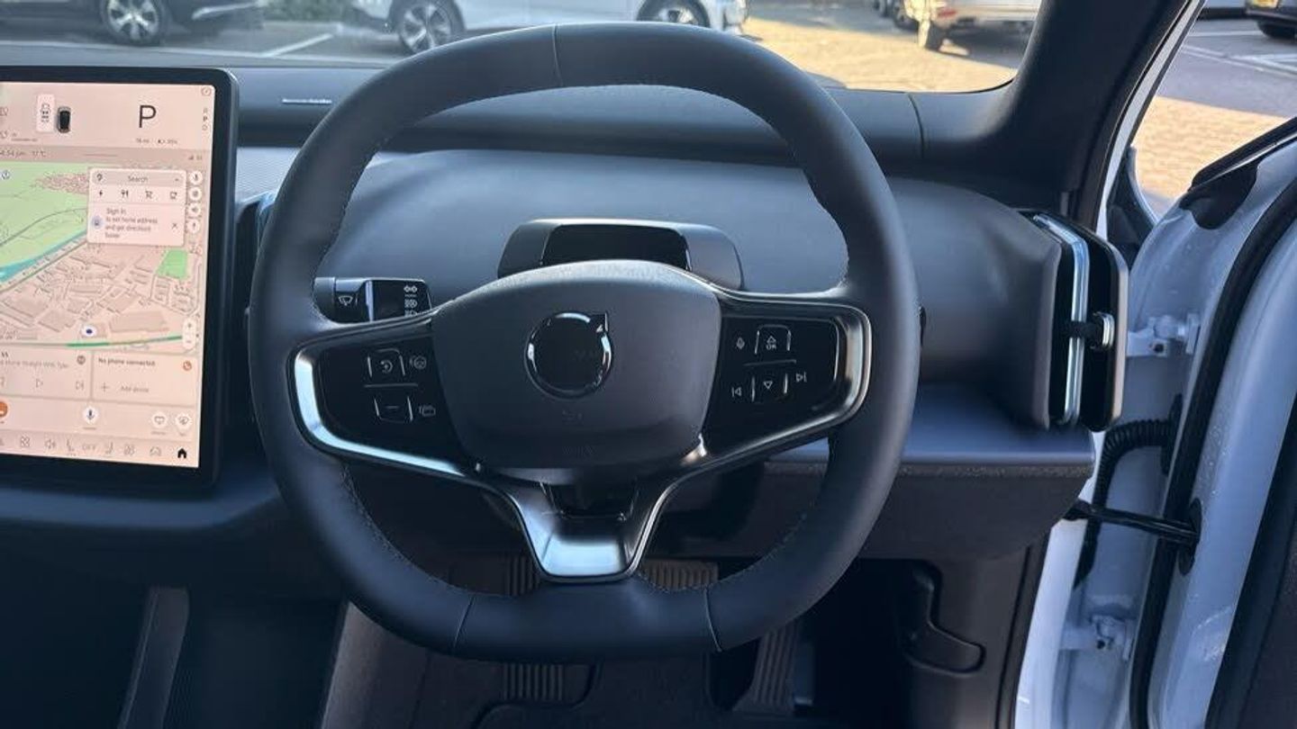Passenger airbag cut-off switch, 11kw On-Board Charger (OBC), 12.3-inch centre display, 19″ 5-spoke glossy black diamond cut, 5 seats, 5G capability, Adaptive cruise control, Advanced sensing technology, Air quality measurement and remote cabin air pre-cleaning, Air quality system, Air vent decor. blue, Alarm, Alcohol lock software (not available in the UK), Ambience themes, Auto-dimmed inner and door mirrors, Blind Spot Information System (BLIS), Charging station cable. 5m (22kW), Child safety lock, Collision avoidance and mitigation, Comfort chassis, Denim decor, Digital Audio Broadcasting (DAB+), Digital key plus, Direct occupant sensing, Door mirror covers. high-gloss black, Door mirrors with ground lighting, Door opening alert, Double lock, Driver airbag, Driver alert system, Dual-stage airbags. passenger, First-aid kit, Fixed lumbar support, Flexible load floor, Fog lamps. rear, Front Cross Traffic Alert, Front and rear USB-C ports, Front load compartment, Front storage, Google Assistant. Google Maps and Google Play Store - included for 4 years, Harman Kardon Premium Sound, Heat pump, Heated front seats, Heated steering wheel, Hill Descent Control, Hill Start Assist, Humidity sensor, ISOFIX child seat attachment, Inflatable Curtain, Intelligent Speed Assist (ISA), Interior illumination. high level, Intersection autobrake, Key tag, LED headlights, LED headlights with active high beam, LED illumination. load compartment, Lane Departure Warning, Lane Keeping Aid, Lane change assist, Large door pockets, Manually adjustable driver seat, Manually adjustable passenger seat, NFC smart card key, Oncoming Lane Mitigation, Oncoming Mitigation by Braking, One pedal drive, Over-the-air updates (OTA), Park assist camera. rear, Park assist. front and rear, Pedestrian and cyclist steering avoidance, Pilot Assist, Post impact braking, Power outlet. load compartment, Power tailgate, Rain sensor, Rear Collision Warning, Rear Cross Traffic Alert with Autobrake, Rear LED lights, Rear phone storage, Rear-wheel drive (RWD), Removable rear storage box, Road Sign Information, Roof spoiler. high-gloss black, Roof top in contrast colour. high-gloss black, Run-off Road Mitigation, Seat track position sensors. driver and passenger, Shift-by-wire single speed transmission, Side impact protection, Sliding cupholders and storage, Speed limiter, Summer tyres, Tailored sports steering wheel, Temporary mobility kit, Textile & Nordico upholstery, Textile interior cabin floor mats, Traffic Jam Assist, Two-zone climate system, Vanity mirrors, Volvo EX30 App, Warning triangle, Whiplash injury protection, Wireless Apple CarPlay, Wireless phone charging