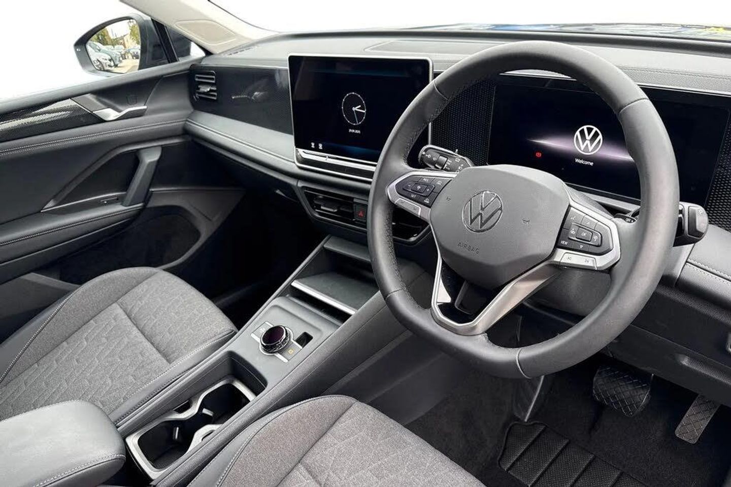 Metallic - Dolphin grey,Heat insulating glass in side and rear windows,Heat insulating windshield,Heated rear window,Rain sensor windscreen wipers,Rear wiper,Front wheel drive,Body coloured bumpers and air intake with chrome trim,Body coloured door handles,Illuminated door handle recesses,Rear side wing doors,Automatic headlight control system,Coming/leaving home lighting function,High level 3rd brake light,Illuminated lightline between headlamps,Rear fog light on one side,reversing light on both sides,Electronic parking brake with auto hold,Front disc brakes,Hill start assist,Rear disc brakes,Adaptive cruise control (ACC),Advanced driver attention and drowsiness monitor,Dynamic road sign display,Front Assist - Autonomous emergency braking with pedestrian and cyclist monitoring,Lane change system,Side assist,Rear traffic alert and Exit warning system,Lane keeping system Lane Assist,Oncoming vehicle braking when turning including swerve support,Park assistance plus with front and rear parking sensors,Power assisted steering with speed sensitive,Auto dimming interior rear view mirror,Body-coloured exterior mirror housings,Puddle lights and reverse activated passengers door mirror,3 point seat belt for centre rear seats,3 Point seat belts in front with pretensioners,3 point seatbelts in outer rear with ECE label,Driver and front passenger airbag with front passenger airbag deactivation,Front and rear curtain airbags,Front and rear side airbags,Front centre airbag,Manual child proof rear door locks,Two tone horn,Warning triangle,Carpet mats,front and rear,Air care climatronic 3 zone air conditioning system with rear air conditioning control panel,12V outlet in center console rear and in luggage compartment,12V socket in centre console,Ceramique headlining,Door and side trim panel in foam film and woven fabric,Front centre armrest,Variable luggage compartment floor,Sun visors with illuminated vanity mirrors,Bluetooth mobile phone interface,E-Sim card for online connectivity,Wireless App-Connect,Digital radio reception (DAB),Diversity antenna for FM reception,Car2X technology,Start/stop system with regenerative braking,Digital Cockpit Pro - 10.25" high resolution dash display screen with customisable menus and information,eCall emergency call service,Warning signal and warning light for front and rear seatbelts not fastened,Soul instrument panel,3 bench rear seats in 2nd row,ISOFIX anchors for child seats on outer rear seats and front passenger seat compatible with i-Size,Mechanical rear seat release,Power adjustable lumbar support in front,Rear bench seat,split folding,longitudinally movable and folding with load-through hatch and centre armrest,Safety optimised front head restraints,Single front passenger seat,Three rear head restraints,Comfort package with park assist plus and Safelock - Tiguan,Design package - Tiguan