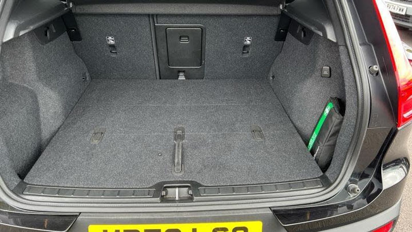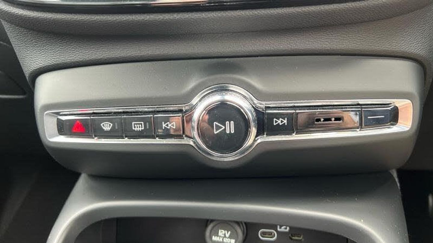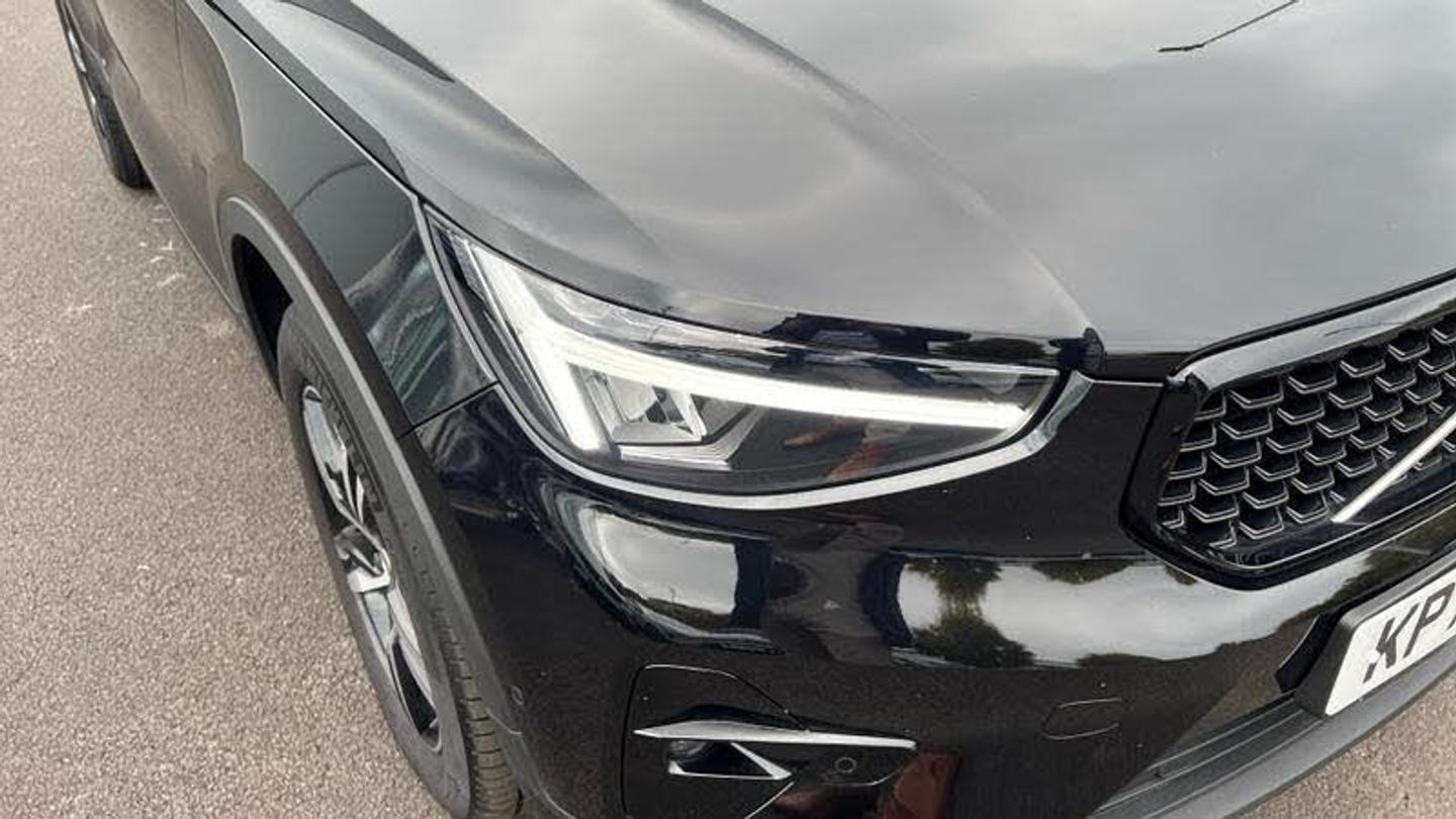 Tinted rear windows, Crystal gear shift by Orrefors, Blond headlining, Door mirror covers. colour coordinated, Driftwood decor, Leather upholstery, Tailored steering wheel. Charcoal, 7-speed Dual Clutch automatic, Two-zone climate system, Afterrun parking climate, Dual-stage airbags, Knee airbag. driver side, Charcoal interior inserts, Road Sign Information, Front grille with high-gloss black insert, Heated grill emblem, LED headlights, Trailer lamp control, Fog lamps, 12.3-inch driver display, Google Assistant. Google Maps and Google Play Store - included for 4 years, Volvo Cars App remote functions, Digital Audio Broadcasting (DAB+), High Performance audio system, Power retractable door mirrors, Wireless phone charging, Automatic door locking, Remote key, Small storage. front, Double locking, Tinted rear windows, Alarm, Power child safety lock, Power tailgate, Keyless entry with hands-free power tailgate, Air purifier and remote cabin pre-cleaning, Folding bag hook, Speech function, Digital owners manual, Power driver seat with memory, Adjustable passenger seat, Heated rear seats, Fixed rear head restraints, 5 seats, Mechanical release second seat row, Manual cushion extensions. driver and passenger, Power 4-way lumbar support, Sport textile interior cabin floor mats. Charcoal, Protection net, Foldable load floor with cargo divider and grocery bag, Rear centre armrest, Illuminated vanity mirrors, Interior illumination. high level, Power outlet. load compartment, First-aid kit, Auto-dimmed rear view mirrors, Front centre armrest, Glossy black tunnel console, Chassis, Tyre pressure monitoring, Slippery road alert, Emergency brake light, Adaptive power steering, 18? 5-double spoke glossy black diamond cut, Temporary mobility kit, Lockable wheel bolts, Hidden tail pipes, Body-coloured door handles with ground lighting, High-gloss black side window trim, Roof rails. glossy black, Volvo tread plates. aluminium, Tempered side and rear windows, Rain sensor, Park assist. front. rear and sides, Ticket holder, 360 camera, Protective cap kit. Matt Tech Grey, Apple CarPlay, Comfort front seats, 9-inch centre display, Whiplash injury protection, Inflatable Curtain, Side impact protection, ISOFIX mounting points. rear seat, Steering wheel remote control, Humidity sensor, Bluetooth connection, Safety belts, [Drivers Assistance]Cruise control, [Exterior]Heated windscreen, [Interior]Heated front seats, Heated steering wheel, [Performance]Speed limiter, [Safety and Security]Passenger airbag cut-off switch, Lane Keeping Aid, Hill Start Assist, Oncoming Lane Mitigation, Hill Descent Control, Warning triangle