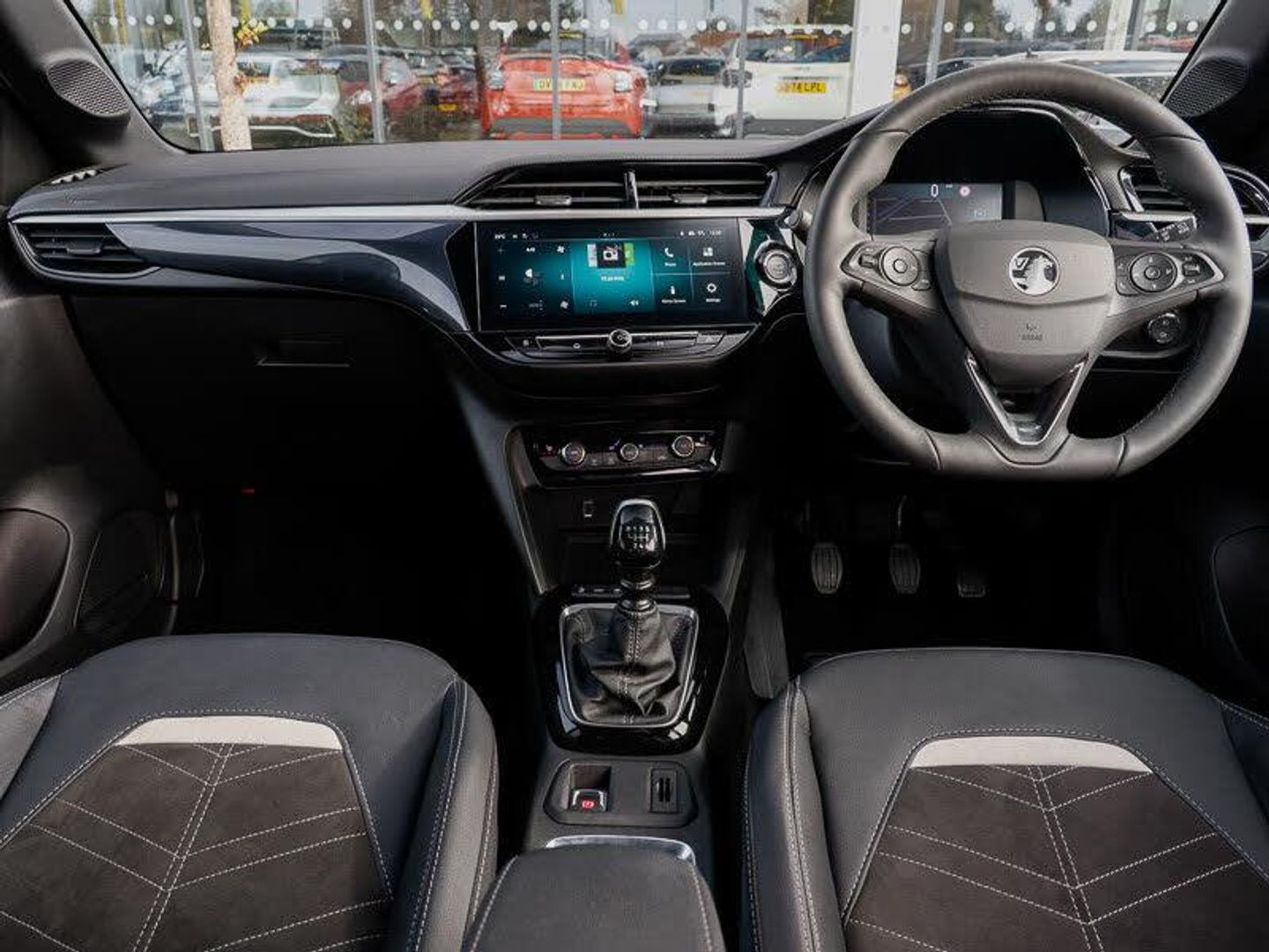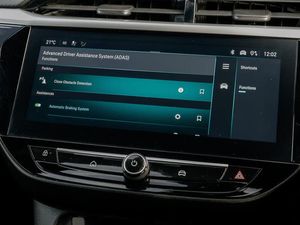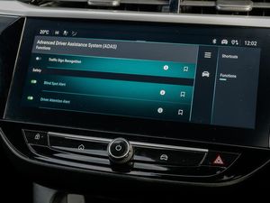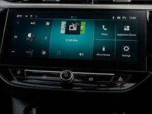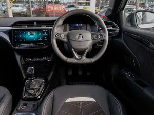 Wireless charger, Wireless Apple CarPlay/Android Auto, Voice recognition, Vauxhall connect box, Start/stop system, Sport drive mode selector, Speed sign recognition, Speed sensitive power steering, Smartphone projection, Side blind spot alert, Service indicator, RDS with traffic programme, POI (search), Multi function trip computer, MAP OTA updates, Lights on audible warning, Lane keep assist, Lane departure warning, Instrumentation - Speedometer, rev counter, low fuel gauge warning light + water temperature gauge warning light, Front and rear parking sensors, Front camera system, European coverage, Enhanced traffic sign recognition, Engine oil life indicator, E-call, Driver drowsiness alert system, Cruise control with intelligent speed limiter, Central facia display with digital clock, outside air temperature and audio information, Breakdown call (b-call), Auto tele unit 3S vehicle communication system, 7 inch digital instrument cluster display, 2D/3D street level mapping, 180 degree panoramic rear view camera, Under body shield for aero, Petrol Particulate Filter, Electronic returnless fuel system, USB type C port, Steering wheel audio, phone and cruise controls, Six speakers, Rear USB port, Multimedia Navi with 10-inch touchscreen, DAB Digital radio, Bluetooth A2DP audio streaming, AM/FM stereo radio, Windscreen and side window demist vents, Ultimate badge and sill plate, Two speed windscreen wipers with variable intermittent wipe, Sports front and rear body styling for upper and lower bumper design, Solar heat absorbing windscreen and windows, Shark fin aerial, Rear wiper, Rear side wing doors, Rear reversing lights, Rear fog lamp, Rain sensitive windscreen wipers, LED tail lamp, LED front fog lights, LED daytime running lights, Intelli-Lux Matrix LED Headlights, High beam assist, High gloss black finish B pillar, Headlamps for left side traffic, Hazard warning lights, Glazed tailgate and heated rear window with wash/wipe facility, Electrochromic automatic anti-dazzle rear view mirror, Electrically operated front and rear windows with safety auto reverse and one touch up/down facility, Electrically folding door mirrors, Electrically adjustable and heated door mirrors, Dark tinted rear side windows + tailgate window, Corsa lettering in tailgate, Bonnet/headlight/wiper structure, Body colour front and rear bumpers, Body colour door handles, Black lower side window mouldings, Black Griffin logo and vizor frame, Black door mirror housings, Black DLO, Automatic headlight control system, Automatic headlamp levelling, 3rd brake light, Two litre open door pockets, Single front passenger seat, Single dome lamp with dual front reading lamps, Right hand drive (RHD), Rear headrests, Rear cupholder, Reach and rake adjustable steering column, Polyurethane gear knob/lever, LED boot light, LED ambient lighting, Internal chrome door handles, Illuminated glovebox with lid, Interior courtesy light, Height adjustable head restraints, Front headrests, Front cupholder, Four adjustable facia vents, Electronic climate control (ECC), Driver's seat lumbar support, Driver/passenger sunvisors with vanity mirrors + covers, Comfort front seats, Cabin particulate filter - removes dust, airborne particles and pollen, Black headliner, Alcantara leather upholstery, 60/40 split folding rear seat, 6 way manual adjustable driver seat with massage function height up/down, reach fore/aft, backrest upright/recline, 6 way manual adjustable co-driver seat height up/down, reach fore/aft, backrest upright/recline, 4 speed fan with illuminated controls, 3 spoke flat bottomed leather effect steering wheel with satin chrome effect bezel, 3 bench rear seats in 2nd row, 12V power sockets, Winter pack - Corsa