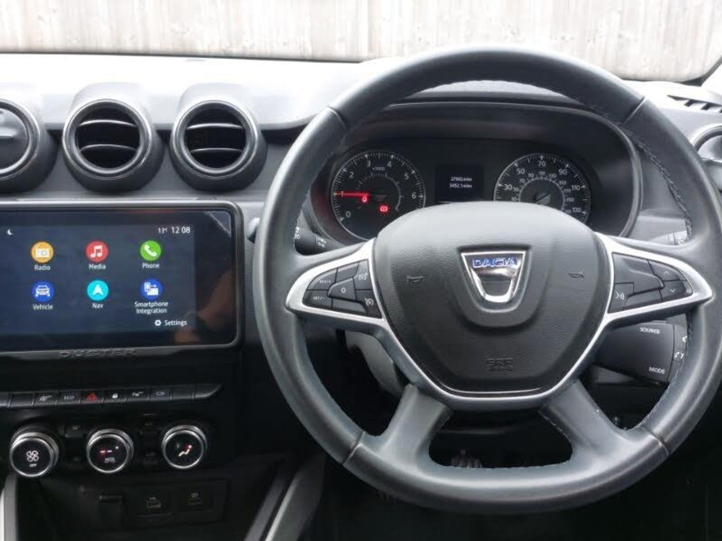 4x4 monitor with altimeter, 8" Media Navigation with wireless smartphone replication, Compass functional at 0km/h, Cruise control and speed limiter, eCall emergency system, Eco mode, Multi view camera, On board computer, odometer, trip computer, average fuel consumption, average speed, service indicator, outside temperature gauge, Rear parking sensors and reverse camera, Stop/start system, Dacia plug and radio/MP3/USB/bluetooth/DAB/steering wheel control, Acoustic windshield, 17" Alloy wheels, Dusk sensor, Electric adjustable/heated door mirrors, Electric front windows, Electric rear windows, Front fog lights, Rain sensor, Rear spoiler, Automatic air conditioning, Heated seats, Soft feel leather steering wheel, ASR traction control with Electronic stability control, Hill start assist