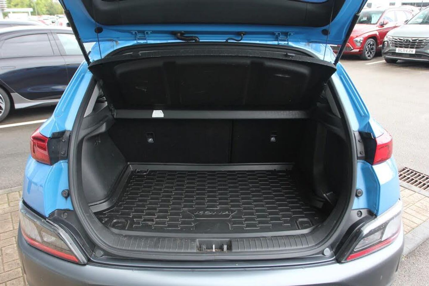 10.25" touchscreen centre console display satellite navigation with live services and mapcare,Bluetooth connectivity,Cruise control + speed limiter,Digital clock,Driver attention warning,Driver supervision instrument cluster with 10.25" LCD display,eCall emergency call system,Forward collision avoidance assist with pedestrian detection,Front parking sensor,Intelligent speed limit warning,Lane follow assist,Lane keep assist,Leading vehicle departure alert (LVDA),Parking system with rear camera and guidance system,PAS,Phone connection with apple carPlay and android auto,Rear parking sensor,Roadside assistance,Windscreen washer fluid sensor and warning indicator,Wireless phone charging pad,Front and rear USB ports,Krell premium audio system with 8 speakers including external amplifier and subwoofer,RDS and Digital DAB,Steering wheel mounted audio/phone controls,Auto dimming rear view mirror,Automatic headlights with dusk sensor,Automatic windscreen wipers with rain sensor,Body colour door mirrors and handles,Door mirror integrated indicators,Electric front/rear windows with drivers one touch/anti-trap,Electrically adjustable and heated door mirrors,Front fog lights,Halogen headlights,LED daytime running lights,LED rear lights,Painted anthracite body garnish,Positioning Lights - LED,Power folding door mirrors,Privacy glass - Rear windows and tailgate,Rear roof spoiler with integrated LED brake light,Rear skid plate - silver,Rear wiper,Roof rails,Solar glass with front door glass and windscreen shade band,Windscreen auto defog function,12V power outlet in front console,60/40 split folding rear seat,Adjustable head restraints,Air conditioning climate control,Ambient lighting,Centre interior light,Cloth upholstery,Door scuff plate,Driver's seat electric lumbar support,Driver's seat height adjustment,Driver/passenger front seatback pockets,Driver/passenger sunvisors and illuminated vanity mirrors,Front interior light,Front passenger seat manual adjustments,Heated front seats,Heated steering wheel,Height/reach adjustable steering column,Isofix rear child seat fastenings,Leather wrapped steering wheel and gear knob,Luggage compartment lighting,Luggage hooks,Luggage net,Metal paint effect interior door handles,Parcel shelf,Rear centre console with air vents,Sunglasses holder,Vertical adjustment rear head restraints,Trailer wiring package - Kona,Airbags - front, front side and curtain airbags,Anti-lock brake system (ABS),Childproof rear door locks,Downhill brake control,EBD + Brake Assist,Electric parking brake,Electronic stability control,Fasten seatbelt reminder,Fixed 3 point for second row centre passenger seatbelt,Front seatbelt pretensioners,Height adjustable front seatbelts,Hill start assist control (HAC),Passenger airbag deactivate switch,Rear seat alert,Traction control,Tyre pressure monitoring system,Alarm/immobiliser,Deadlocks,Folding key,Locking wheel nuts,Remote central locking,Smart key with keyless entry and engine start/stop button,18" Alloy wheels