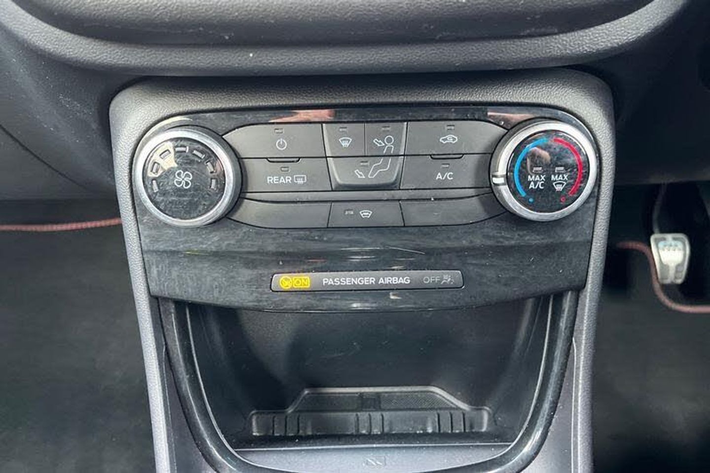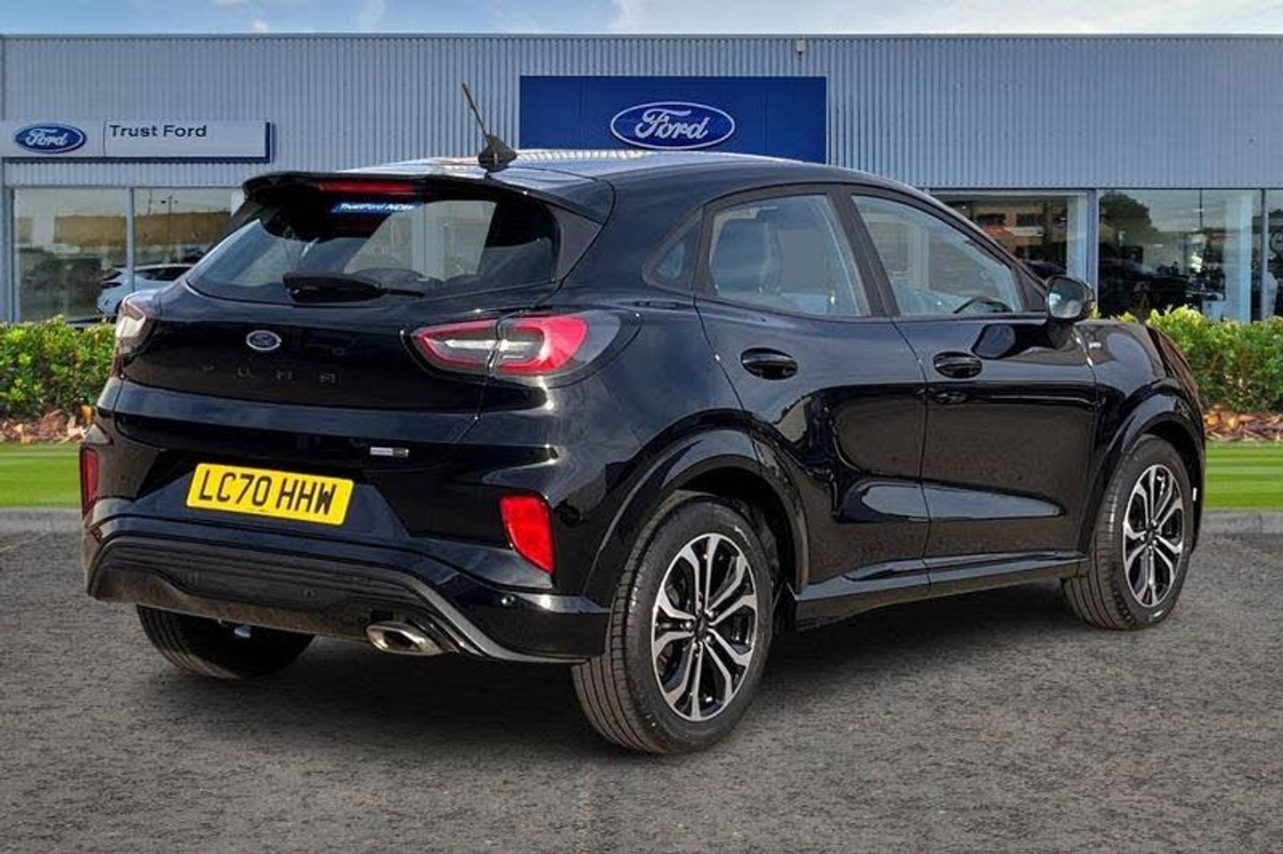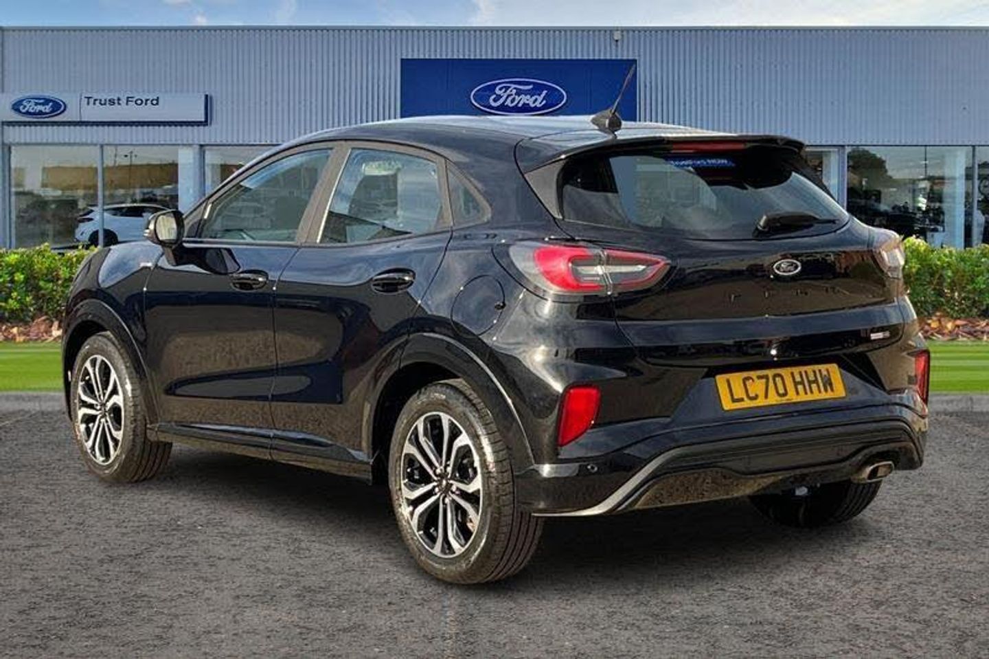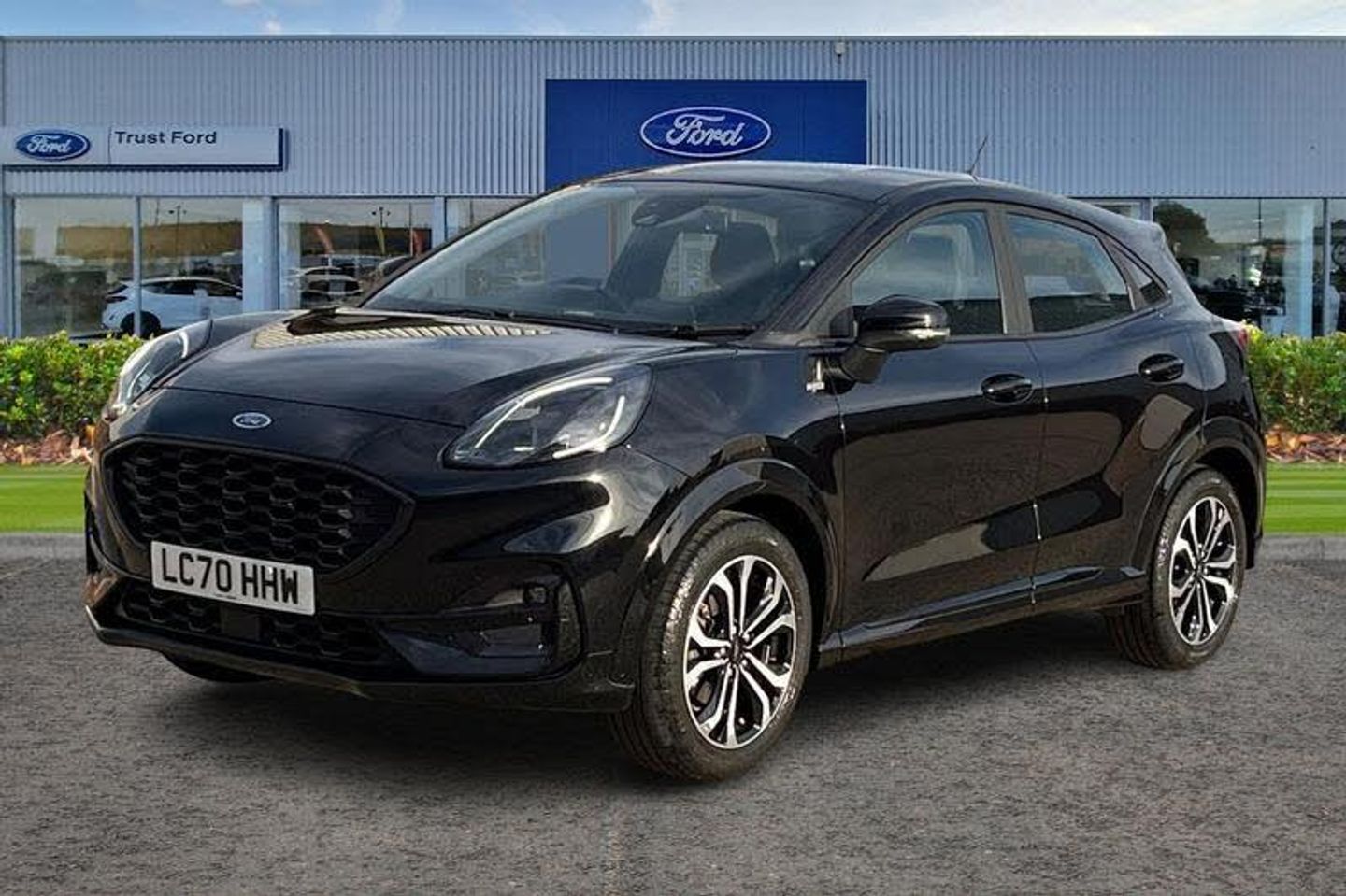 Driver impairment monitor, Emergency call service, Ford easy fuel, Full digital 12.3 instrument cluster, Lane keeping aid with lane departure warning, Power assist steering, Power start button, Rear parking sensor, Selectable drive modes(Normal, sport, Eco, trail, slippery), Speed sign recognition, Automatic headlights with auto high beam, Automatic rain sensing wipers, LED rear lamps, Power foldable heated door mirrors with puddle lamps, Projector headlamps with LED day time running lights and front fog lamps, Quickclear heated windscreen, Rear side wing doors, Rear wiper, ST-Line body styling kit with unique grille, Third brake light, 3 seat bench in 2nd row, Centre console with armrest and stowage, Ford megabox extended bootspace, Front and rear head restraints, Front floor mats, Manual 2 way passenger seat adjustment, Manual 4 way driver seat adjust with lumbar adjustment, Single front passenger seat, ST- Line cloth trim with red stitching, ST-Line flat bottomed sensico leather steering wheel with leather handbrake and aluminium gear knob, 3 rear seatbelts, Child safety lock, Electronic stability control (ESC) and hill start assist, Pedestrian/cyclist detection & post-collision braking, Pre collision assist system, Tyre pressure monitoring system (TPMS)