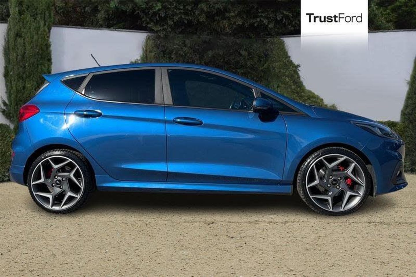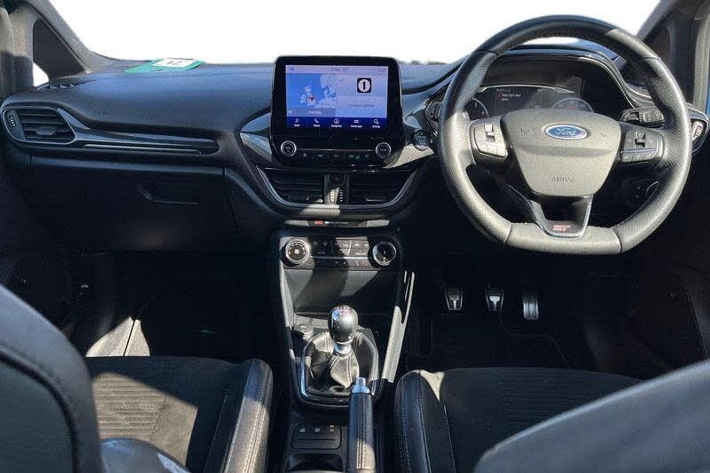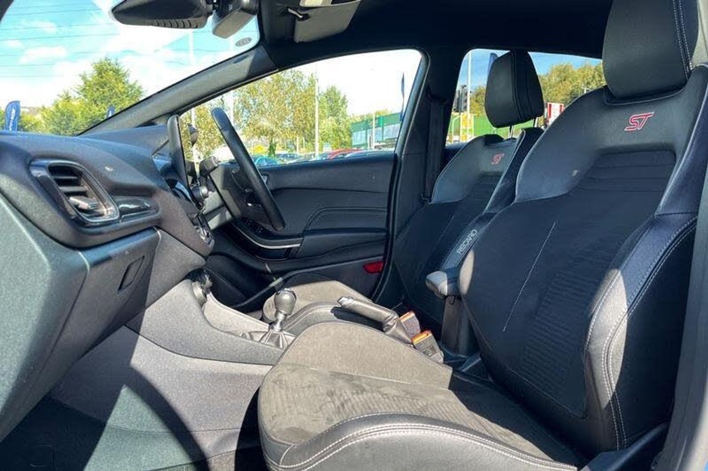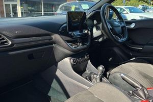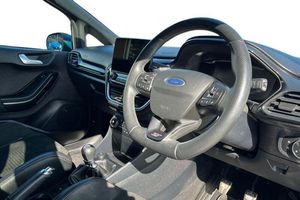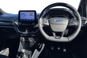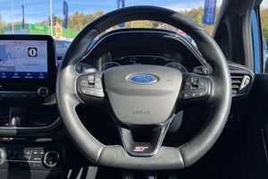 Bluetooth system, Cruise control, Drive mode selector, Electric power steering, Ford easy fuel, Trip computer, Auto dimming rear view mirror, Body colour bumpers, Body colour door handles, Body colour electric adjustable heated door mirrors with integral indicators, Body colour large rear spoiler, Chrome lower window surround, Cornering front fog lights, Electric front windows/one touch facility, Electric rear windows, LED Night signature to rear lights, LED rear lights, Power foldable door mirrors with puddle lights, Privacy glass, Quickclear heated windscreen, Rain sensing wipers and auto dimming rear view mirror, Rear privacy glass, Rear wiper, Rugged body styling kit with active front wing badges, Tinted glass, Unique ST-Line upper grille & full bodystyling kit with ST-Line wing badges, 12V Accessory socket in centre console, 3 spoke flat bottomed leather steering wheel with red stitching, 60/40 split folding rear seat, Adjustable head restraints, Ambient lighting, Black headlining, Boot carpet, Centre console with armrest and illuminated cupholders, Chrome inner door handles, Drivers and Passenger lumbar support, EATC - Electronic Auto Temperature control, Floor mats with grey stitching, Footwell illumination, Front map reading lights, Front seat and rear pockets, Front/rear floor mats, Illuminated glovebox, Leather gear knob, Leather trimmed handbrake handle, Load area light, Overhead console with sunglasses holder, Pollen filter, Rake/reach adjustable steering wheel, Rear centre head restraint, Recaro part leather front sports seats, Sports pedals, 3 point seatbelts on all rear seats, ABS+EBA, Curtain airbags, Driver and passenger airbags, Drivers knee airbag, Electronic stability control with hill start assist, Front passenger airbag deactivation, Front side airbags, Seatbelt warning, Tyre pressure monitoring system