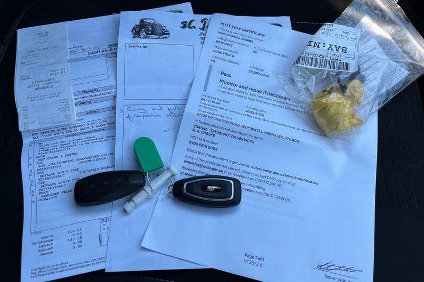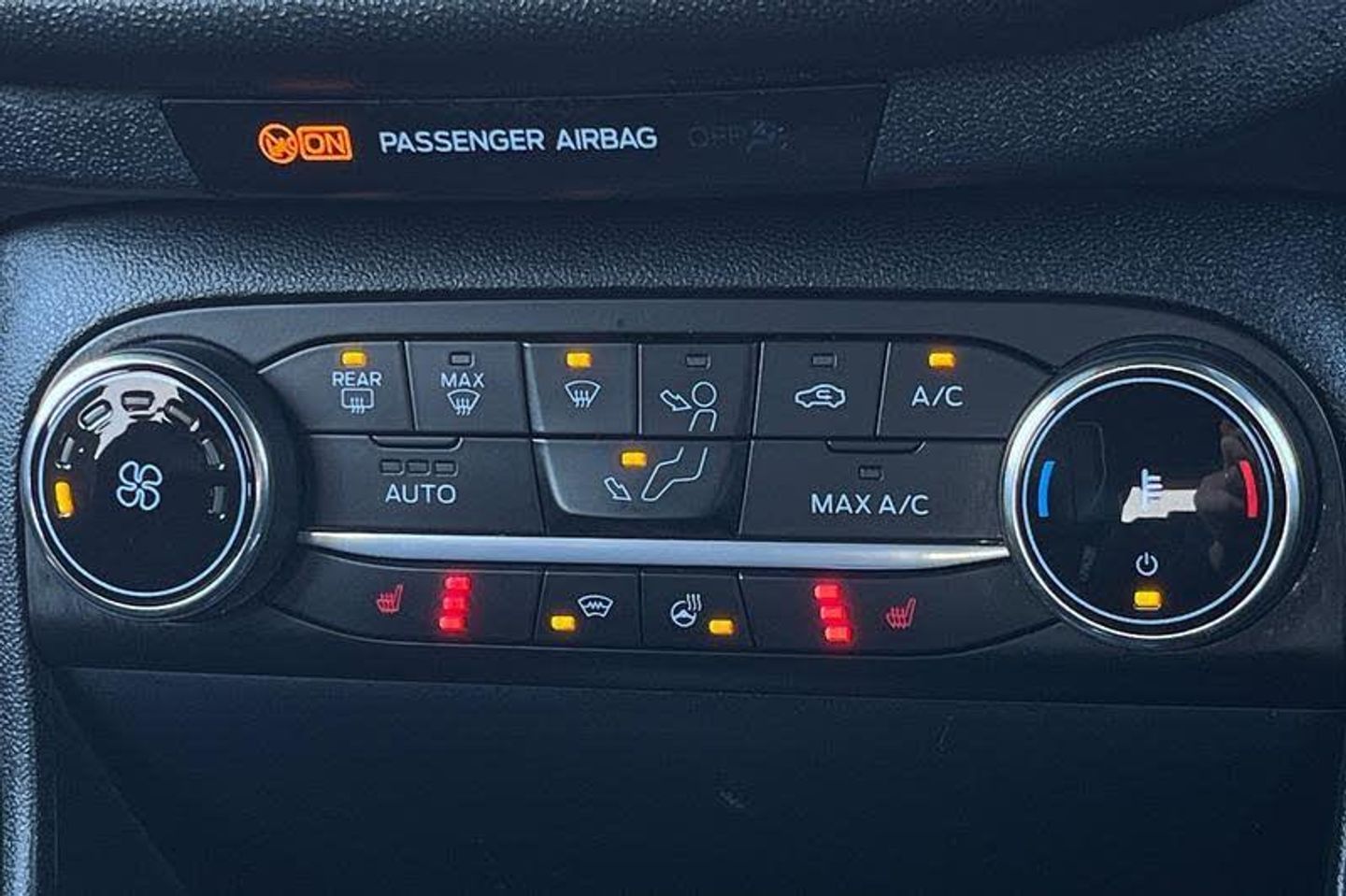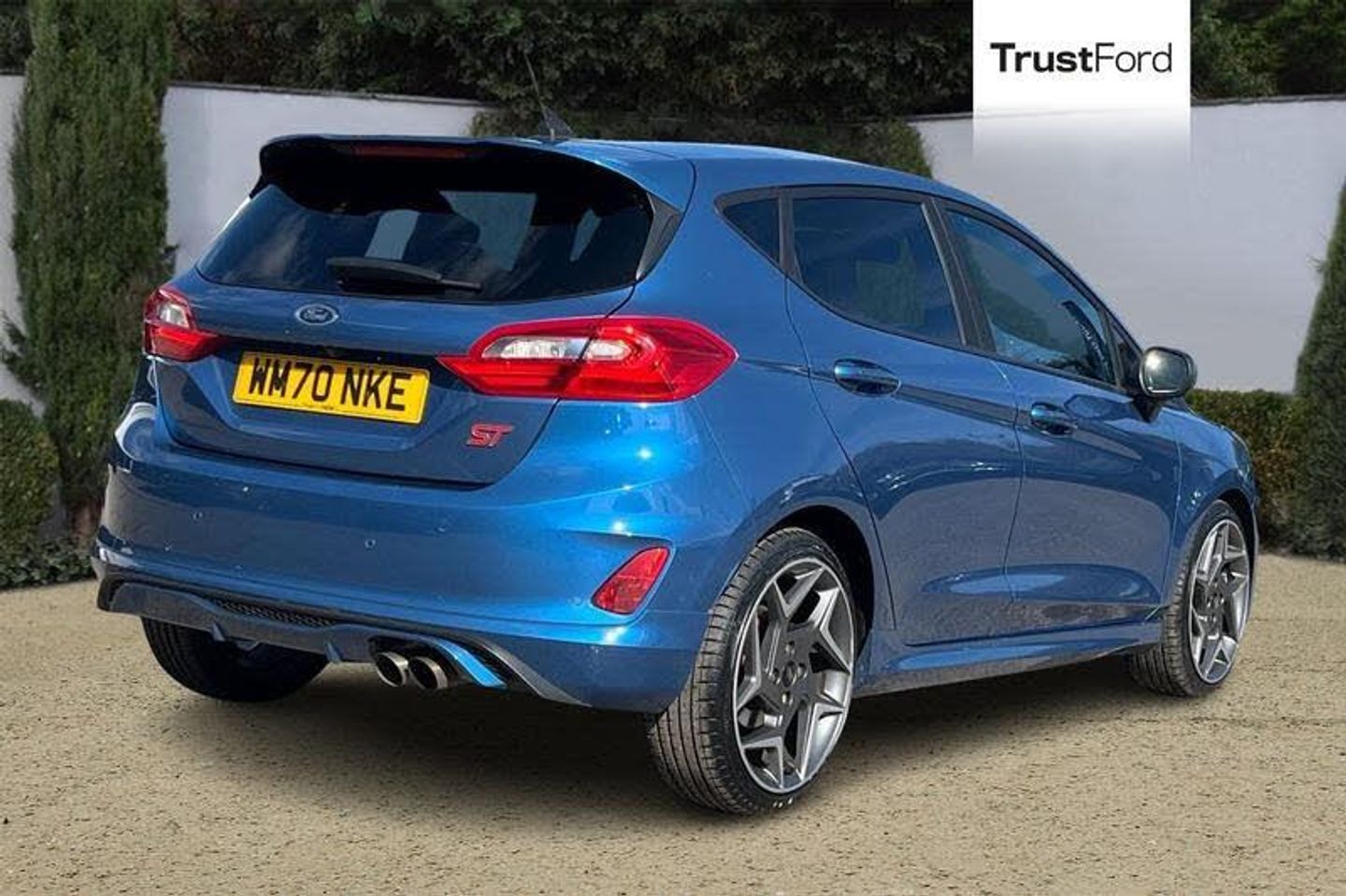 Bluetooth system, Cruise control, Drive mode selector, Electric power steering, Ford easy fuel, Trip computer, Auto dimming rear view mirror, Body colour bumpers, Body colour door handles, Body colour electric adjustable heated door mirrors with integral indicators, Body colour large rear spoiler, Chrome lower window surround, Cornering front fog lights, Electric front windows/one touch facility, Electric rear windows, LED Night signature to rear lights, LED rear lights, Power foldable door mirrors with puddle lights, Privacy glass, Quickclear heated windscreen, Rain sensing wipers and auto dimming rear view mirror, Rear privacy glass, Rear wiper, Rugged body styling kit with active front wing badges, Tinted glass, Unique ST-Line upper grille & full bodystyling kit with ST-Line wing badges, 12V Accessory socket in centre console, 3 spoke flat bottomed leather steering wheel with red stitching, 60/40 split folding rear seat, Adjustable head restraints, Ambient lighting, Black headlining, Boot carpet, Centre console with armrest and illuminated cupholders, Chrome inner door handles, Drivers and Passenger lumbar support, EATC - Electronic Auto Temperature control, Floor mats with grey stitching, Footwell illumination, Front map reading lights, Front seat and rear pockets, Front/rear floor mats, Illuminated glovebox, Leather gear knob, Leather trimmed handbrake handle, Load area light, Overhead console with sunglasses holder, Pollen filter, Rake/reach adjustable steering wheel, Rear centre head restraint, Recaro part leather front sports seats, Sports pedals, 3 point seatbelts on all rear seats, ABS+EBA, Curtain airbags, Driver and passenger airbags, Drivers knee airbag, Electronic stability control with hill start assist, Front passenger airbag deactivation, Front side airbags, Seatbelt warning, Tyre pressure monitoring system