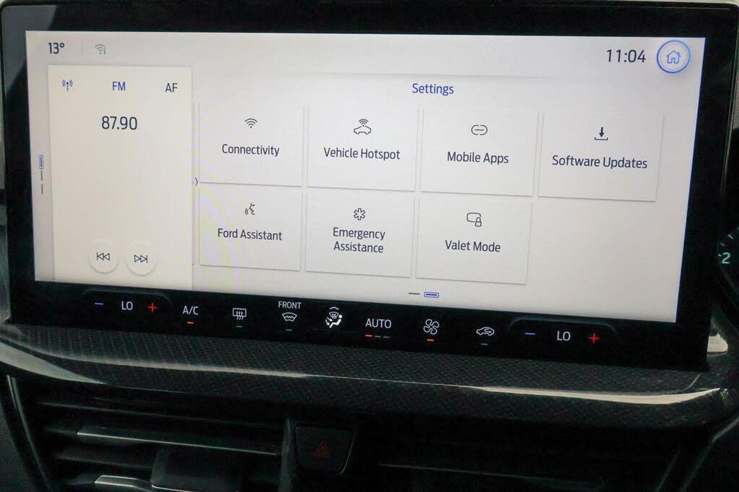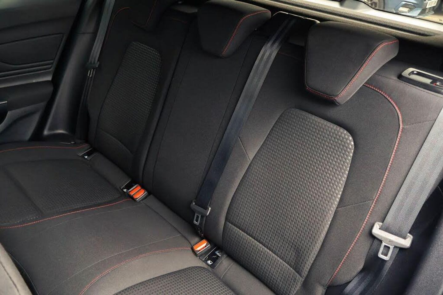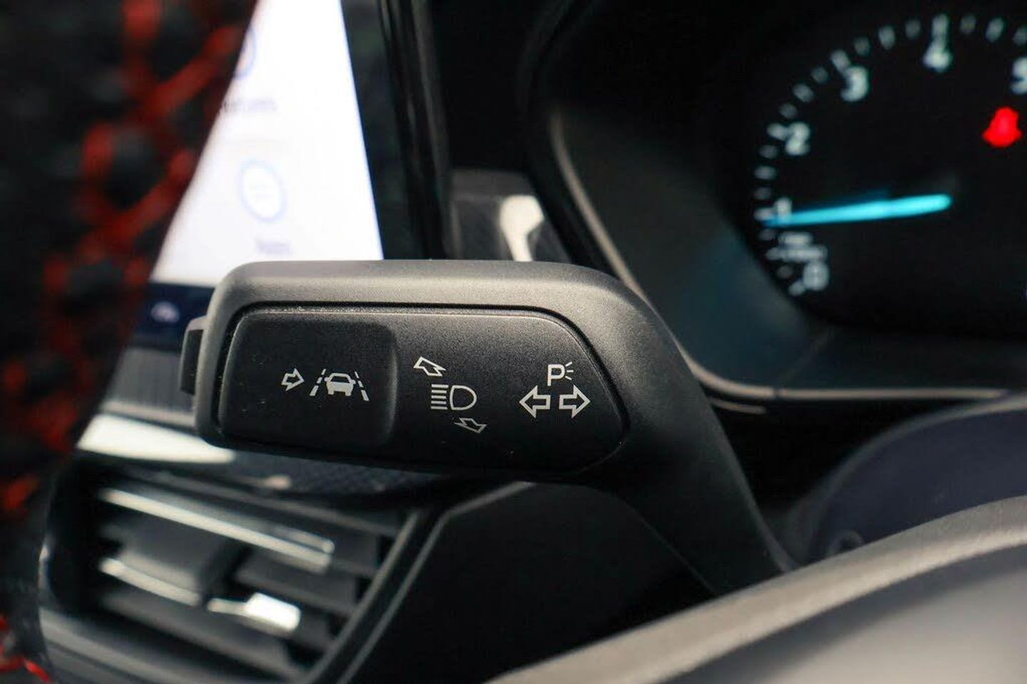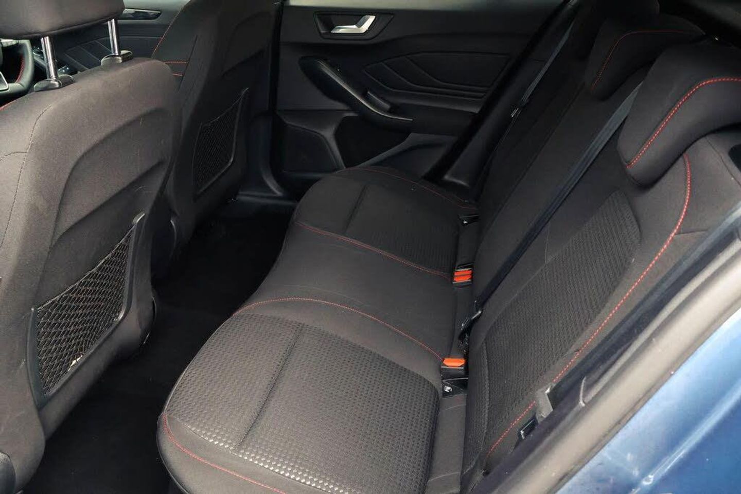 4.2" Colour TFT Ice blue illumination analogue cluster with trip computer, Bluetooth system, Digital clock, Easy fuel capless refuelling system, Eco mode, Ford SYNC 4 Navigation with 13.2'' touchscreen, DAB radio, Emergency Assistance, Apple Carplay Android Auto, 6 speakers FordPass Connect, Lane keeping system - lane keeping alert and lane keeping aid, PAS, Rev counter, Selectable drive mode, Service interval indicator, 2 USB ports, Auto headlamps (on/off), Body coloured door handles, Electrically operated front and rear windows with one touch opening and closing, Electrically operated heated power fold door mirrors with puddle lamp with side indicators, Front variable intermittent wipers with electric wash, Full fixed LED headlamps, Heated rear window, LED daytime running lamp, LED rear lamps, LED third brake light, Polished twin tailpipe, Privacy glass, Quickclear heated windscreen, Rain sensor, Rear side wing doors, Tailgate wash/wipe, Unique ST-Line grille, full bodystyling kit, and large body coloured rear roof spoiler, 3 rear headrests, 3 seat bench in 2nd row, Cloth upholstery, Dual zone electronic air temperature control, Height adjustable front headrests, Isofix child seat preparation, Manual 2-way passenger seat adjust, Manual 4-way driver seat adjust, with manual lumbar adjust, Reach + rake adjustable steering column, Single front passenger seat, Keyless entry and keyless start, MyKey system, Remote central locking engine immobiliser, Thatcham alarm with power door dead locks, Cloth - Black with Red Stitching