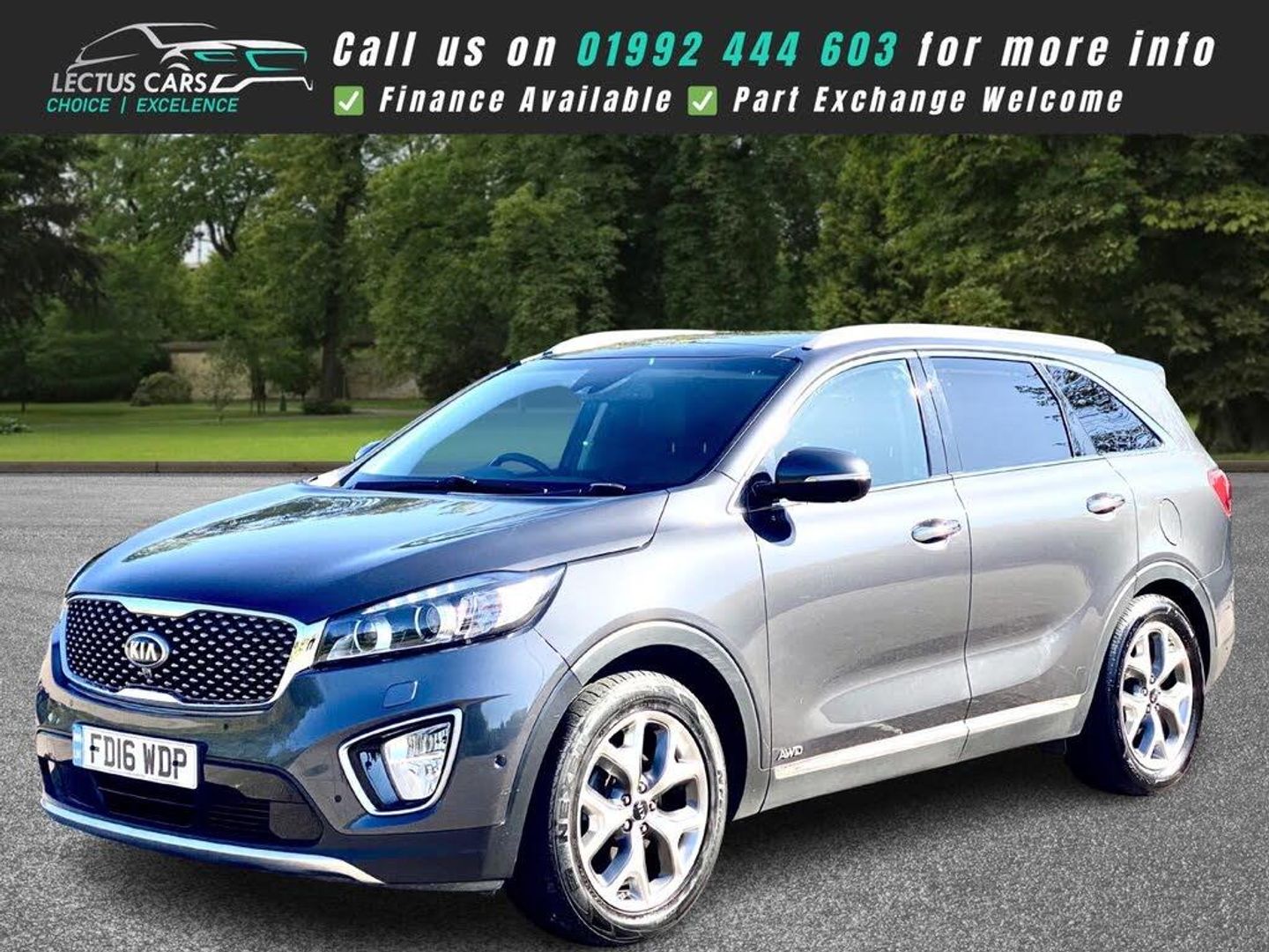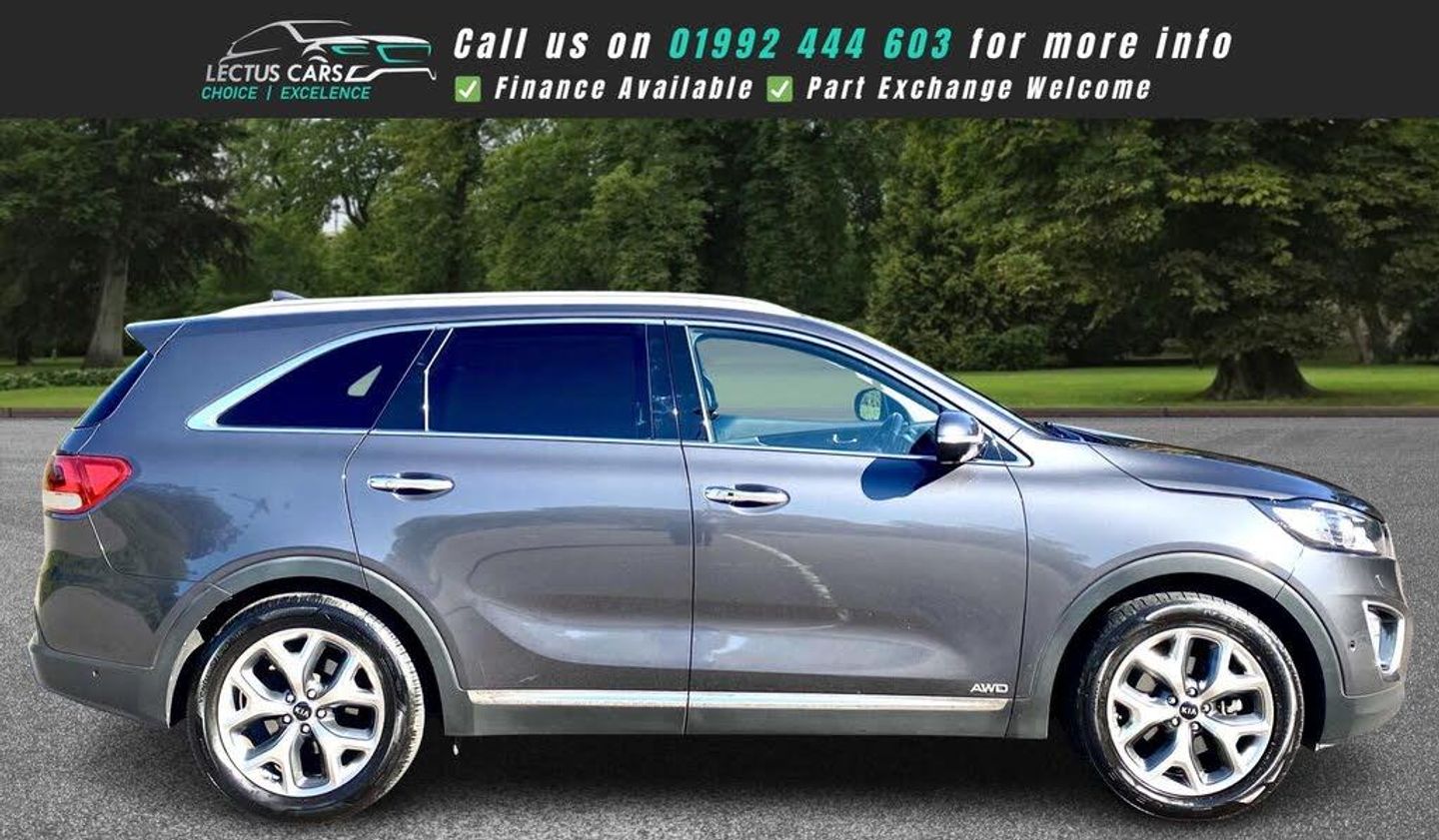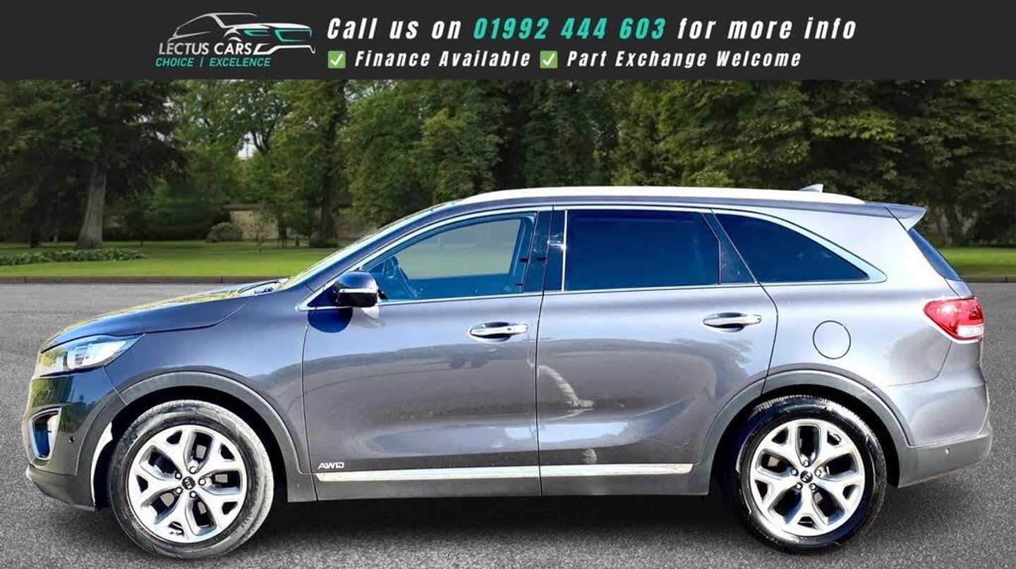 Finished in Metallic Grey with full Black Leather upholstery this All Wheel Drive 2016 Kia Sorento KX-4 2.2 Diesel has clocked up 121,000 and is complimented by a Full dealership service-history and has just been serviced by us. Being the KX-4 the vehicle has a lovely specification, including 7 Seats. Sliding Panoramic glass roof. 19in Alloy Wheels. 2nd Row Sunblinds. 8in Touchscreen Satellite Navigation and incorporated within this unit there is the DAB Radio, RDS Radio with CD and MP3, Bluetooth with Music Streaming and Bluetooth with Voice Recognition along with Infinity Premium Sound System. Adaptive Cruise Control found on the Multi-Function steering wheel along with Audio and Phone Controls. Dual Automatic Air Conditioning with Ioniser. Heated Front Seats and Heated Outer Rear Seats plus Heated Steering Wheel. Park Assist System with Front and Rear Parking Sensors and Reversing Camera System. Smart Key Entry System with Engine Start-Stop Button. Drive Mode Select. Smart Power Tailgate, plus much more, see the specification listSEE THE VIDEO IN THE ADVERT or use this link: https://youtu.be/yntpLJcesXo?si=2FhgG6AmwYogTwBt0% Deposit when financing through us.DELIVERY AVAILABLE. The Car Comes With A 6 Month Premium Nationwide Parts And Labour Warranty Finance Available From 10.9 % Apr All Inspections Welcome AA/RAC Px Welcome Viewing By Appointment Only Please Call John On 07785 555111 Or 01992 444603-FDSH-JUST SERVICED