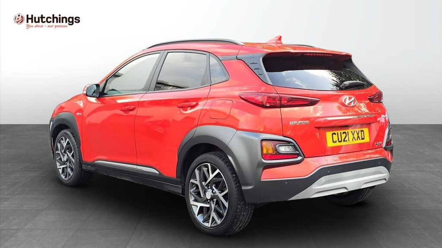 Hyundai Kona 1.6 GDi Hybrid Premium DCT (Tangerine Comet) 2021/21 Plate 1.6 GDi Petrol Hybrid efficient and responsive (141 PS) Eye-catching Tangerine Comet finish Automatic DCT transmission Premium trim well-equipped and comfortable 5door compact SUV versatile and stylish Euro 6 compliant ULEZ friendly 1 Previous Keeper 11,966 miles low mileage Full Service History (FSH) Fully inspected & valeted by main dealer Includes FREE 12month warranty HPI clear for your peace of mind Part exchange welcome Feature Highlights Heated front seats and heated steering wheel Rear parking sensors and reversing camera Touchscreen infotainment with Apple CarPlay & Android Auto Climate control for year-round comfort Alloy wheels and LED lighting Excellent fuel economy up to 57 MPG At Hutchings Hyundai Bridgend, were proud to be part of a fifth-generation, family-run business with over 50 years of main dealer experience in South Wales. Our reputation for outstanding customer service is built on trust, quality, and care values we bring to every sale. Youll find us on Tondu Road, Bridgend (CF31 4LH), easily accessible from Cardiff, Port Talbot, and the Valleys. With free on-site parking and a friendly, knowledgeable team, were here to help you find your perfect Hyundai whether youre booking a test drive or simply browsing.-HEATEDSEATS+WHEEL+1OWNER-Over 250 cars in group stock!