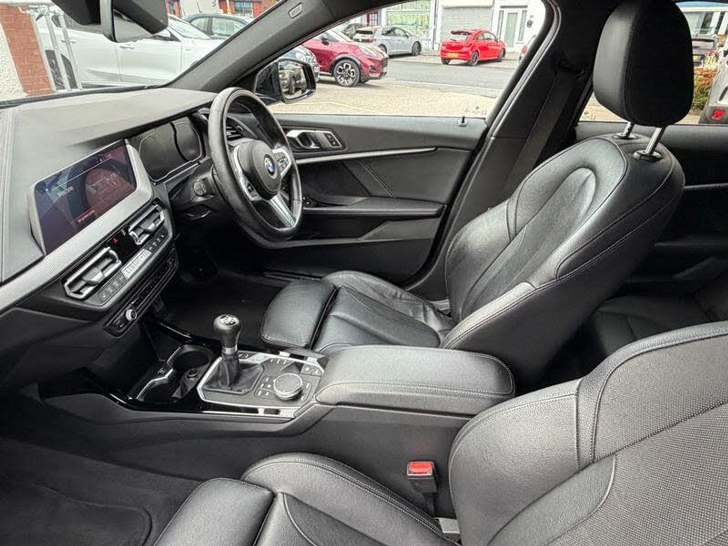 On board computer, Height adjustable front head restraints, Locking wheel bolts, Side impact protection, 3 rear seat head restraints, 6 speed manual transmission, Anthracite headlining, Front and rear door pockets, Body colour door handles, Seatbelt warning, High level third brake light, Manual adjust steering wheel, Automatic dimming rear view mirror, Anti roll bar front and rear, Anthracite Velour floor mats, Warning triangle and first aid kit, Rain sensor including auto headlights activation, Rear child proof door locks, Tyre pressure monitoring system, Glove compartment, Dynamic Traction Control - DTC, BMW Online services, M sports suspension + self levelling, Front sports seats with electric side bolster adjustment, 2 cupholders in front centre console, Follow me home headlights, Lane departure warning system, Multi-function controls for steering wheel, Automatic headlight beam throw control, Cruise control with brake assist, Automatic drive away locking facility, Folding rear clothes hook, Welcome lighting, DAB Digital radio, Speed limiter, Folding rear seats, LED daytime running lights, 12V power socket in centre console, Interior lights pack - 1 Series, Electronic differential lock, Body colour mirror caps, Bluetooth audio streaming, Personal Profile, Drive Performance Control, Storage compartment in centre console, BMW emergency call, BMW Teleservices, LED front fog lights, Attentiveness assist, Extended storage pack - 1 Series, Shark fin antenna, Connected eDrive Services, Visible VIN plate, Petrol Particulate Filter, Rear fog lights, Active guard plus, Conditioned based service, Brake drying, Optimum shift indicator, Oil sensor for level and grade, Central locking switch for all doors, fuel filler cap and luggage compartment, Check Control warning system for monitoring of lights and door/luggage compartment open warning, Driver and front passenger seat heating, Rear window wiper, Front and rear disc brakes, High precision injection, 2 tone horn, Driver and front passenger seat belt security check, Airbags - Front driver and passenger, front and rear head, front side, curtain head protection, Front passenger manual airbag deactivation, Reduced rolling resistance tyres, Lightweight engineering, Eco pro mode, Anti lock braking system (ABS) with brake assist, Braking readiness, Green tinted heat protection glazing, Front and rear electric windows with open and close fingertip control, anti trap facility and comfort closing, Thatcham Cat.1 alarm and immobiliser, Start/stop button with comfort go keyless engine start and auto start stop deactivation button, Direction indicator side lights in exterior mirrors, Nearside reverse light in rear light cluster, Chrome 'M' logo side designation, Chrome exhaust tailpipe in single, round (Exhaust tailpipe, stainless steel - single, round), Four grab handles integrated in roof lining, Front and rear side armrest integrated into door trim, Gearshift lever with M designation, Balancer shaft, High gloss shadow line exterior trim, Windscreen wipers with integrated washing jets, Model designation on right side of tailgate, Two zone automatic air conditioning, 3 point seatbelts on all seats, front pyrotechnic belt tensioners, stopper and belt force limiters, rear coded belt buckles, Crash sensor activating central locking release, hazard warning lights, fuel cut off, interior lighting + activation of safety battery terminal clamp, Child seat ISOFIX attachment for two outer rear seats and front passenger seat with anchorage points, Electrically operated hand brake, Contrast stitching on instrument panel, Dynamic stability control + (DSC+), Dakota leather upholstery with perforation and contrast stitching, Double VANOS, Heated, electrically adjustable exterior mirror aspheric on driver side, convex on passenger side, Driver side folding compartment in instrument panel, VALVETRONIC engine management, Electric folding and anti dazzle exterior mirrors, Luggage compartment pack - 1 Series, Exte