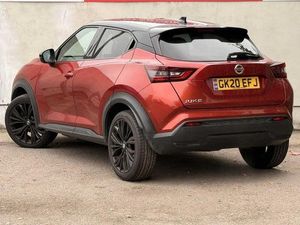 Exterior Features, Two tone pearlescent paint with Pearl black roof, Packs, Exterior pack - Pearl black - Juke, Interior personalisation pack - Enigma black - Juke, Wheels, Tyre puncture repair kit, Paint - Two Tone, Two tone pearl - Fuji sunset red with pearl black roof, Trim - Part Leather, Interior personalisation pack - Leather/alcantara - Enigma black, Exterior Features, Front and rear electric window with one touch driver and passenger window, Rain sensor windscreen wipers, Rear privacy glass, Rear wiper, Thermaclear heated windscreen, Body colour bumpers, Body colour door handles, Rear spoiler, Automatic hazard signal with emergency stop signal, Follow me home headlights, High beam assist, LED daytime running lights, LED front fog lights, LED headlamps, LED rear fog lamp, LED rear lamps, Three blink turn signal, Safety, ABS with EBD and brake assist, Electric handbrake with auto hold function, Electronic Stability Programme (ESP), Hill start assist, Intelligent emergency braking with pedestrian and cyclist recognition, Traction control, VDC Dynamic Vehicle Control, Ventilated rear brake discs, Drive modes select (Eco, normal and sport), Front parking sensor, Intelligent lane intervention, Lane departure warning system, Power Steering, Rear parking sensor, Traffic sign recognition, Auto dimming interior rear view mirror, Electrically adjustable door mirrors with integrated indicators, Heated and auto folding door mirrors, Active ride control, Active Trace Control, Driver and passenger airbags, Driver and passenger side airbags, Front and rear curtain airbags, Height adjustable seatbelts, Seatbelt reminder for driver/front passenger and rear seats, Single tone horn, Three 3 point rear seatbelts, Tyre pressure monitoring system, Driver Convenience, Idle start/stop system, Miscellaneous, 7 inch full colour TFT screen combimeter, 8 inch infotainment colour display with touch screen, Apple CarPlay and Google Android auto, Emergency and breakdown call, Nissan connect nav with TomTom traffic, Nissan connect services and Wifi connection, Outside temperature sensor, Trip computer, Gasoline particulate filter, Audio / Communications, Bluetooth system, USB, Aux-in and 12V socket, Bose personal plus audio system with 8 speakers(4 speakers and 2 headrest speaker for driver and passenger seats), Bose personal sound stage control, DAB Digital radio, Front lower bumper painted in silver finisher, Rear console USB port, Interior Features, Automatic climate control, Card holder on driver sunvisor, Driver side rear coat hanger, Front armrest, Front door pockets with bottle holders, Front/rear passenger grab handles, Grey synthetic leather kneepad, Internal chrome door handles, Leather gearshift knob, Leather steering wheel, Luggage board, Multifunction steering wheel, Rear door bottle holders, Steering wheel mounted gearshift paddles, Telescopic steering wheel adjustment, Two cupholders in front centre console, Voice recognition switch on steering wheel, Door ambient lighting, Front and rear cabin lights, Gear console ambient circle lighting, Luggage space lighting, Welcome light and console tray ambient lighting, Driver/passenger sunvisors and illuminated vanity mirrors, Packs, ProPilot pack - Juke, Trim, 3 height adjustable rear headrests, 60/40 split folding rear seat, Driver and passenger sliding and reclining seats, Driver seat back pocket, Front head restraints, Front passenger isofix child seat anchorage point, Heated front seats, Height adjustable driver's seat, Height adjustable passenger seat, Monoform sporty seats, Passenger seat back pocket, Two rear isofix child seat anchorage points with top tether, Security, Alarm, Immobiliser, Intelligent Key with push button starter, Remote central locking, Wheels, 19 inch Akari alloy wheels