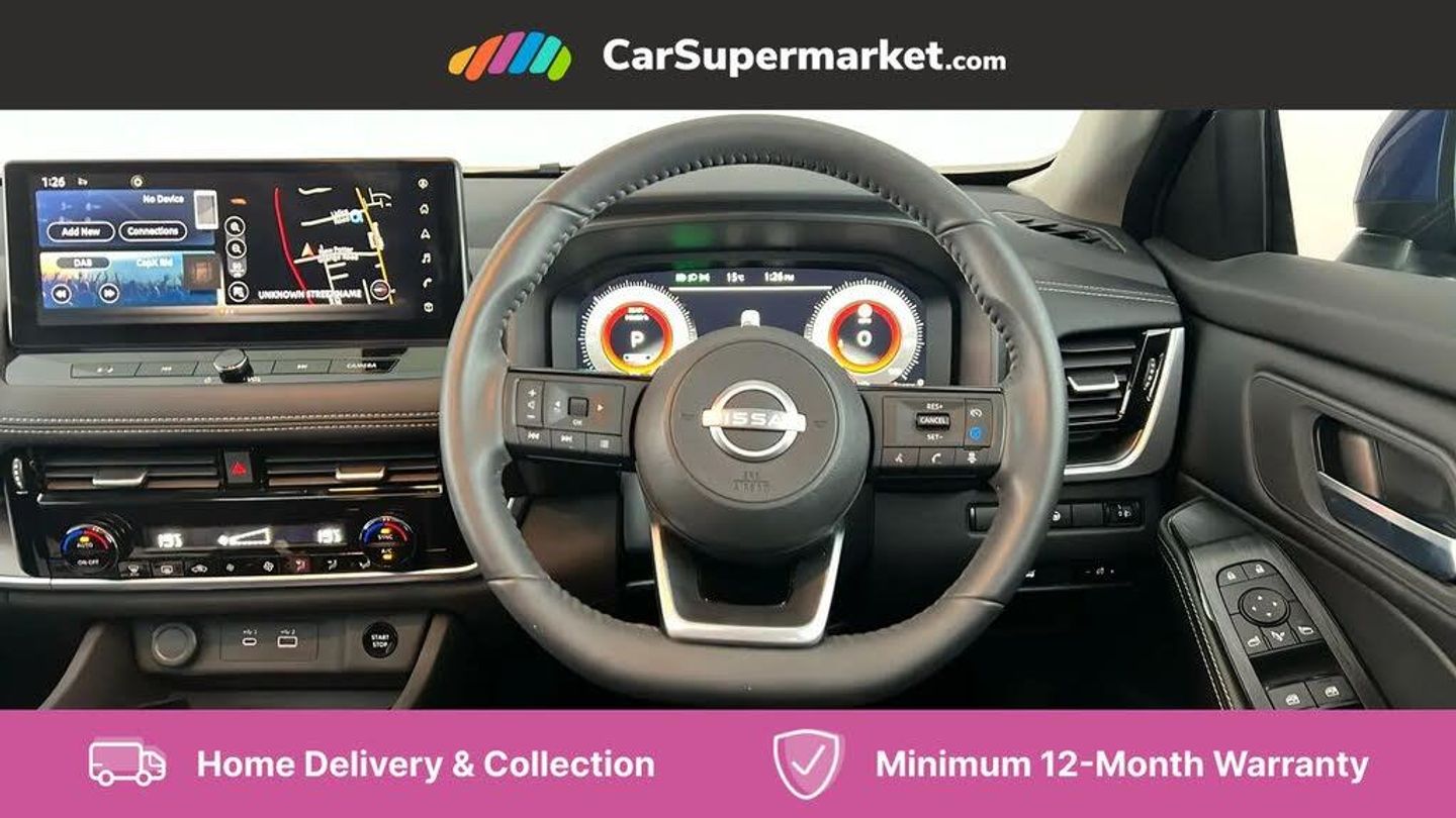 Android Auto, Wireless Phone Charging, Blind Spot Monitoring, Parking Sensors, Cruise Control, Lane Departure Warning, Sat Nav, Traffic Sign Recognition, Apple CarPlay, Bluetooth, Automatic Climate Control, 18" Alloy Wheels;This 2024 Nissan X-Trail e-POWER N-Connecta boasts an exceptionally low mileage of just 5933 miles, a testament to its careful single ownership. This Euro 6 compliant, 1.5 litre petrol hybrid model offers a smooth and efficient driving experience, with its MOT valid until August 2027 and a clear vehicle history check. The last service was completed on 2025-08-06 at 5098 miles, ensuring it is well maintained. Key features include wireless Apple CarPlay, front and rear parking sensors for effortless manoeuvring, and blind spot warning for added safety. The intelligent key system with approach unlock and walk away lock provides convenient access. The Nissan X-Trail N-Connecta excels with its impressive acceleration, reaching 0-62mph in just 8.0 seconds, demonstrating a responsive performance that sets it apart. Its large boot space offers practicality for all your needs, making it a versatile choice for families and adventurers alike. These highlights collectively indicate that this X-Trail offers a superior combination of performance, convenience, and utility compared to other vehicles in its class.