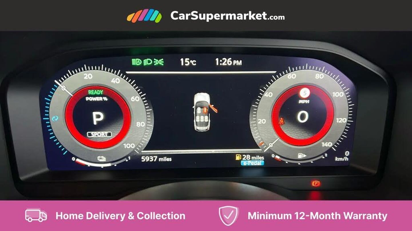 Android auto wireless,Blind spot warning,Drive assist custom mode,Drive modes (sport, normal, eco),Driver drowsiness and attention warning,e-Pedal step,Electric speed sensitive power steering,Emergency and breakdown call,Event data recorder,Front and rear parking sensors,Full Digital 12.3" TFT Digital Combimeter,Google maps services - search, weather, 3D maps and Google street view,Hands free power tailgate,Idle stop/start system,Intelligent around view monitor,Intelligent Cruise control (ICC),Intelligent driver alert system,Intelligent forward collision warning,Intelligent lane departure warning,Intelligent lane intervention,Intelligent lane keep assist,Maximum speed limiter,Moving object detection,Nissan connect 12.3 inch touchscreen infotainment system,Nissan connect nav with TomTom traffic,Propilot assist with Navi-Link,Push button starter,Rear cross traffic alert,Rear view camera,Remote control services - door locks, lights, horn and car locator,Reversing detection,Telematics - notifications and connectivity services,Traffic jam pilot,Traffic sign recognition with legal speed adjustment,Trip computer,Virtual personal assistant and firmware over the air capability,Wireless apple carplay,Wireless charging pad,6 speakers,AM/FM audio system with DAB,Bluetooth audio streaming,Front USB connections (Type-A and Type-C),Rear USB charging only ports 2 Type-C,Auto dimming rear view mirror,Auto rear wiper when reversing,Body colour mirror caps,Body coloured door handles,Bodyside mouldings,Chrome side window finisher,e-POWER badging,Electric auto folding door mirrors,Electrically adjustable and heated door mirrors,Follow me home headlights,High beam assist,Intelligent auto headlights,LED 3rd brake light,LED daytime running lights,LED Headlights,LED rear lights,One touch front and rear electric windows with remote opening and closing,Partially body coloured bumpers,Rain sensing wipers,Rear reversing light (bulb lighting),Rear roof spoiler,Rear side wing doors,Rear styling plate,Shark fin antenna,Splash free wipers,Super UV and infrared cut glass,Three blink turn signal,12v power socket in dashboard and luggage,3 bench rear seats in 2nd row,3 rear headrests,60/40 split folding rear seat bench,Butteryfly console,Chrome interior door handles,Cloth monoform upholstery,Driver and front passenger sunvisors with illuminated vanity mirrors,Driver seat back pocket,Dual zone automatic climate control with pollen filter,Front centre console and armrest,Front cupholders,Front door with bottle holders,Height adjustable driver's seat,Height adjustable front headrests,Height adjustable passenger seat,Leather shift knob,Leather steering wheel,Luggage board system,Luggage space lighting,Multifunction steering wheel,Passenger seat back pocket,Rear armrest with 2 cupholders,Rear door bottle holders,Single front passenger seat,Tilt/telescopic adjustable steering wheel,Two rear isofix child seat anchorage points with top tether,3x3 point rear seatbelt pretensioners + load limiters,ABS with EBD and brake assist,Active brake limited slip,Auto hold function,Child locks on rear doors,Curtain and front side, far side airbags,Driver and passenger airbags,Driver, passenger and 2nd row rear seat belt reminder,Electronic parking brake,Front seatbelt pretensioners + load limiters,Height adjustable front seatbelts,Hill start assist,Intelligent blind spot intervention,Intelligent front emergency braking with pedestrian, cyclist recognition and junction assist,Intelligent rear automatic braking,Tyre pressure monitoring system,Vehicle dynamic control,Approach unlock and walk away lock,Engine immobiliser,Intelligent Key,Remote central door locking with deadlocking,Thatcham Cat.1 alarm,18" Diamond cut alloy wheels,Tyre puncture repair kit
