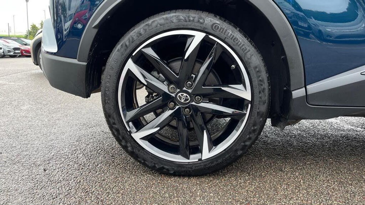 19in Alloy Wheels - 5-Double-Spoke - Black Machined-Face, 3-Spoke Perforated Leather Steering Wheel, 4.2in Colour TFT Screen for Multi-Information Display, 8in HD Toyota Smart Connect Multimedia System, ABS - Anti Lock Braking System, AM-FM Radio, Acoustic Vehicle Alert System - AVAS, Adaptive Cruise Control, Adaptive Front Light System - AFS, Adaptive LED Headlights, Adjustable Rear Headrests, Adjustable Speed Limiter - ASL, Adjustable Speed Limiter -ASL- Switch on Steering Wheel, Anti-Jam Protection on Power Windows, Audio and Telephone Switches on Steering Wheel, Auto Dimming Rear View Mirror, Auto Headlights, Auto Up and Down Function on Power Windows, Automatic Headlight Cut-Off, Automatic Headlight Levelling, Automatic High Beam, Black Bi-Tone Roof, Black Centre Console, Black Front Door Assist Grips, Black Front Spoiler, Black Lower Dashboard, Black Lower Driver Dashboard, Black Upper Dashboard, Black and Body-Coloured Rear Bumper, Blue Ambient Lighting on Front Cup Holders, Blue Ambient Lighting on Front Doors, Bluetooth Connectivity, Body Coloured Door Handles, Body Coloured Door Mirrors, Body-Coloured Front Bumper, Boot Door Release with Push Button, Boot Light, Child Safety Locks on Rear Doors, Chrome Interior Door Handles, Cool Silver Deco Line on Upper Dashboard, Dark Chrome Lower Front Grille, Digital Audio Broadcast - DAB, Driver and Front Passenger Personal Lights, Driver and Front Passenger Whiplash Lessening - Headrest, Driver and Passenger Seatback Pockets, Dual-Zone Automatic Air Conditioning, Electric Power Steering - EPS, Electric and Heated Door Mirrors, Electronic Parking Brake, Floor Mats, Follow Me Home Headlights, Front 12V Power Outlet, Front Cup Holders, Front Fog Lights - LED, Front LED Light Guide, Front Power Windows, Front and Centre Pillar Assist Grips, Glass-Breaking Alarm Sensors, Glovebox with Light, HAC - Hill Start Assist Control, Hard Tonneau Cover, Heated Driver and Front Passenger Seat, Hooks for Luggage Holding Belt, Humidifying Nanoe Air Purifier, Hybrid System Indicator, ISOFIX Seat Fixing - Rear, Illuminated Entry System, Immobiliser, Intrusion Alarm, LED Daytime Running Lights, LED High-Mounted Stop Light, LED Rear Brake Lights, LED Rear Combination Lights, Lane Departure Alert with Switches on Steering Wheel, Leather Gear Shift, Light on Driver Sun Visor, Light on Passenger Sun Visor, Manual Height Adjustable Front Passengers Seat, Manual Height Adjustable for Drivers Seat, Manual Tilt Steering Wheel, Manually Reclining Driver Seat, Manually Reclining Front Passengers Seat, Manually Sliding Drivers Seat, Manually Sliding Front Passenger Seat, Microphone on Front Personal Light, Mirror on Driver Sun Visor, Mirror on Passenger Sun Visor, Motion Sensor Alarm, Multimedia Switches on Steering Wheel, Noise Reduction Layer on Front Windows and Windscreen, Parking Pack, Passenger Airbag On-Off Switch, Pollen Air Filter, Power Adjustable Lumbar Support on Driver Seat, Power Door Locks, Power Passenger Window Lock, Pre-Collision Warning System with Pedestrian Detection, Privacy Glass, Rear Headrests x3, Rear Power Windows, Rear Seats 60-40 Split Folding, Rear Sequential Indicators, Rear Spoiler, Rear Tailgate, Rear Window Defogger, Rear Window Wiper, Remote Door Locking, Reversing Camera, Road Sign Assist, Seat Belt - Pre-Tensioners and Force Limiters, Seat Belt Reminder - Front and Rear, Seats - Front Sport, Shark Fin Antenna, Shopping Bag Hooks, Simple Intelligent Park Assist, Slow Opening Lower Glovebox, Smart Entry and Push-Button Start, Speakers x6, Steering Wheel - Manual Telescopic Adjustment, Supplemental Restraint System - SRS - Airbags - 5 Airbags, TPMS - Tyre Pressure Monitoring System, Tech Pack, Tyre Repair Kit, USB Connector, UV-Filter on Drivers and Front Passenger Windows, UV-Filter on Rear Windows, VSC - Vehicle Stability Control, Voice Recognition, Voice Recognition Switch on Steering Wheel, Wi-Fi Connectivity
