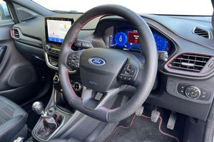 Parking Pack, Winter Pack, Partial Premium Sensico - Black with Red Stitching, Riverside Approved Sale, No Administration Fees Applicable, Remainder of Manufacturers Warranty, 18in Alloy Wheels - 5-Spoke - Matt Black Machined Finish, ABS - Anti-lock Braking System, Acoustic Laminated Windscreen, Active Grille Shutter, Automatic Dimming Rear View Mirror, Automatic Headlights with Rain-Sensing Wipers and Auto High Beam, B&O Premium Audio System and Ford SYNC 3 Navigation, Carbon-Look Interior Deco Spears, Centre Console - Premium with Openable Stowage Area with USB Connectivity - 2 Cupholders and 12v Power Point, Courtesy Lights - Ambient LED Courtesy Lighting - Single Colour, Cruise Control with Intelligent Speed Assist, Drivers Manual 4-Way Seat Adjustment with Manual Lumbar Adjust, ESC - Electronic Stability Control and Hill Start Assist, Ecoboost Hybrid Tailgate Badge, Electric Windows - Front and Rear, Electronic Air Temperature Control - EATC, Emergency Brake Warning - Automatic Hazard Warning Lights, First Aid Kit Strap, Floor Mats - Front and Rear, Ford MegaBox Extended Bootspace, Ford Power Starter Button, Front Bumper - Unique ST-Line Sport Design - Body Colour, Front Fog Lights with Cornering lights and LED Rear Lamps, Front Seats - Sports Style, Full Digital 12.3in Instrument Cluster, Gear Knob - Aluminium, Handbrake - Black Sensico Trimmed with Stitching, Headliner - Deluxe, Instrument Panel - High Level, Intelligent Speed Assistance, Lane Keeping Aid with Lane Departure Warning, Large Rear Spoiler - Body Colour with Centre High Mounted Stop Light, Locking Wheel Nuts, Lower Bodyside Moulding - Body Colour, Passenger 4-Way Seat with Lumbar Adjustment, Post Collision Braking, Power Steering, Power-Foldable Heated Door Mirrors with Puddle Lamps, Pre-Collision Assist with Autonomous Emergency Braking and Pedestrian-Cyclist Detection, Privacy Glass, Projector Headlamps with LED Daytime Running Lights, Puma Badge, Quickclear Heated Windscreen, Rear Bumper Body Colour - Diffuser, Rear Parking Sensors, Rear Seats - 2-Way Head Restraint Up-Down, Rear Seats - Second Row 60-40 Folding Seats, Remote Central-Double Locking, Restrain Device Pack, ST-Line Badge, ST-Line Body Styling Kit, ST-Line Flat-Bottomed Leather Steering Wheel with Unique Red Stitching, Selectable Driving Modes - Normal - Eco - Sport - Slippery and Trail, Soft-feel Gearshift Boot with Red Stitching, Speed Limiter, Sports Suspension, Tailgate - Manual, Thatcham Alarm, Traction Control and Emergency Braking Assistance, Trip-Fuel Computer, Tyre Inflation Kit, Tyre Pressure Monitoring System - TPMS, Wireless Charging Pad with Electronic Air Temperature Control EATC