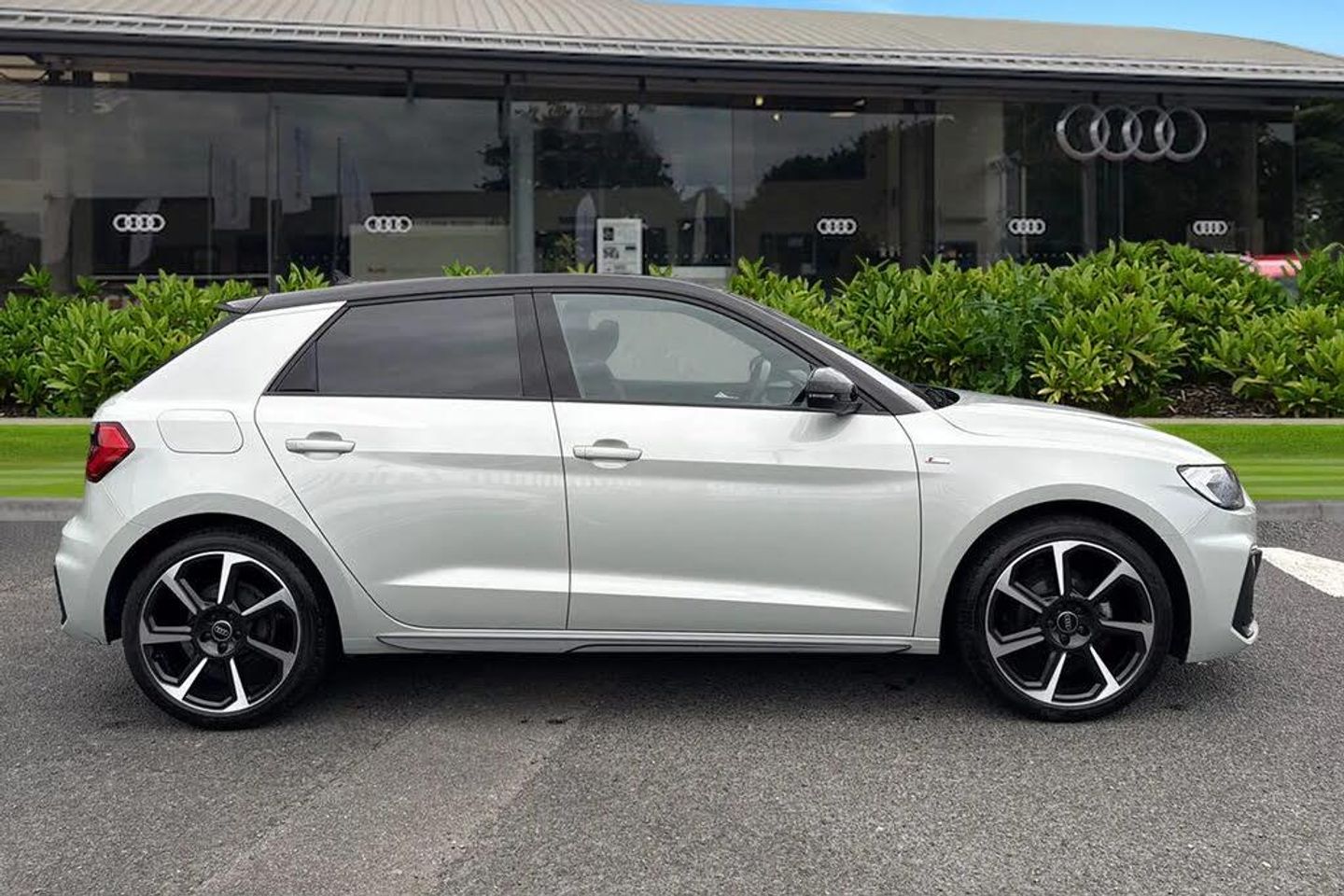 18" x 7.5J "7-spoke rotor" design alloy wheels in gloss anthracite black - diamond cut finish with 215/40 R18 tyres,Rear-view camera,WB0,Technology Pack,Flat-bottomed 3-spoke multifunction steering wheel,Heated front seats,Privacy glass,Black Styling package with black rings,Contrast Pack,Contrast roof,Parking System Plus,Sonos 3D Sound System,Audi Phone Box,Equipment options subset for Great Britain,Technology Pack
