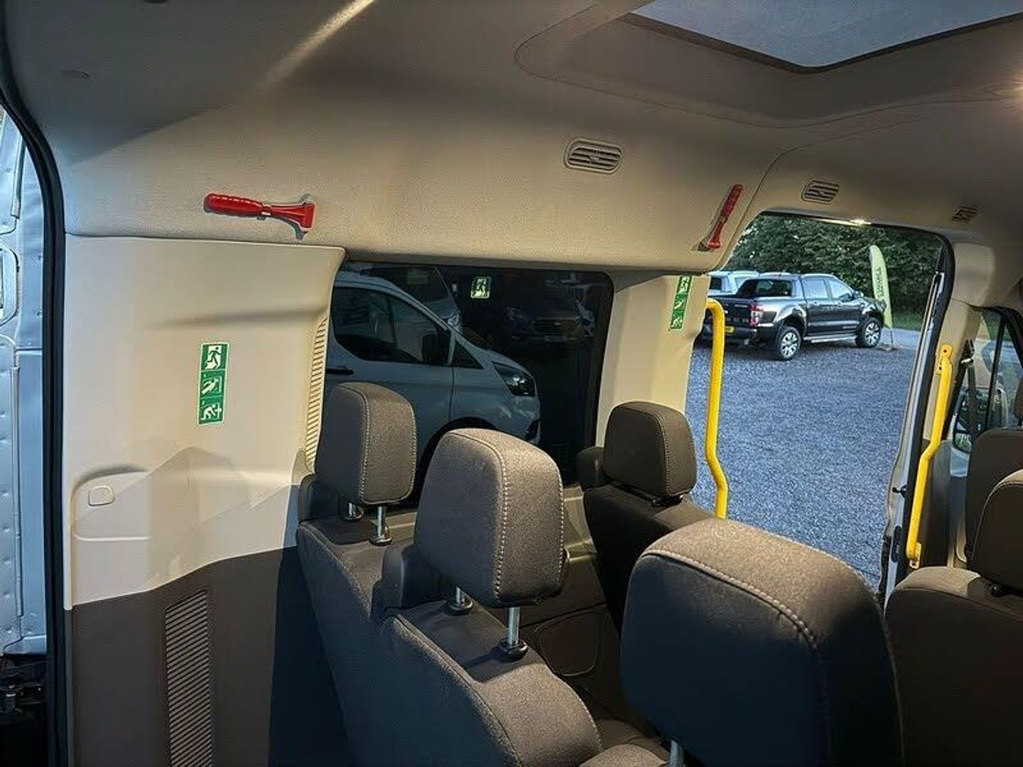 Bluetooth, Ford SYNC 8in Touch Screen with Emergency Assistance, ICE Pack 21, Power Point Socket - 2x 12V, ACC - Adaptive Cruise Control with Forward Alert, Gearshift Indicator Light, Parking Aid - Front and Rear with Front Fog Lamps, Pre-Collision Assist with Pedestrian Detection with Lane Keeping Aid, Selectable Drive Mode, Trip Computer, Water in Fuel Filter with Sensor, 16in Steel Wheels, Bodyside Mouldings - Wide - Self Colour, Bumper - Front Body Colour - Partial, Electrically-Operated Front Windows with One-shot Up-down on Drivers Side, Front Grille - Chrome, Heated Front Windscreen, Mudflaps - Rear, Power Door Mirrors - Heated, Power Fold Door Mirrors - Heated, Power Step - Passengers Side Load Door, Privacy Glass - Dark Tinted, Rear Bumper - Self Colour with Integrated Step, Tyre Inflator Kit, Wheel Covers - Full, Windows - 2nd Row - Drivers Side Slide Opening, Windows - Fixed 3rd Row, Windows - Rear-heated, Windows - Second Row - Left Hand Side Fixed, Daytime Running Lamps, Front Fog Lights, Headlights - Automatic On-Off, Headlights - Halogen Projector with Static Cornering Lights, 4-way Adjustable Drivers Seat with Armrest, Bottle Holder - Twin 2 litre Bottle Capacity - Facia-Mounted, Courtesy Lights - Front and Rear Lights and Map-Reading Lights with Theatre-Style Dimming, Doors - Glazed Passengers Sliding Side Load Door Fitted with Emergency Release Hammer, Doors - Glazed Rear Doors - Hinged for 180 Degree Opening - Positive Stop at 90 Degree, Drivers Seat Lumbar Support, Dual Front Passenger Seat, Floor Covering - Complete - Easy-clean and Rubber Insulated, Fog Lights - Rear, Gearshift Knob - Moulded, Glovebox - with Lockable Lid and A4 File Storage Capability, Headliner - Complete - Covers Full Length of Vehicle, LAC - Load Adaptive Control, Less Steel Spare Wheel, Locks - Power Central Locking, Manual Air Conditioning, Overhead Console, Passenger Compartment Lights, Rear 2-Way Head Restraint, Rear Air Conditioning, Rear Seats - Fourth Row Bench, Rear Seats - M1 Standard - Adjustable Headrest Design, Rear Seats - Manual Recliner, Rear Seats - Second Row - Dual Seat, Rear Seats - Third Row - Dual Bench Seat - Single Seat, Seats - Rear Recline with Armrests, Steering Column - Rake and Reach Adjustment, Steering Wheel - 4 Spoke Leather Trimmed, Storage - Drivers Side - Storage Compartment on Facia Top with Lift Up Lid, Storage - Front Door Map Pockets, Sunglasses Holder in Roof Stowage, Vehicle Maintenance Monitor, Wipers - Front - Automatic with Rain Sensor, 100kph - 62mph Fixed Engine Governer, Battery - Cold Start -20 Degree C, Battery - Twin Improved Flooded - IF, Electric Power-assisted Steering - EPAS, Front - Independent MacPherson Struts - Coil Springs - Stabiliser Bar and Gas-Pressurised Shock Absorbers - Rear - Leaf Springs and Gas-Pressurised Shock Absorbers, Heater - PTC, Standard Duty Alternator - 150amp, 2nd Remote Key, ABS - Anti-lock Braking System, Airbag - Front Passengers with Deactivation Switch, Airbags - Driver, Curve Control, EBA - Emergency Brake Assist, EDCC - Electronic Dynamic Cornering Control, Emergency Brake Warning, ESP - Electronic Stability Programme, Ford Easy-Fuel Capless Refuelling System, Hill Start Assist, Immobiliser - Safeguard Passive Anti-Theft System - PATS - Insurance-Approved Category 2 Immobiliser, Locks - Auto Relocking - Doors Relock after 45 Seconds if no Door is Opened, Locks - Key Operated Bonnet Release, Remote Central Locking, Remote Central Locking with Two Key Fobs, RSC - Roll Stability Control, Seatbelts - 3 Point Diagonal Inertia Reel - All Seats, Vehicle Identification Number - VIN - Visible, Wipers - Rear with Auto Reverse Wipe and Electrically-operated Wash