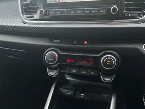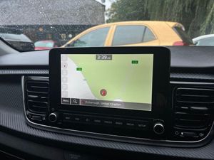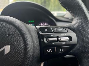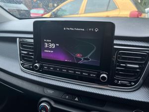 8" touchscreen navigation, Apple car play/Android Auto, Blind spot collision warning, Cruise control + speed limiter, Digital clock, Drive mode selector, Electric power steering, Emergency call service, Emergency stop signalling system, Front parking sensor, Gear selection indicator, Kia Connect (UVO), Manual speed limit assist (MLSA), Outside temperature display, Rear parking sensor, Reversing camera system with dynamic guidelines (Integrated into centre fascia screen), Tachometer, Tailgate, Trip computer, Voice control system, Windscreen washer level indicator, Intelligent Stop and Go, 6 speakers, Bluetooth connectivity including audio streaming, DAB Digital radio, Front USB port for media connection, Rear USB port, Steering wheel mounted audio controls, Aeroblade-type front wipers, Auto dimming rear view mirror, Automatic defog system, Automatic lighting control, Bi-function projection headlights, Body colour bumpers, Body colour door handles, Chrome side window trim, Cornering light, Electric adjustable/heated/folding door mirrors, Front electric windows with driver's auto up/down function, Gloss black and dark chrome surround radiator grille, Headlamp levelling, Heated rear window, High gloss black door mirrors, High Gloss Black rear spoiler, LED "Ice-Cube" Front Fog Lights, LED daytime running lights, LED indicators in door mirrors, LED rear fog light, LED third brake light, Privacy glass (Rear Windows and Tailgate), Rain sensing front wipers, Rear electric windows, Rear side wing doors, Rear wash/wipe, Speed variable front wipers, Sports front bumper, Sports rear bumper, Tinted glass, Twin exhaust pipes, Welcome and follow-me home light functionality, 3 passenger assist grips, 3 seat bench in 2nd row, 60/40 split/folding 2nd row of seats, All round height adjustable headrests, Automatic air conditioning, Centre Console with Storage Box and Sliding Armrest, Cloth/faux leather upholstery with grey stitching, Dash illumination dimmer switch, Driver's seat height adjuster, Driver/passenger sunvisors and illuminated vanity mirrors, Front and rear door map pockets with bottle holder, Front passenger seatback pockets, Front USB charger port and 12V socket, Heated front seats, Heated steering wheel, ISOFIX top tethers and lower anchor points, Leather D cut steering wheel, Leather trimmed gearshift, Load area light, Luggage area parcel shelf, Luggage hooks, Metal pedals, Overhead console with sunglasses holder, Satin chrome interior door handles, Single front passenger seat, Tilt/telescopic adjustable steering wheel, Advanced driving assistance pack - Rio, 3-point front seatbelts, 3x3 point rear seatbelts, ABS with Electronic Brakeforce Distribution (EBD) and Brake Assist System (BAS), Automatic unlocking of doors in case of impact, Cornering brake control (CBC) and Straight line stability (SLS), Electronic stability control (ESC) and vehicle stability management (VSM), Front seatbelt pretensioners + load limiters, Height adjustable front seatbelt anchors, Hill start assist control (HAC), Passenger airbag deactivate switch, Rear child proof door locks, Seatbelt warning, Traction control, Twin curtain airbags, Twin front airbags, Twin front side airbags, Tyre pressure monitoring system, Anti theft alarm, Deadlocking system, Engine immobiliser, Locking wheel nuts, Smart key with engine start/stop button, Speed sensitive auto door locking, Visible vehicle identification number, Carbon Fascia Trim, 17" Alloy wheels, Tyre mobility system