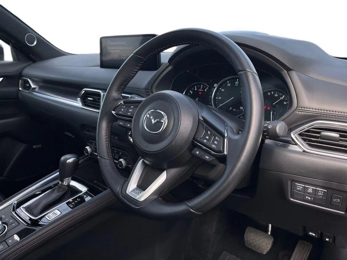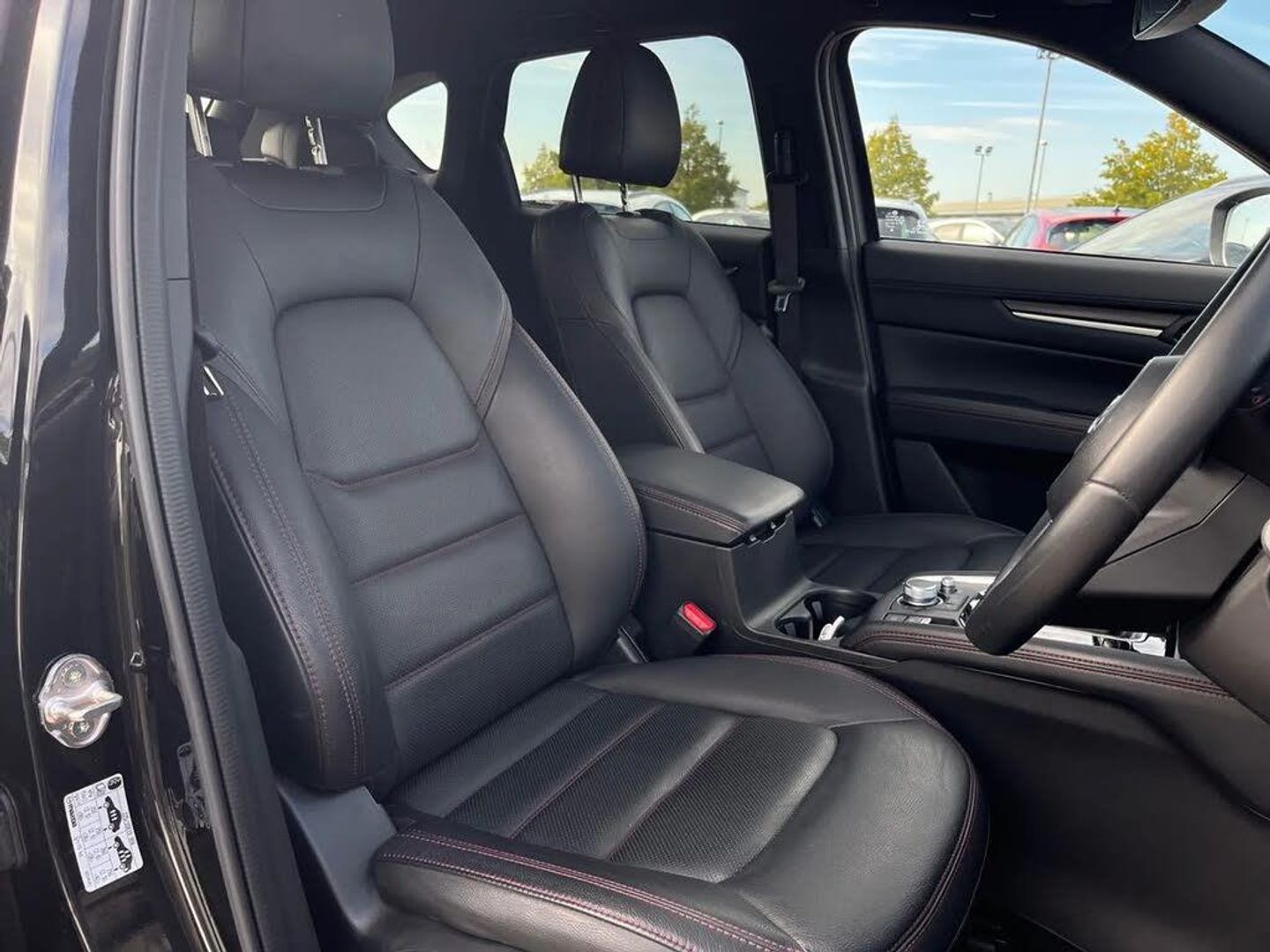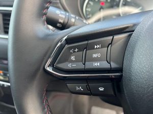 10.25" display with Mazda Connect infotainment,7" colour TFT display,Advanced blind spot monitoring,Bluetooth connectivity with voice control,Collision prevention assist,Connected services,Cruising Traffic Support,Drive mode selector,Electric power steering,Emergency stop signalling system,Engine start/stop button,Forward collision warning,Front and rear parking sensors,Integrated navigation system,Intelligent speed assist,Lane departure warning system,Lane keep assist,Power liftgate,Qi wireless phone charging,Radar cruise control with Stop and Go,Rear cross traffic alert,Reversing camera,Service indicator,Traffic sign recognition (TSR),Trip computer,Windscreen projected colour active driving display (HUD) with memory,Wireless apple car play/android Auto,Cylinder Deactivation,i-stop,AM/FM radio,Bluetooth audio streaming,Bose premium sound system with 10 speakers,DAB Digital radio,Multimedia Commander including separate volume dial,Steering wheel mounted audio controls,Adaptive front lighting system,Auto dimming rear view mirror,Automatic headlights,Black honeycomb door trim decoration panel,Black honeycomb interior decoration panel,Body colour roof spoiler,Coming/leaving home lighting function,Door mirror integrated indicators,Dual large chrome tailpipes,Dusk sensitive headlamps,Electric front/rear windows with one touch auto up/down,Front grille in gloss black finish,Front grille in gloss black with red accent + gloss black signature wing,Gloss black B and C pillars garnish,Gloss black door mirrors,Gloss black front and rear lower bumper mouldings,Gloss black tire arch and side mouldings,High beam assist,Intermittent rear wash/wipe,LED auto levelling,LED daytime running lights,LED front fog lights,LED Headlights,LED third brake light,Power folding and heated door mirrors,Power tilt/slide sunroof,Privacy glass (rear side windows only),Rain sensing front wipers,Rear side wing doors,Red front grille accent,Red stitching and accents on door trim, knee pad, console lid, steering wheel, shift boots,Scuff plates,Shark fin antenna,Signature LED rear combination lights,Variable intermittent front wash/wipe,Windscreen wiper de-icer,12v electrical power outlet,3 seat bench in 2nd row,3 stage heated front seats,40:20:40 Karakuri fold-flat seat system,6 way electric adjustable passenger seat,8 way electric driver seat with lumbar support + memory,Black roof lining,Cargo room flat floor board with waterproof undertray,Driver seat power slide, recline and height adjustment,Driver, Front passenger and two rear grab handles with coat hooks,Driver/passenger front seatback pockets,Driver/passenger sunvisors + illuminated vanity mirrors (drivers with ticket holder),Dual zone climate control,Folding centre armrest with 2 cup holders,Front and rear door pockets,Front centre storage with two cupholders,Front passenger seat power slide, recline and height adjustment,Heated steering wheel,Humidity sensor,Illuminated glovebox,Interior dome light with integral spotlight,ISOFIX child seat anchorage points attached on outer rear seats,Karakuri tonneau cover,Leather upholstery,Leather wrapped steering wheel and gear knob,Luggage compartment LED lighting,Luggage compartment power outlet,Paddle shifts,Rear air vents,Rear headrests,Rear seat recline,Roof mounted sunglasses holder,Single front passenger seat,Three height adjustable head restraints,Tilt/height adjustable steering wheel,USB Connectivity (2x front Type-C, 2x rear Type-B),White interior LED illumination lighting,3 point front seatbelts with pre-tensioners,3 rear 3 point seatbelts,ABS,Advanced Smart City Brake Support - SCBS,Child locks on rear doors,Driver and front passenger side airbags,DSTC-Dynamic Stability and Traction Control,Dual front airbags,Electronic brake force distribution,Electronic parking brake with auto hold,ESP,Front and rear curtain airbags,Front passenger airbag deactivation,G-Vectoring control,Hill hold assist,Seatbelt reminder front and rear,Single stage passenger airbags,Smart brake support with forward obstruction warning,Tyre pressure monitoring system,Automatic door locking when moving off,Deadlock,Immobiliser,Power door locks,Remote central locking,Smart keyless entry,Thatcham Cat.1 alarm,19" Black alloy wheels,Tyre repair kit